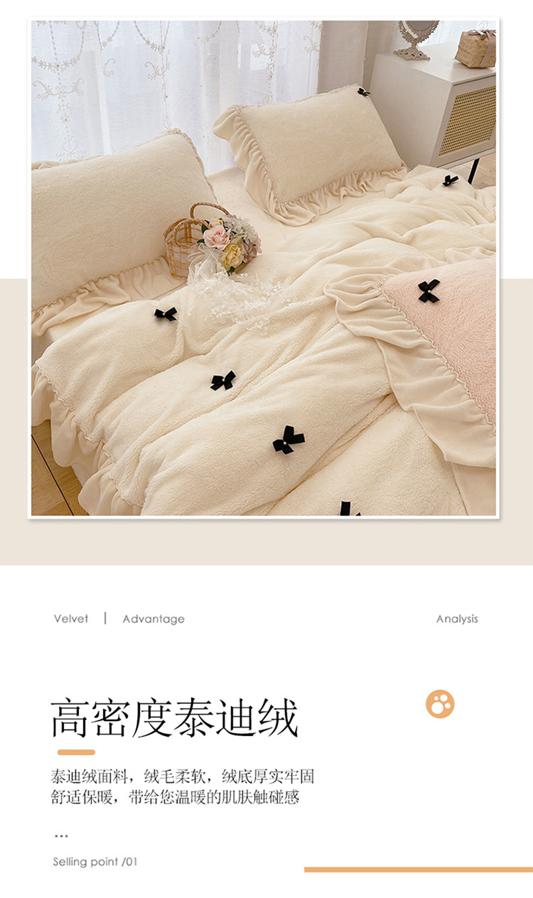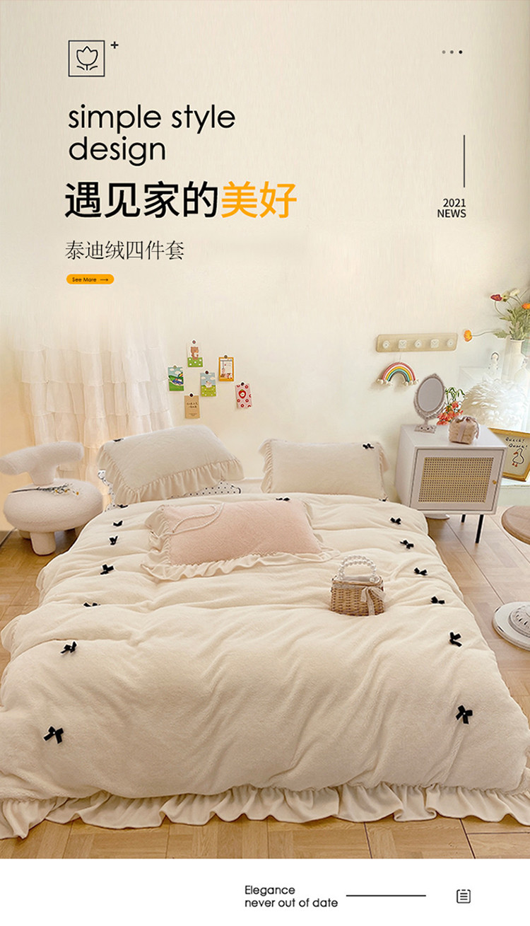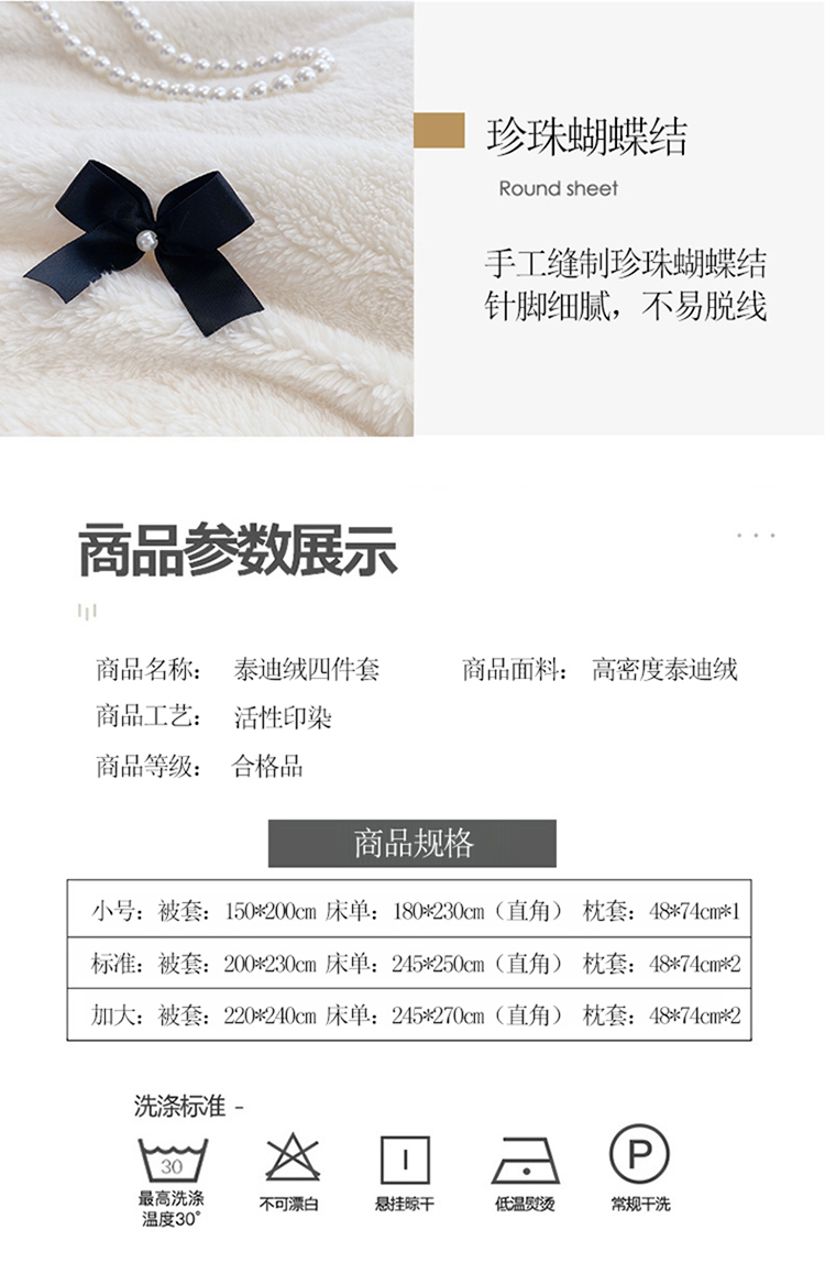 玛奇朵 2021秋冬新款240克进口泰迪绒四件套-仙朵 白