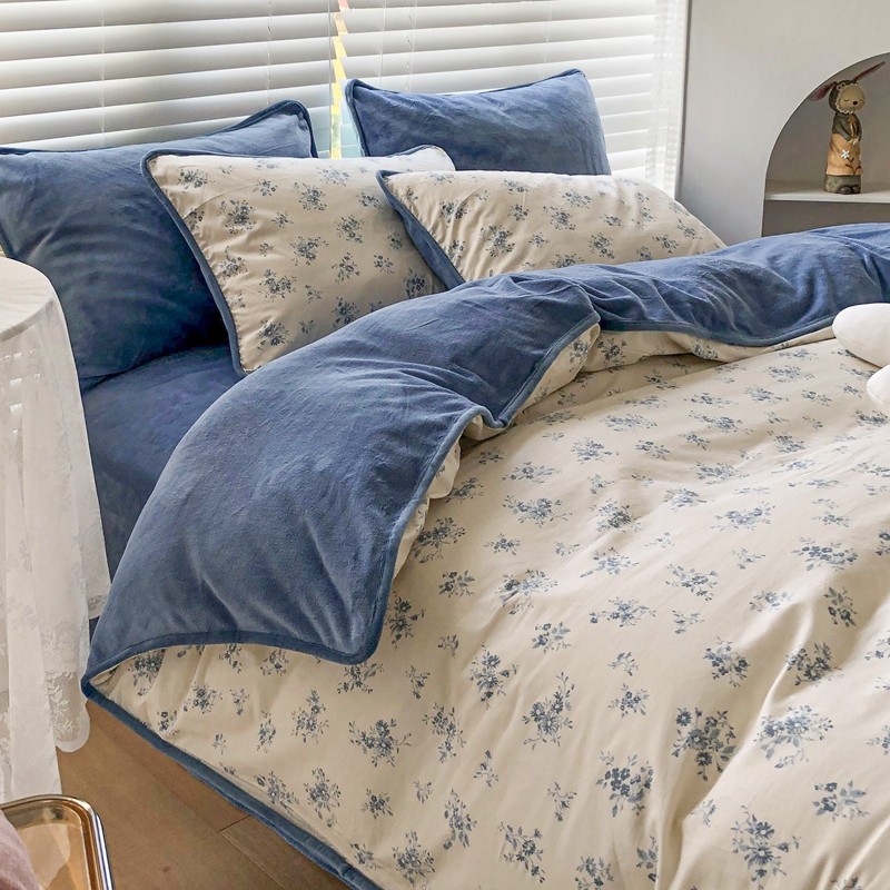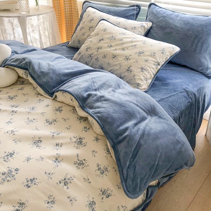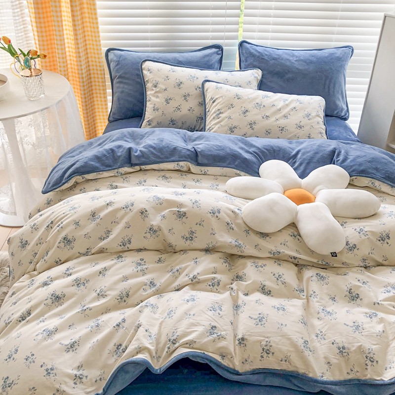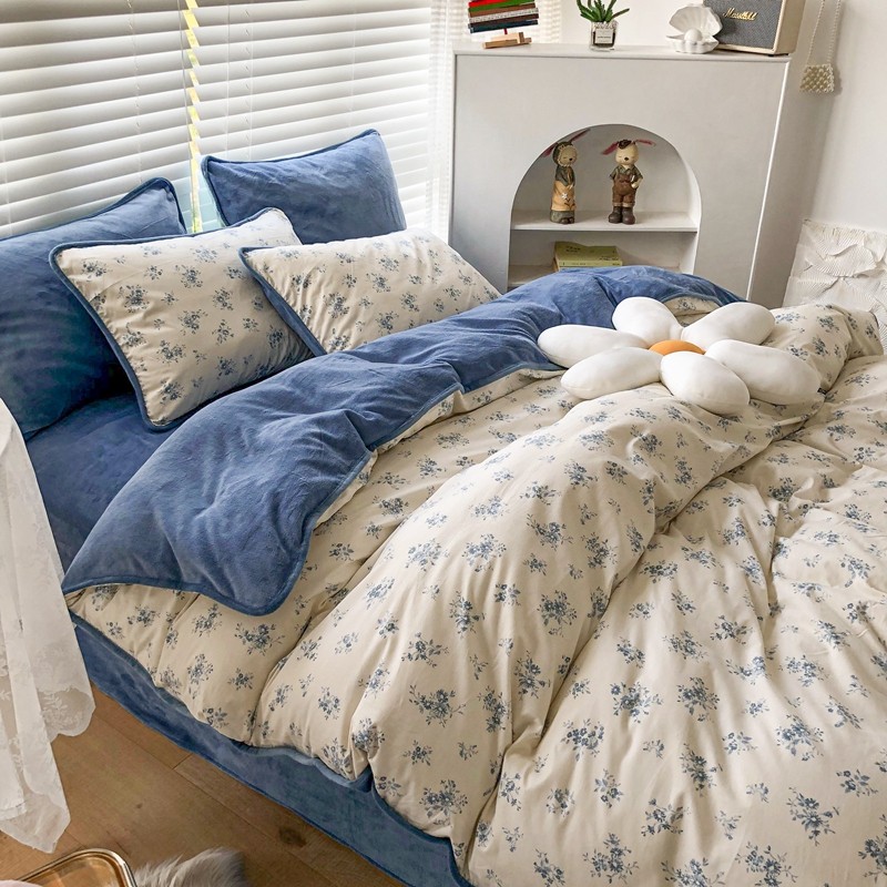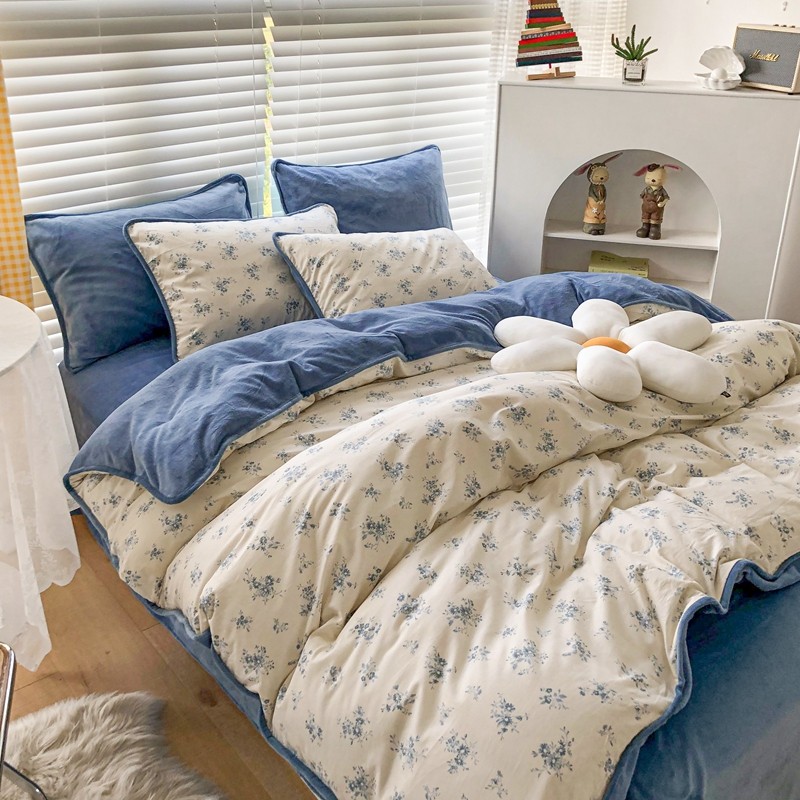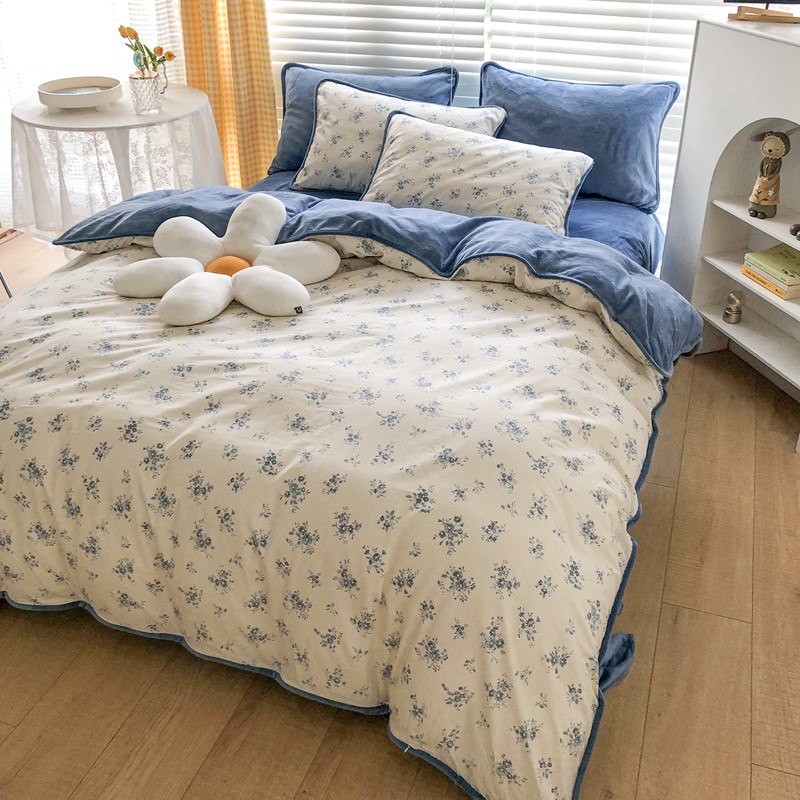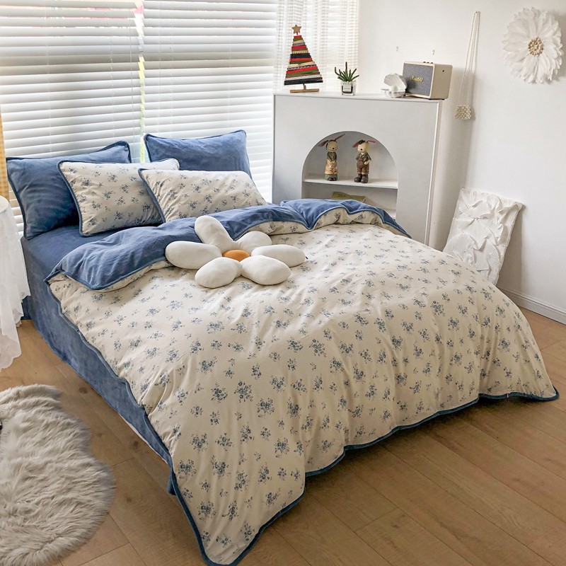 商品名称:珺柔 新款A版全棉13372印花B版牛奶绒四件套 小兰花