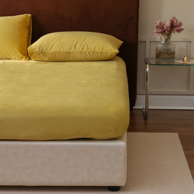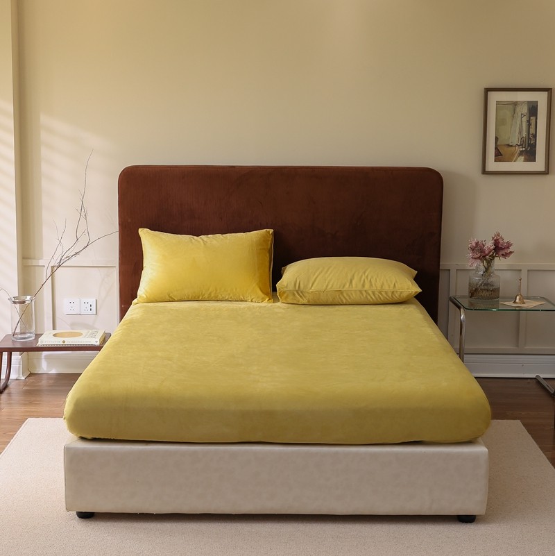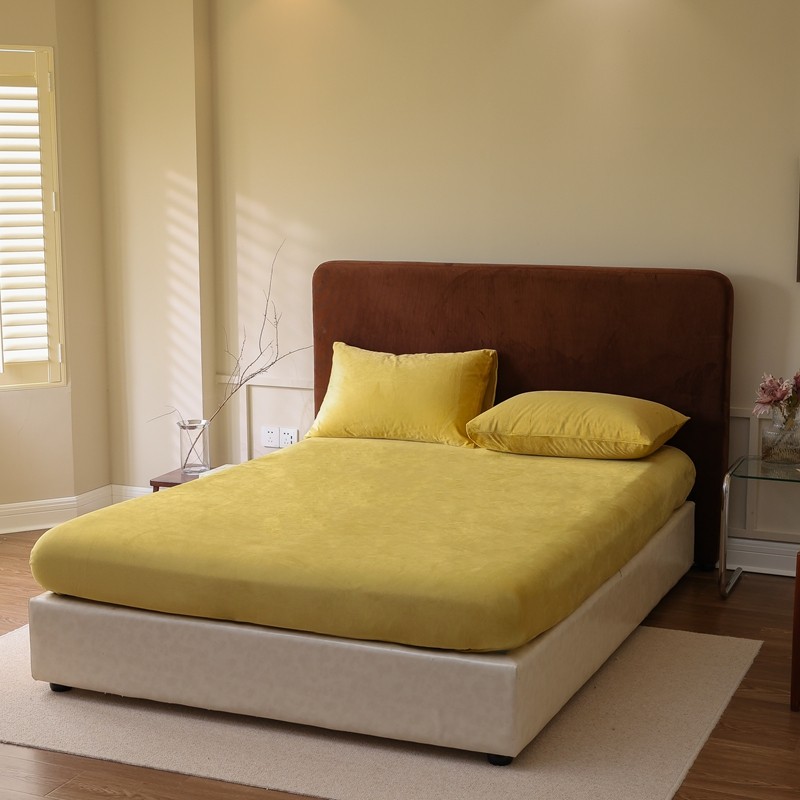 寐眠2021新款天鹅绒床笠 姜黄纯色
