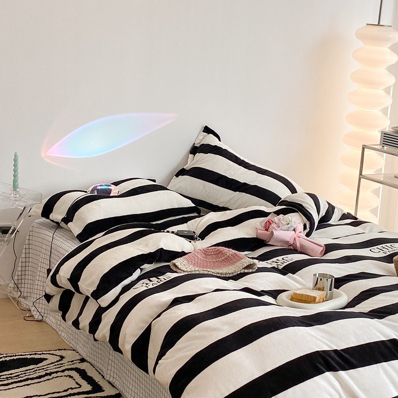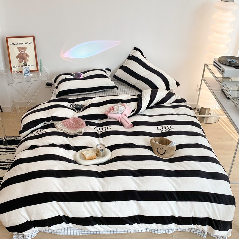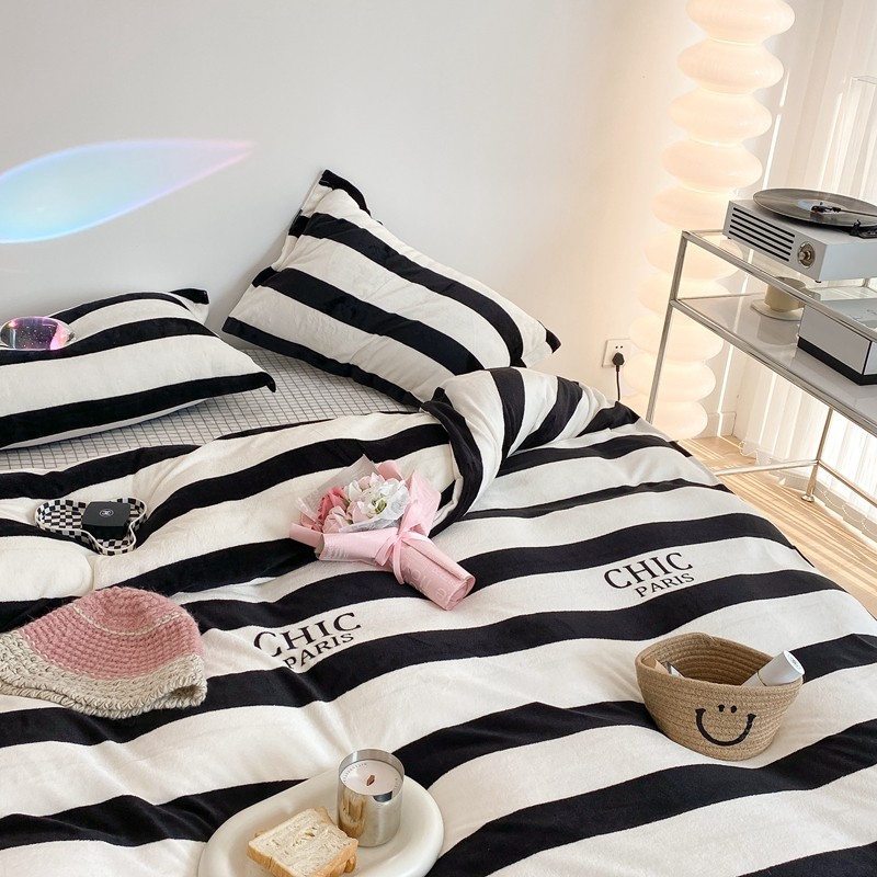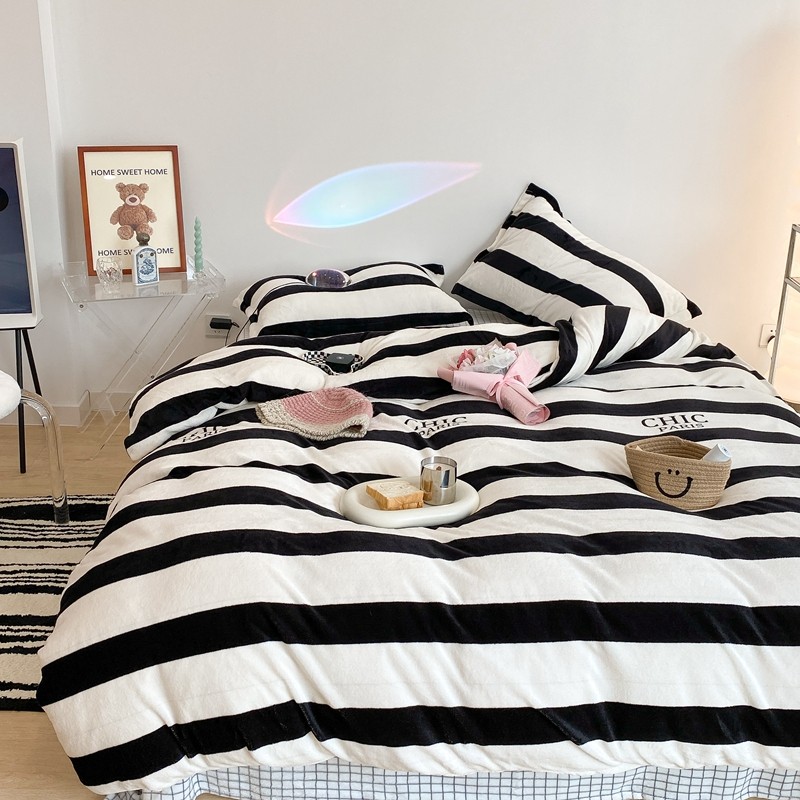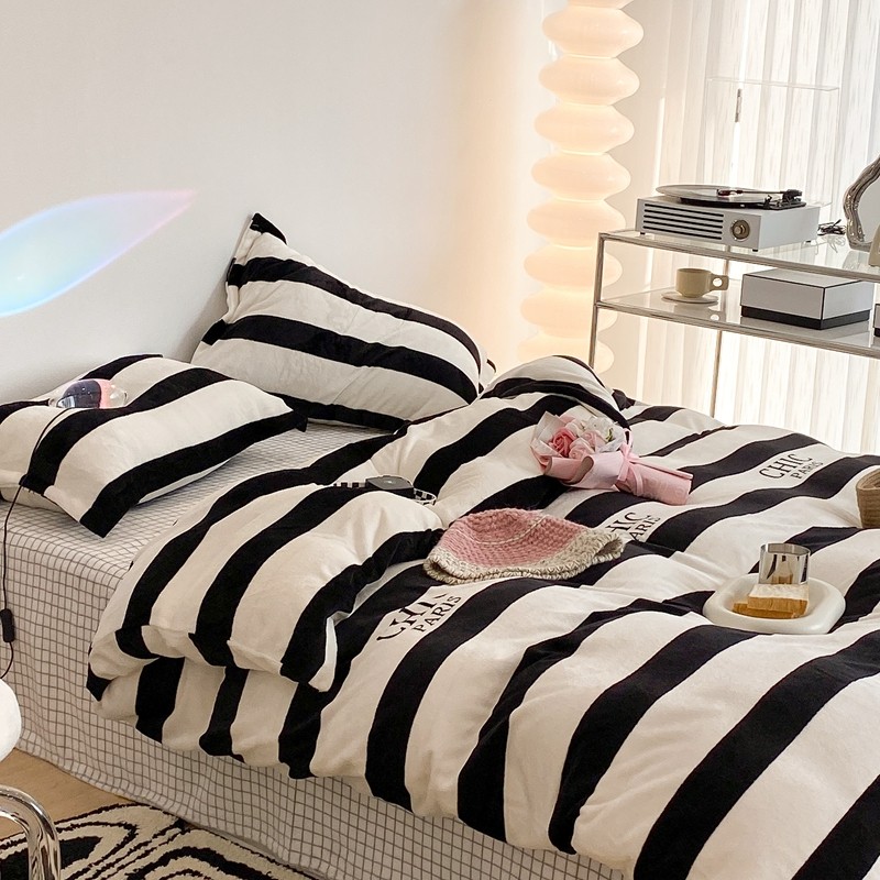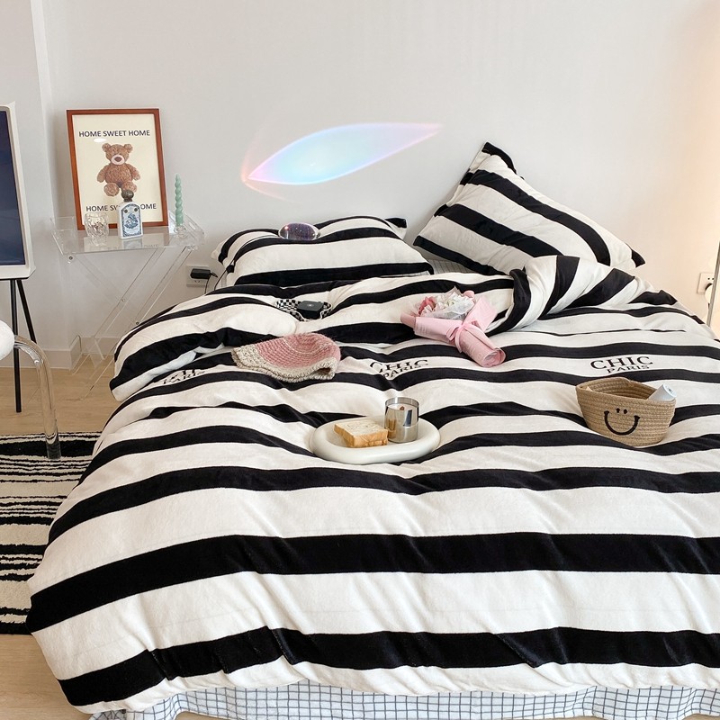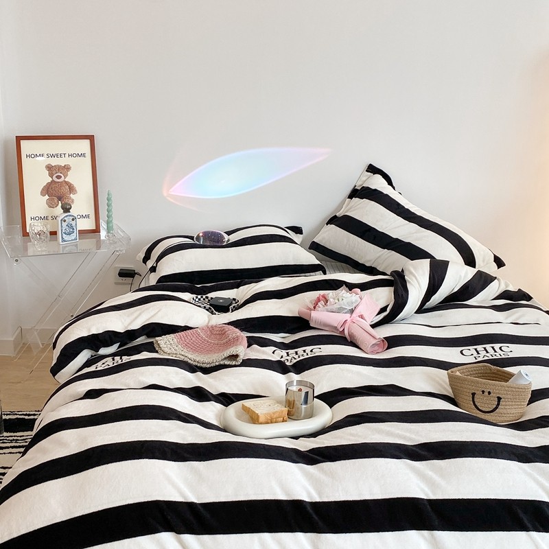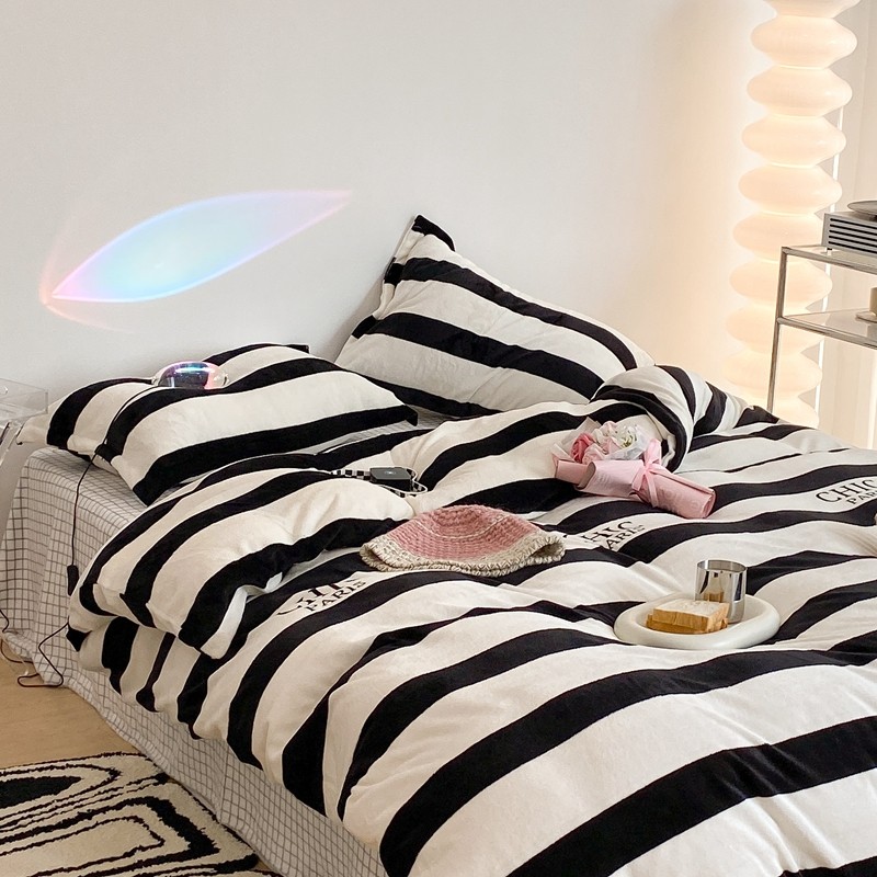 昔可家纺 2021新款牛奶绒四件套-三批 条纹-黑灰