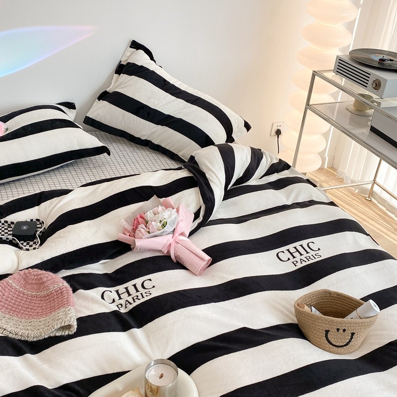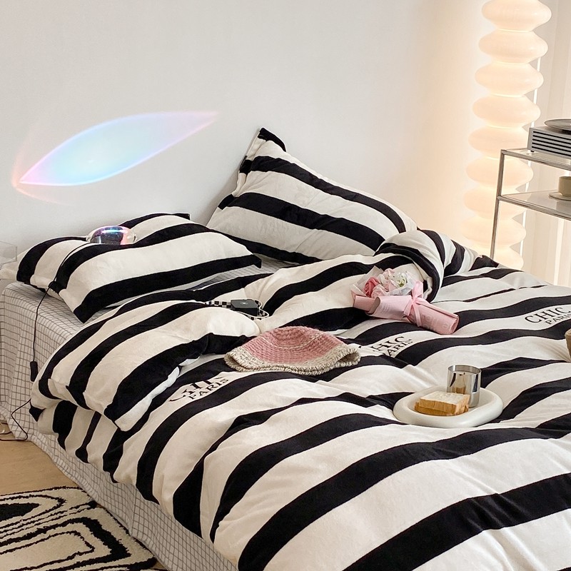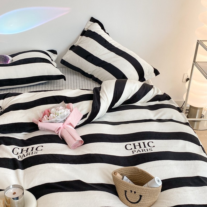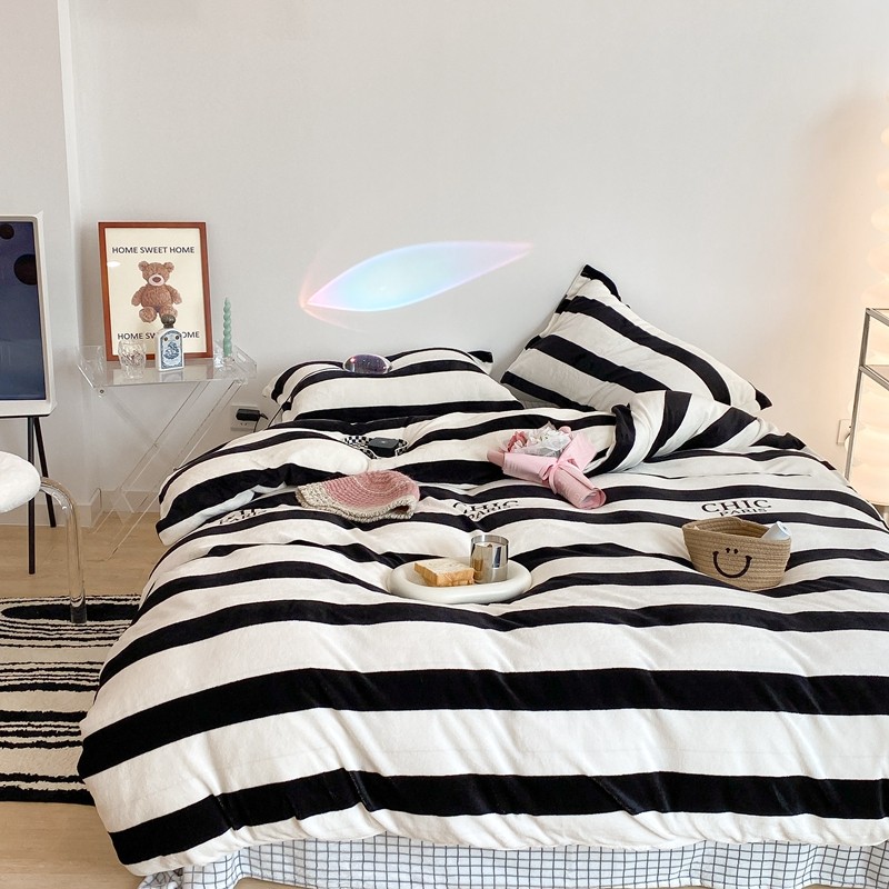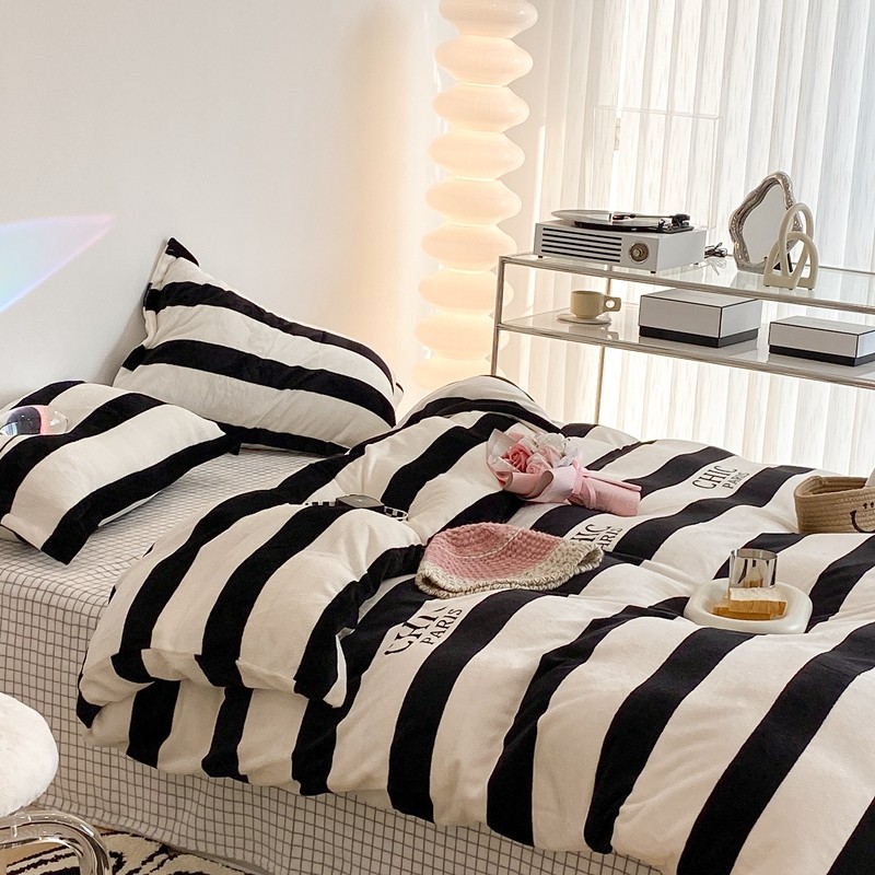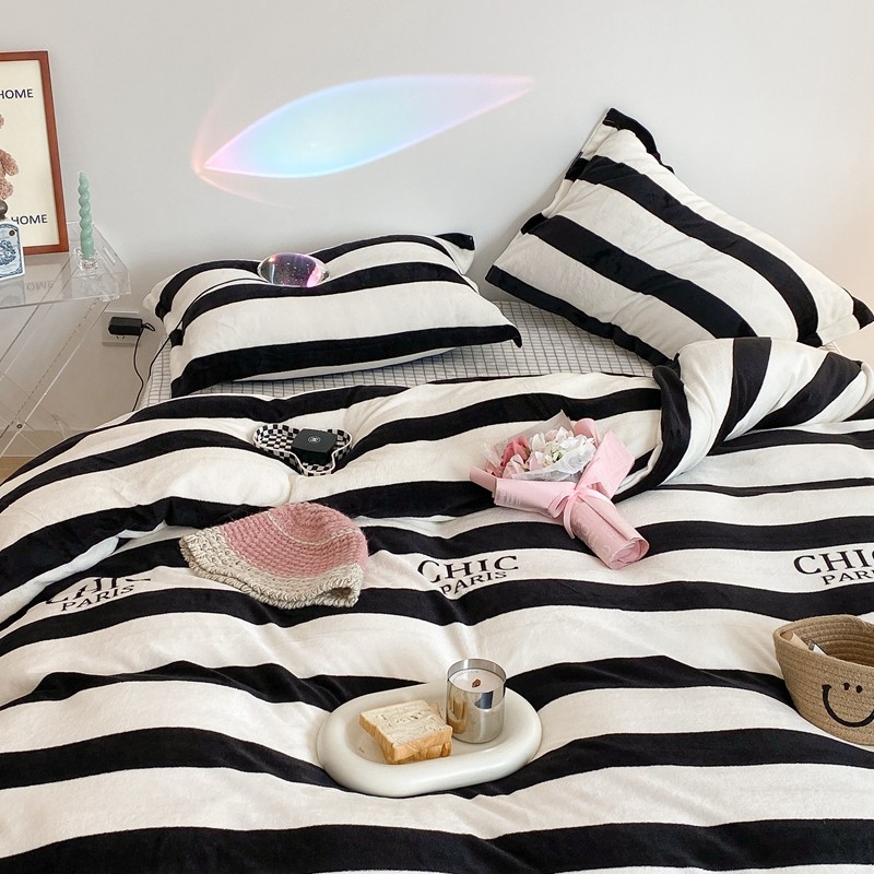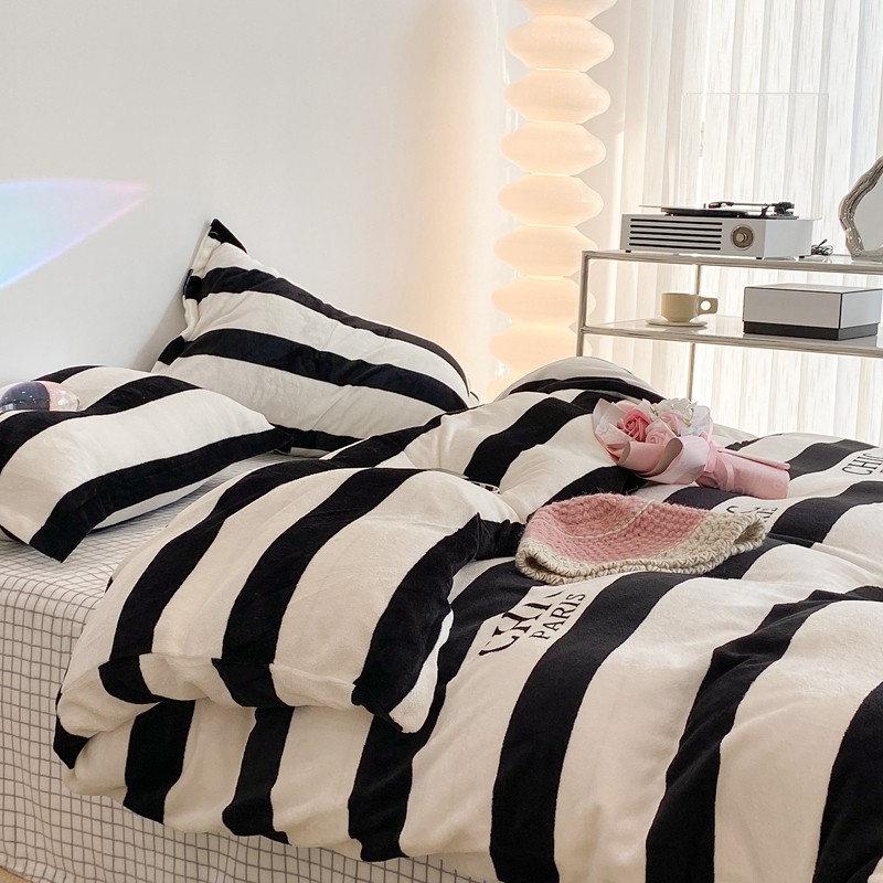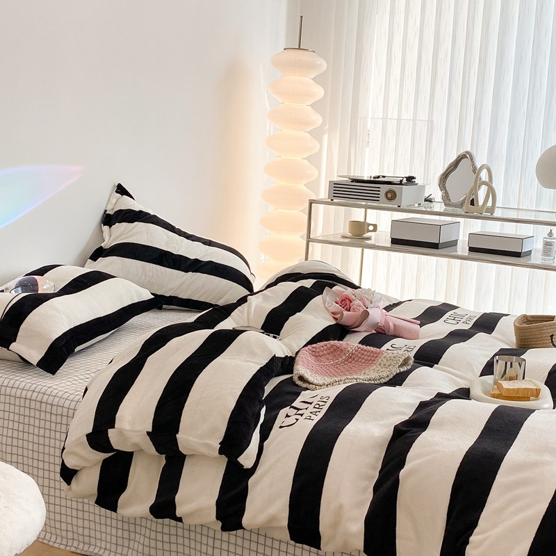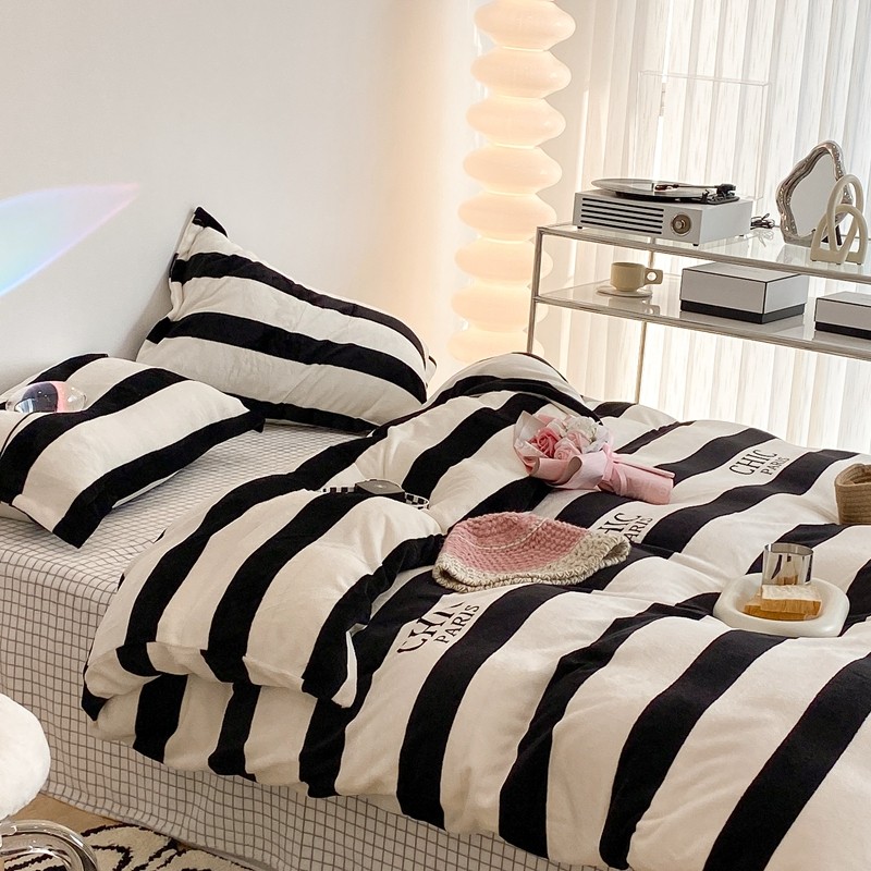 昔可家纺 2021新款牛奶绒四件套-三批 条纹-黑灰