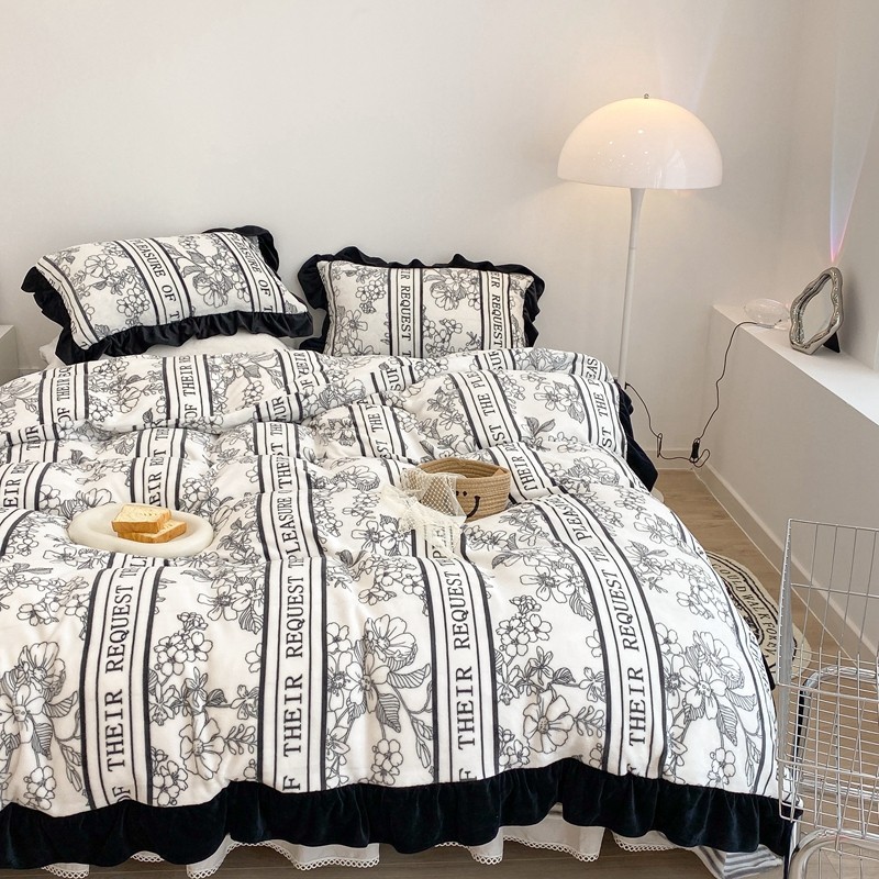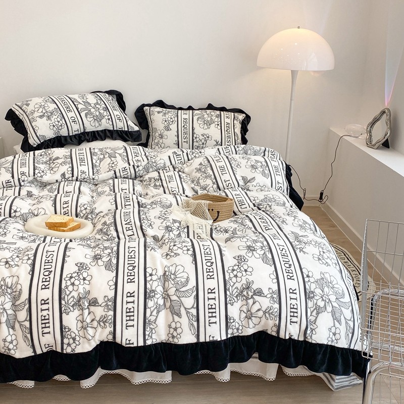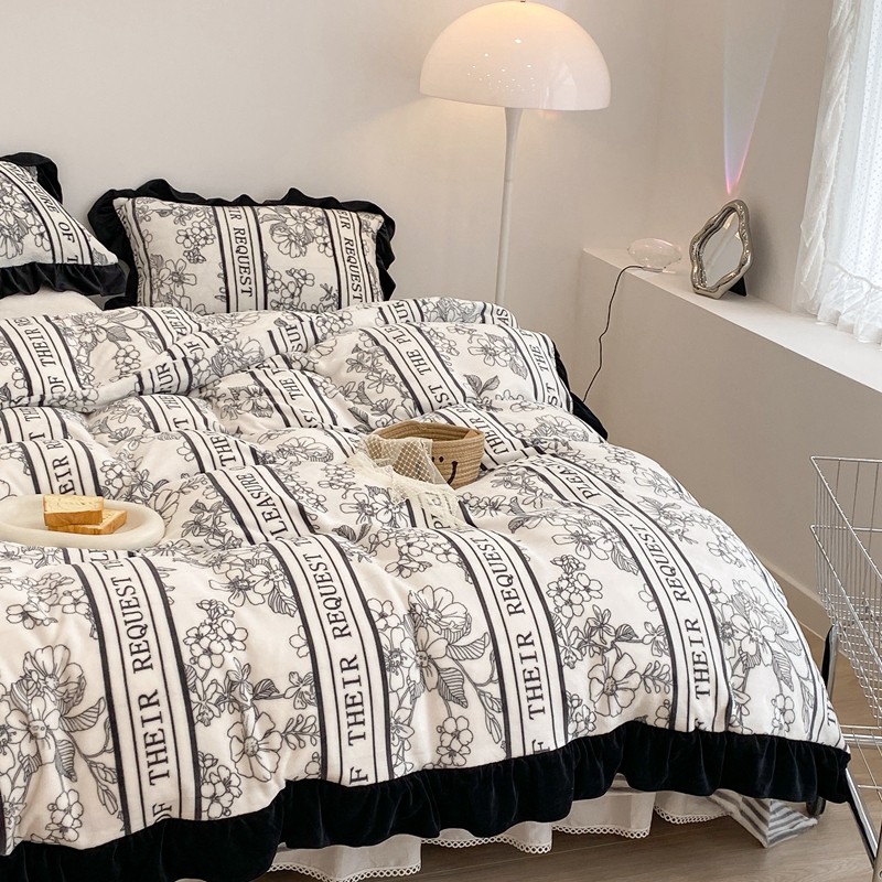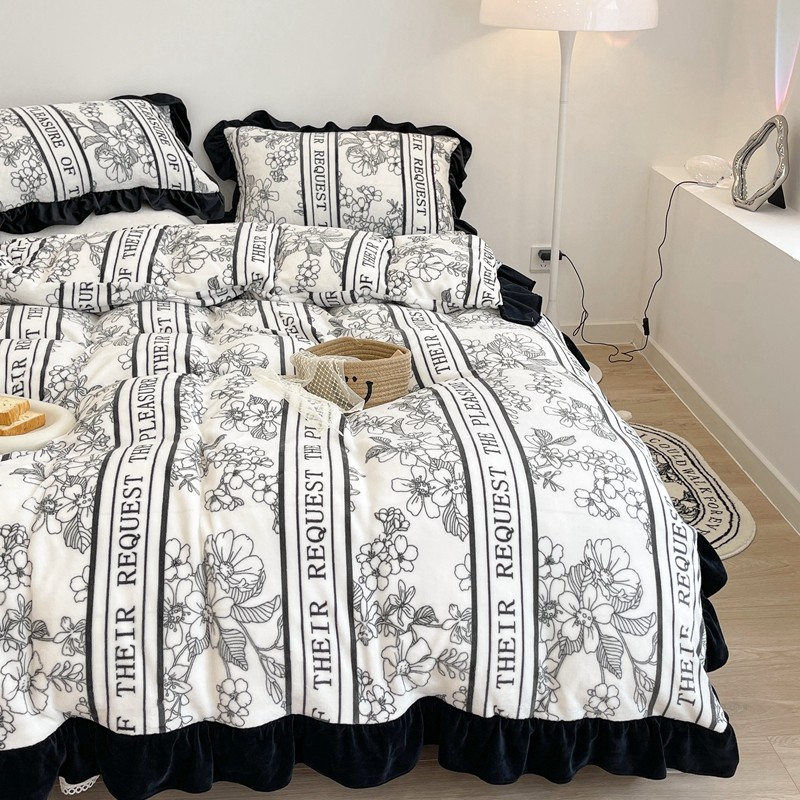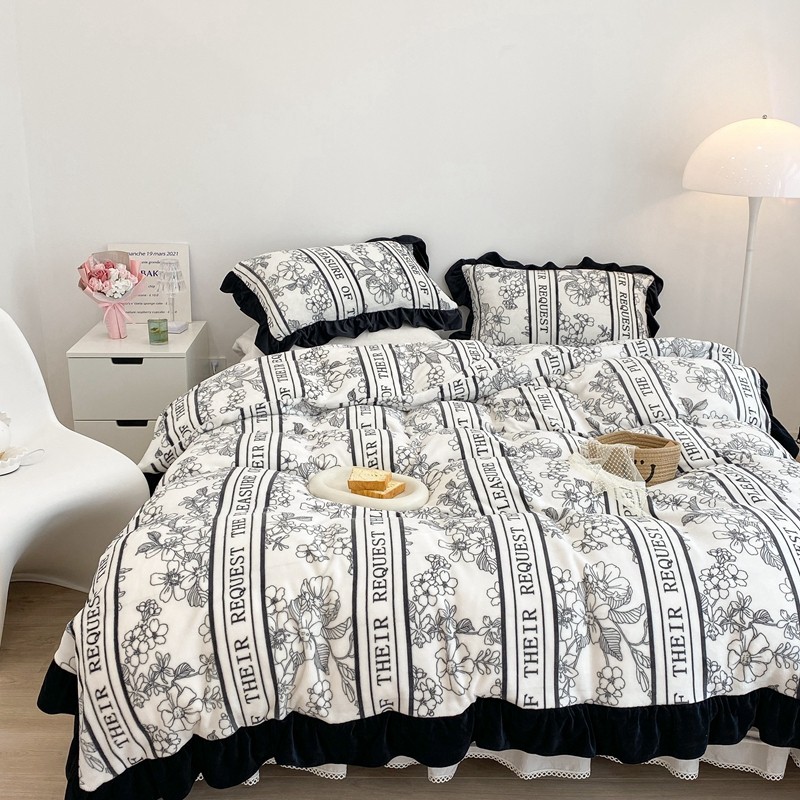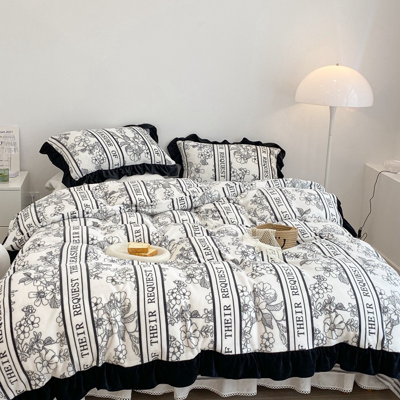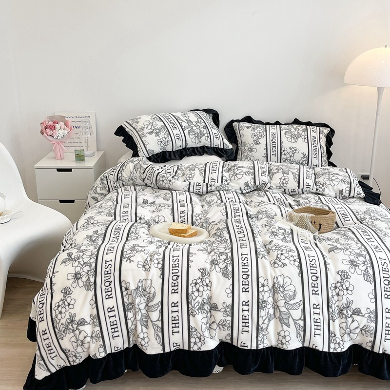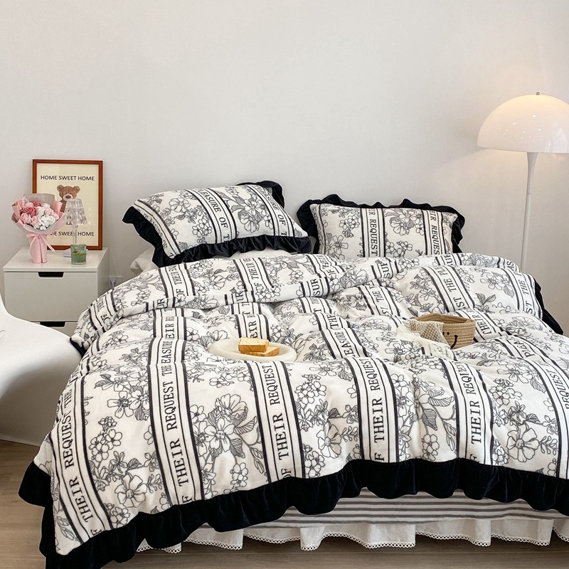 商品名称:昔可家纺 2021新款黑色花边牛奶绒四件套 优雅生活
