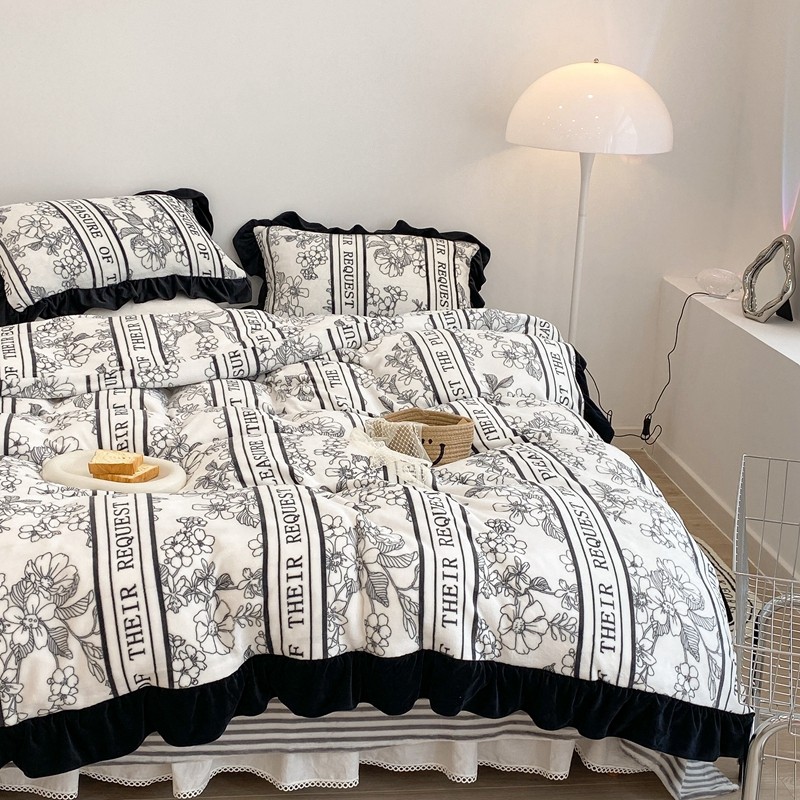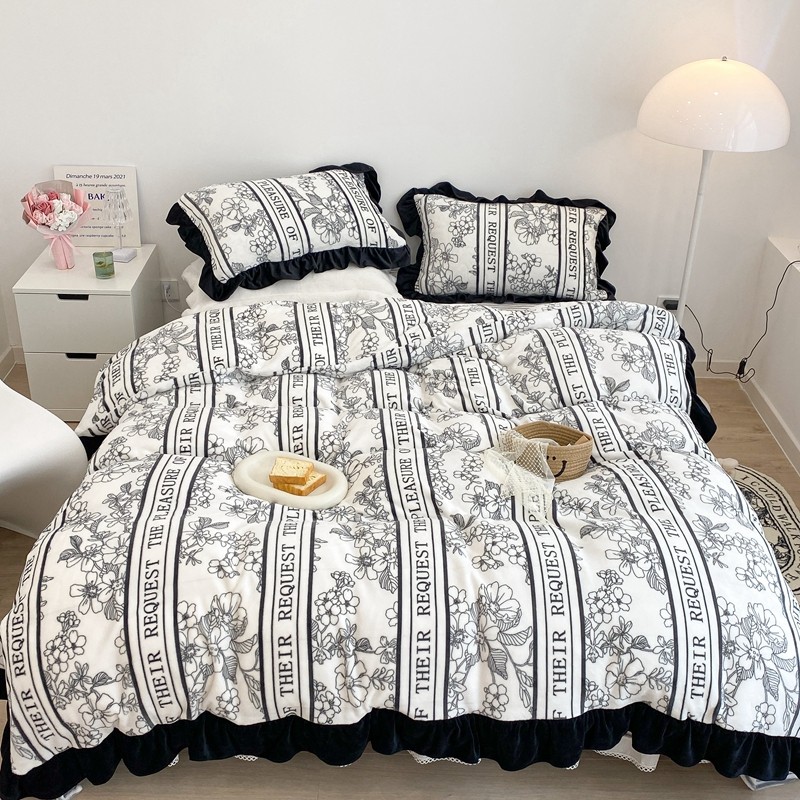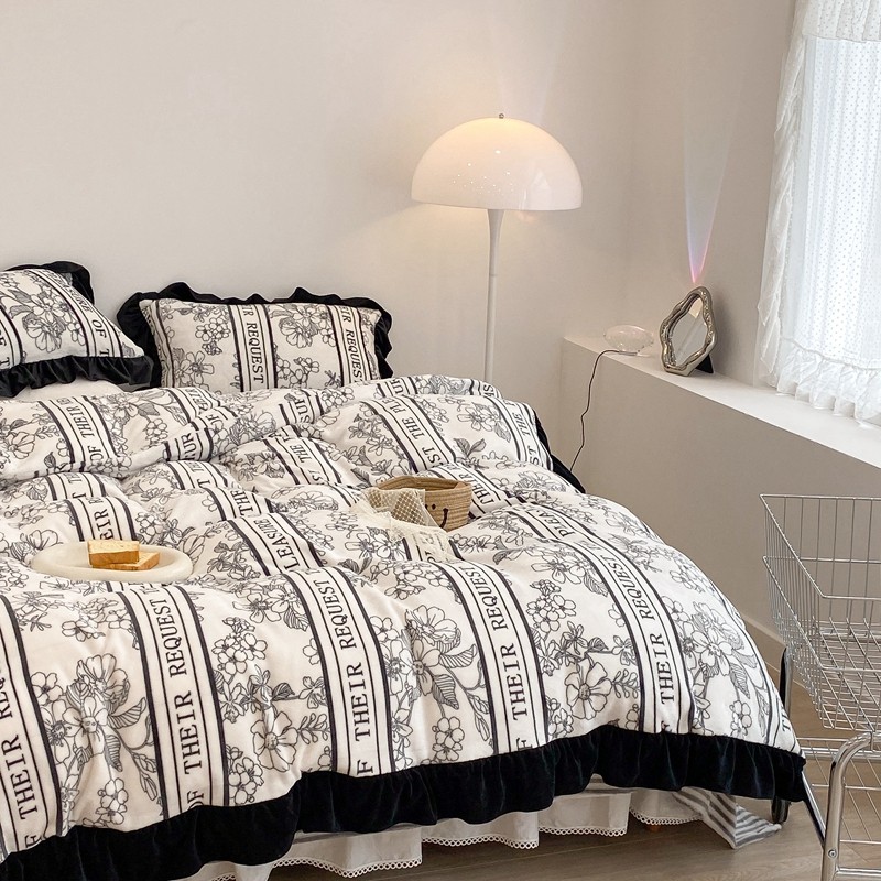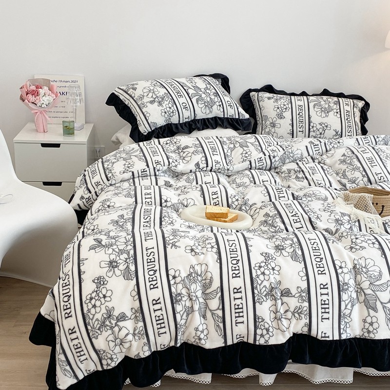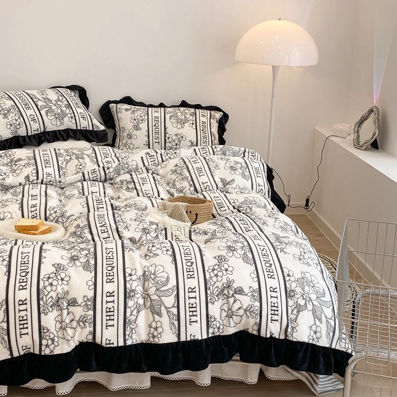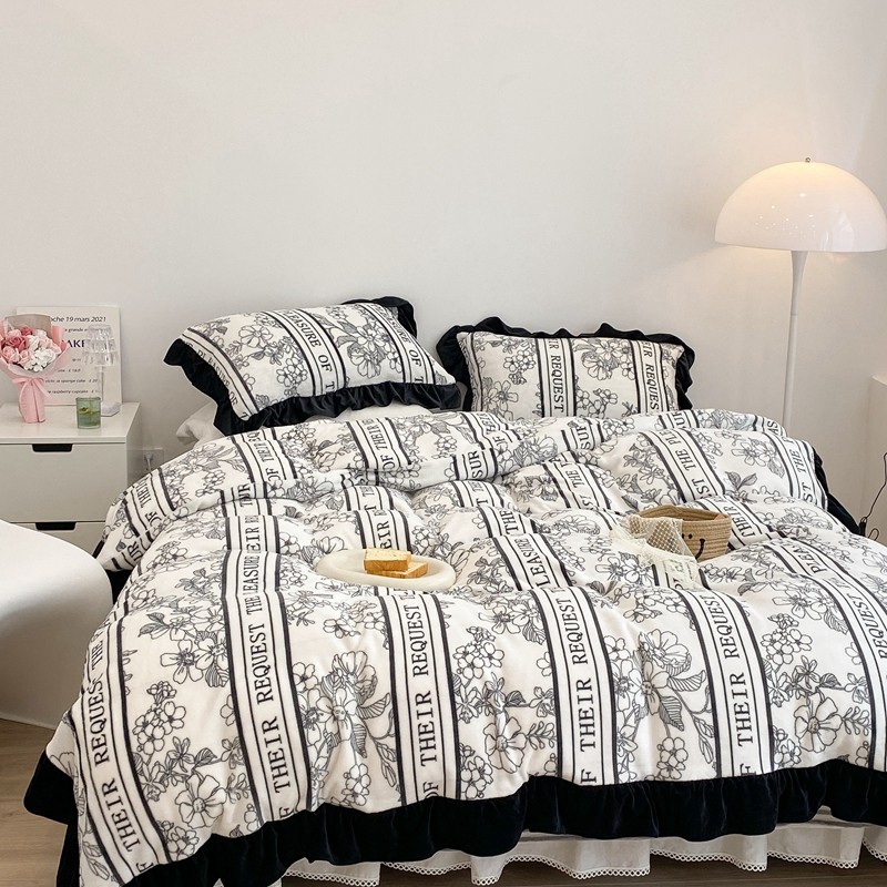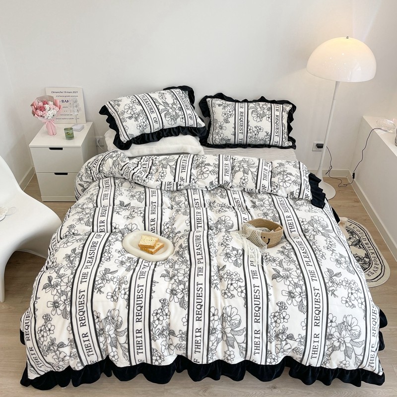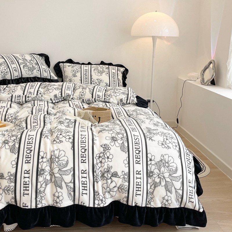 商品名称:昔可家纺 2021新款黑色花边牛奶绒四件套 优雅生活
