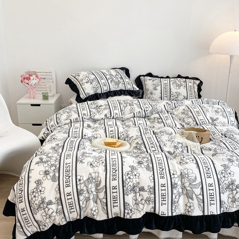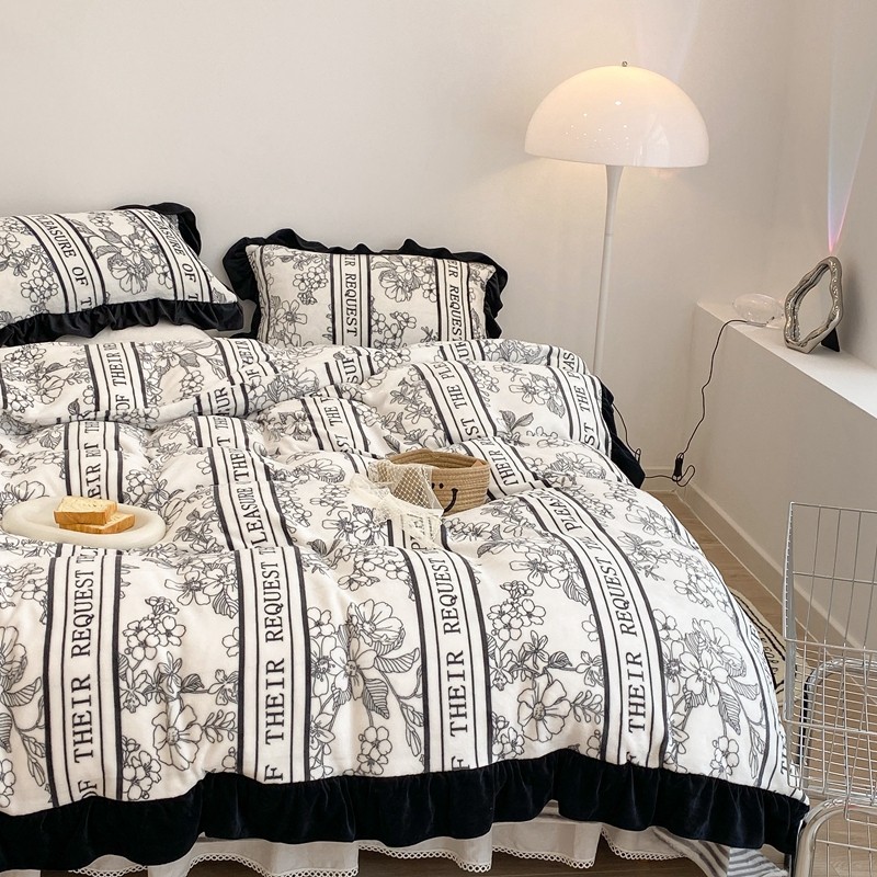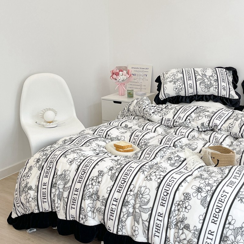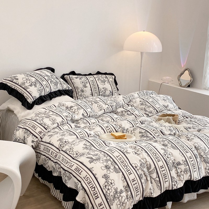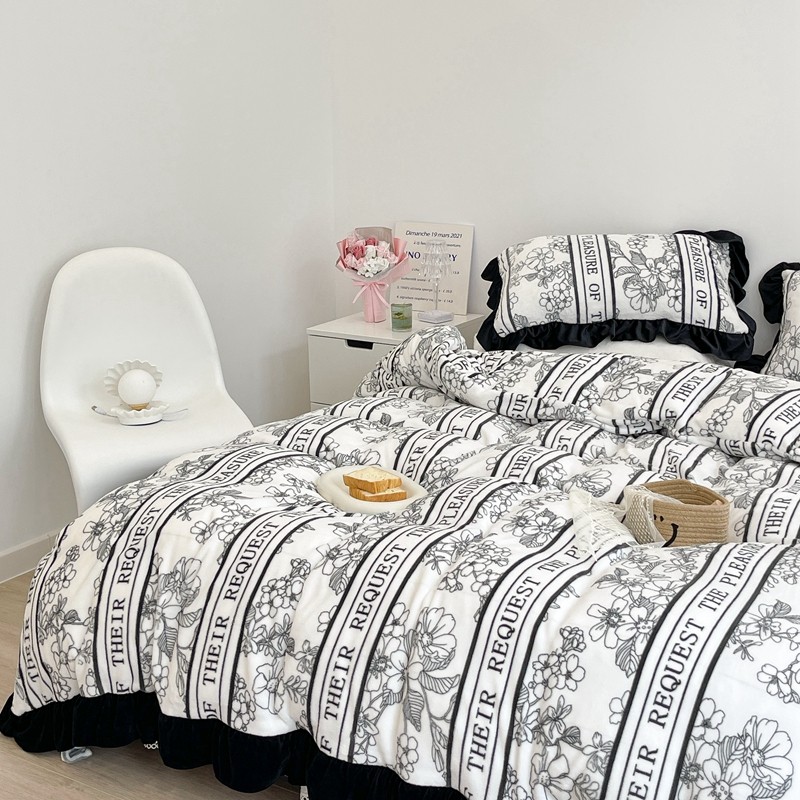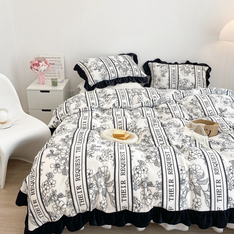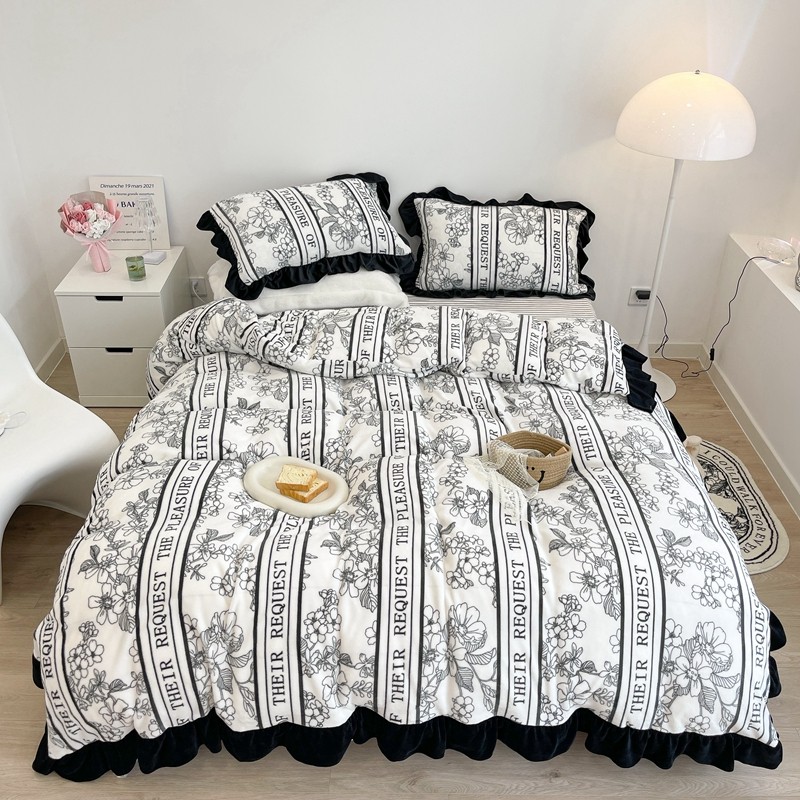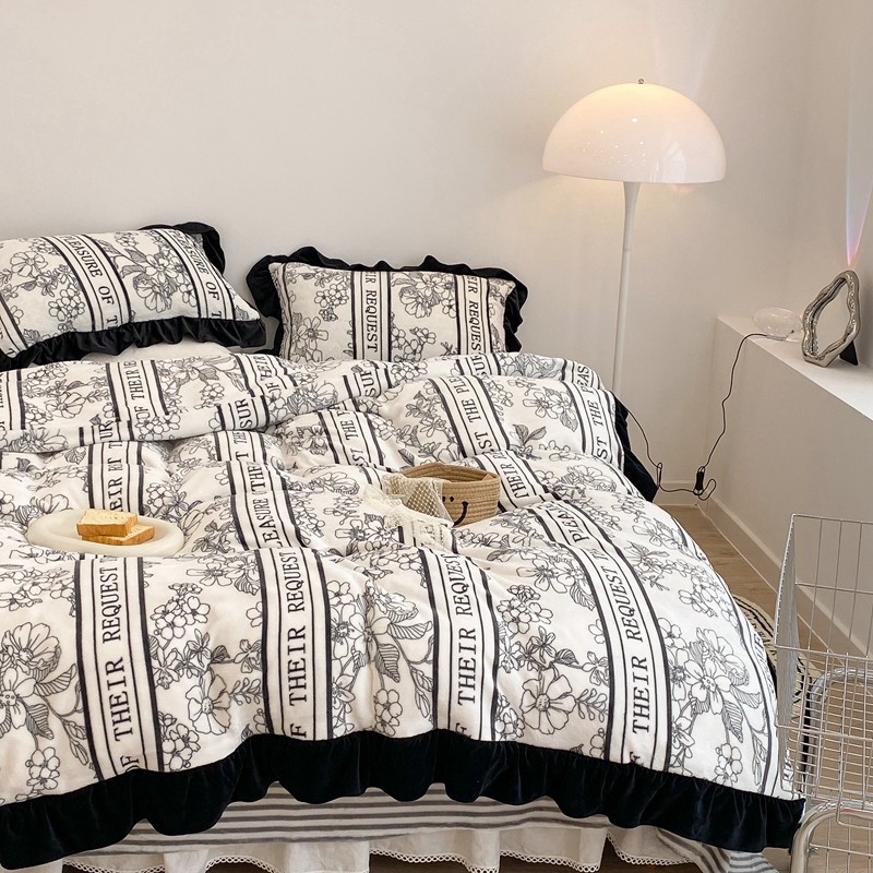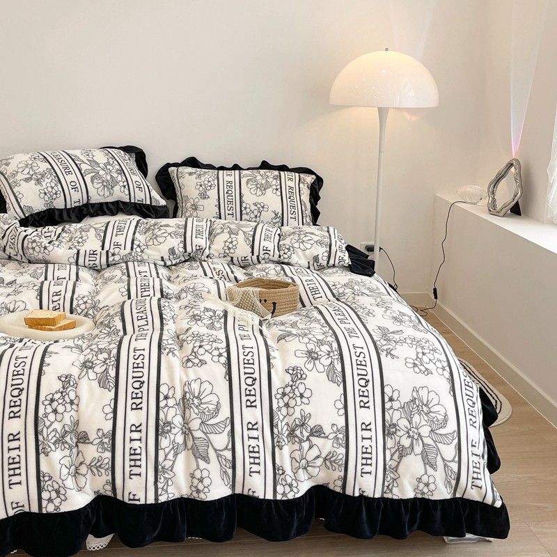 商品名称:昔可家纺 2021新款黑色花边牛奶绒四件套 优雅生活