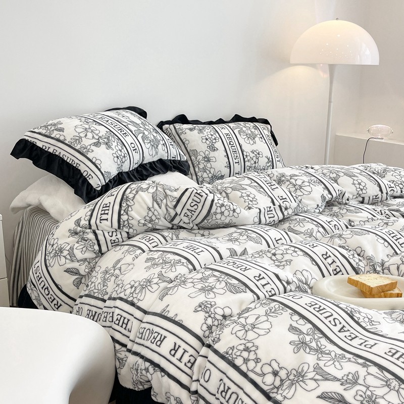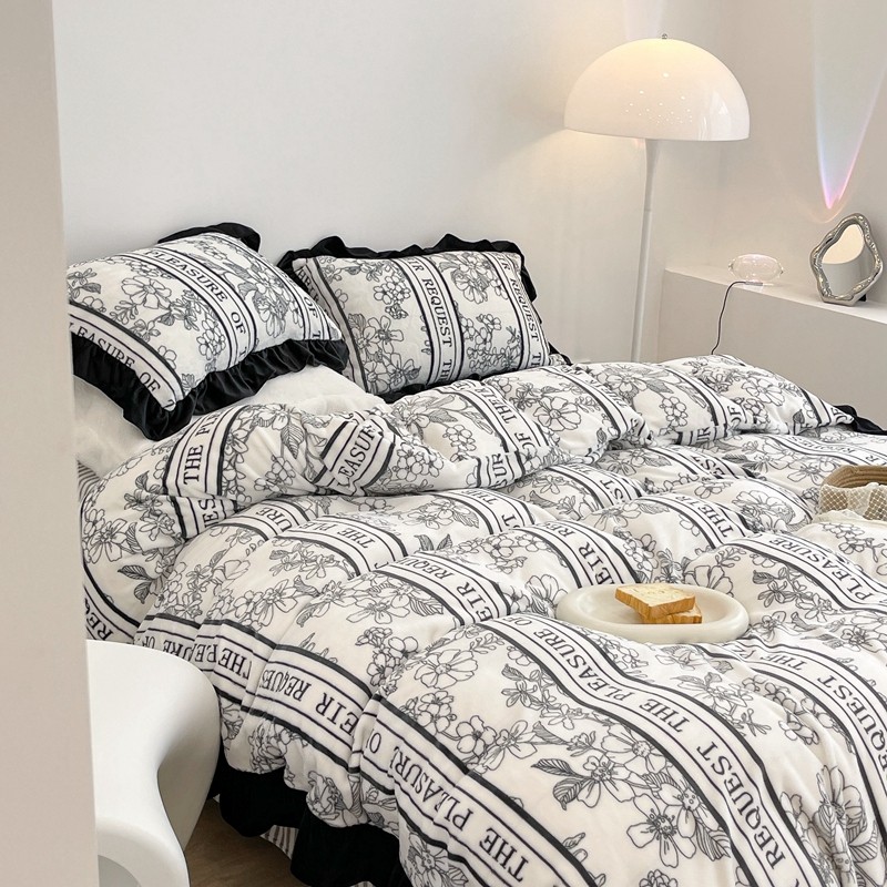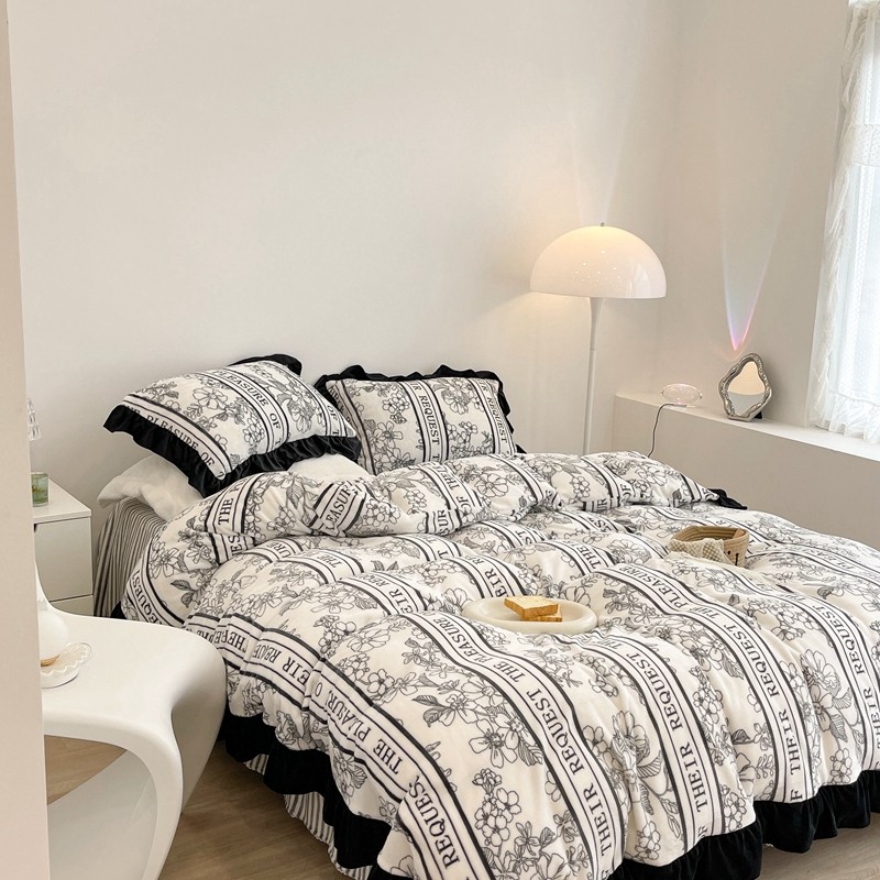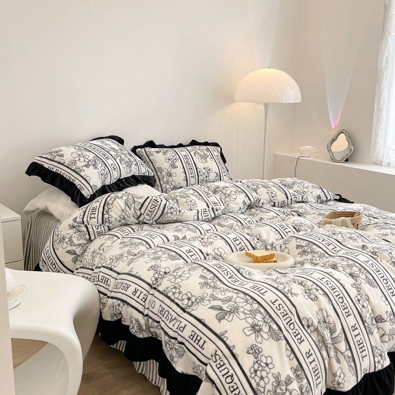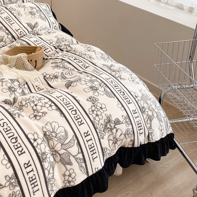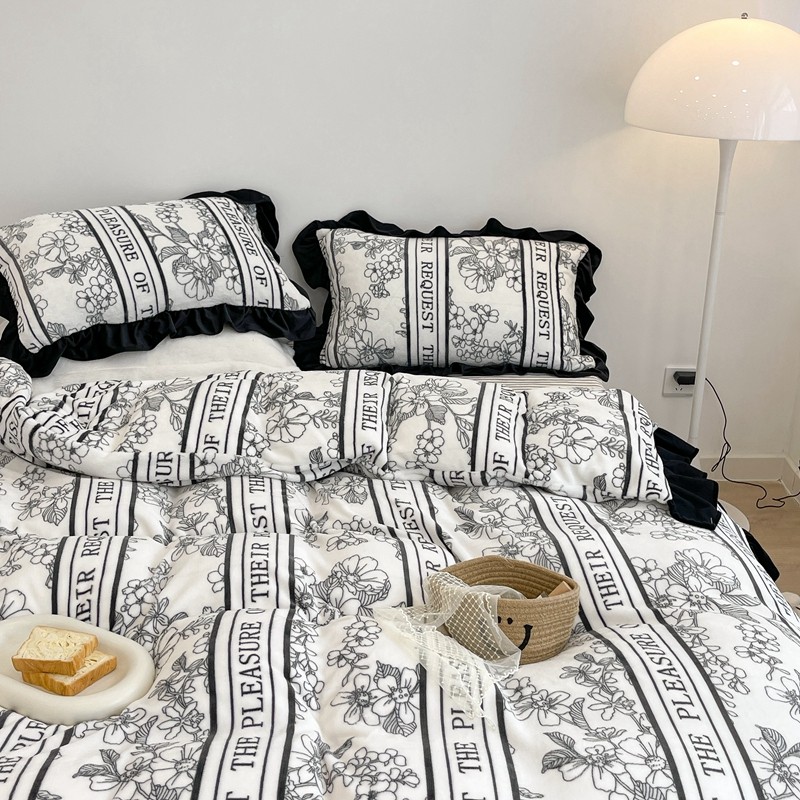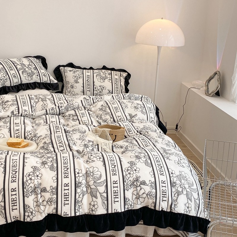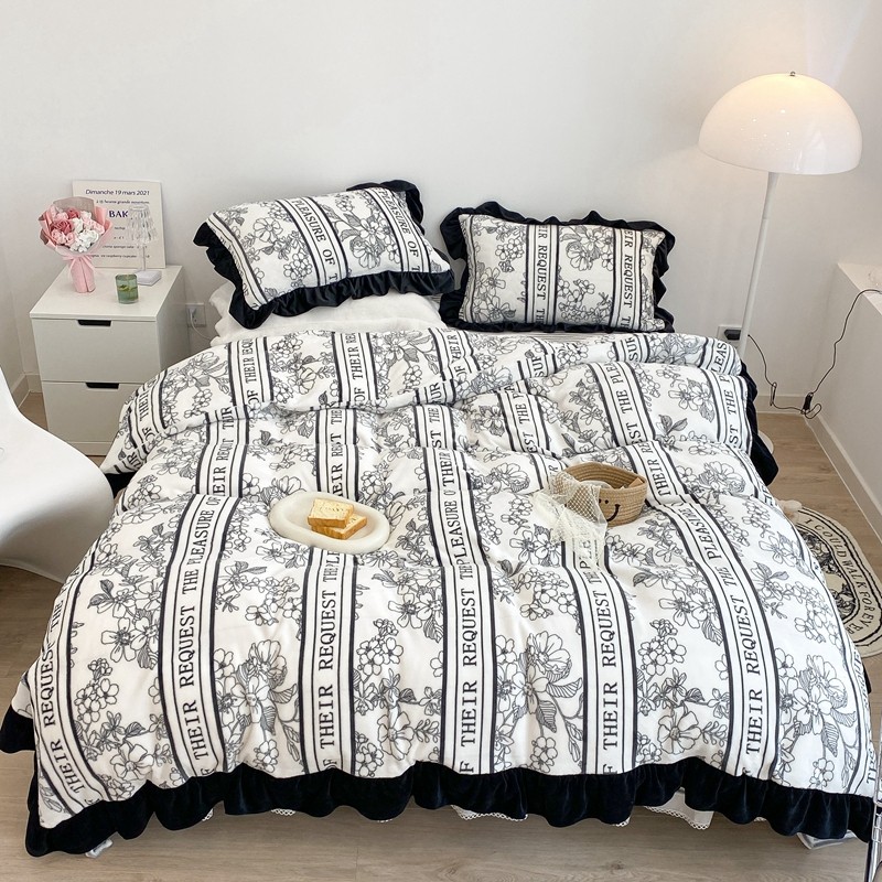 商品名称:昔可家纺 2021新款黑色花边牛奶绒四件套 优雅生活