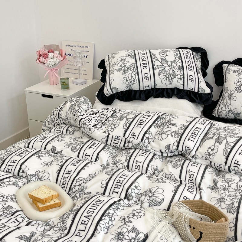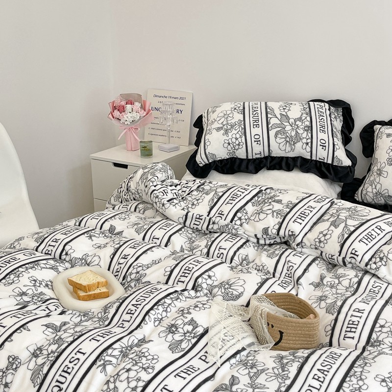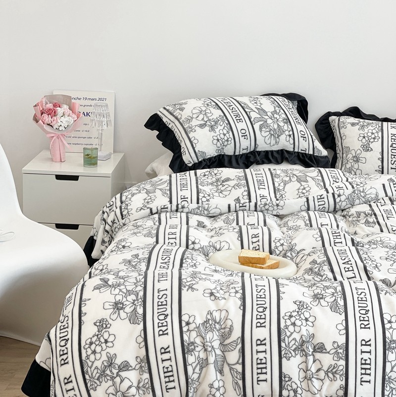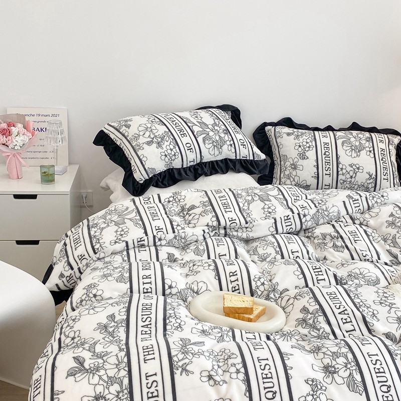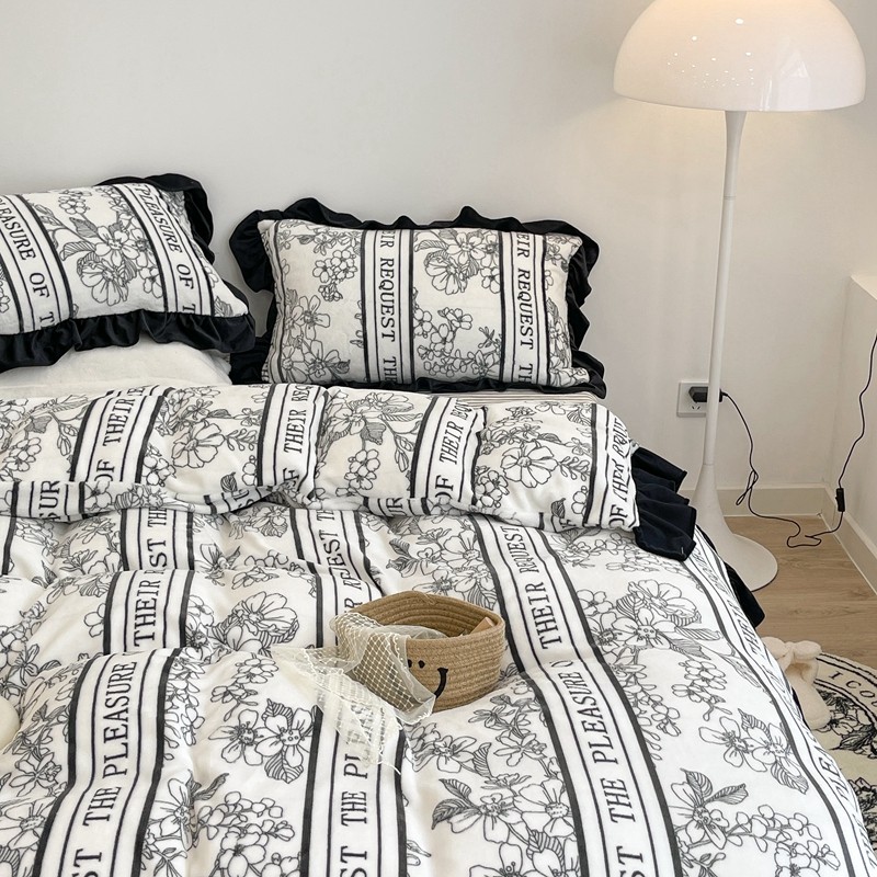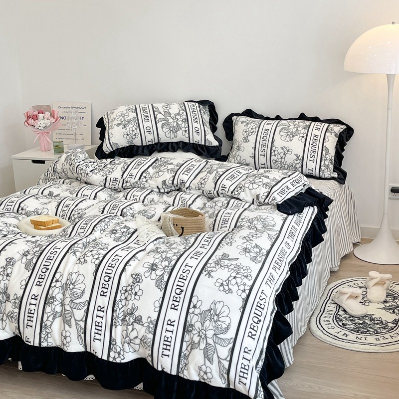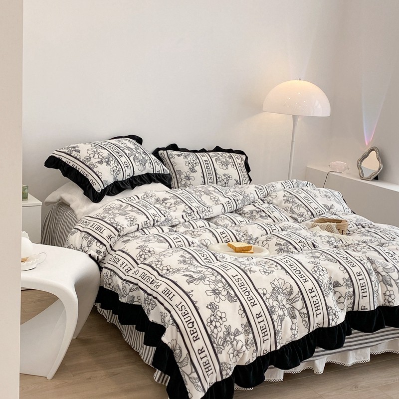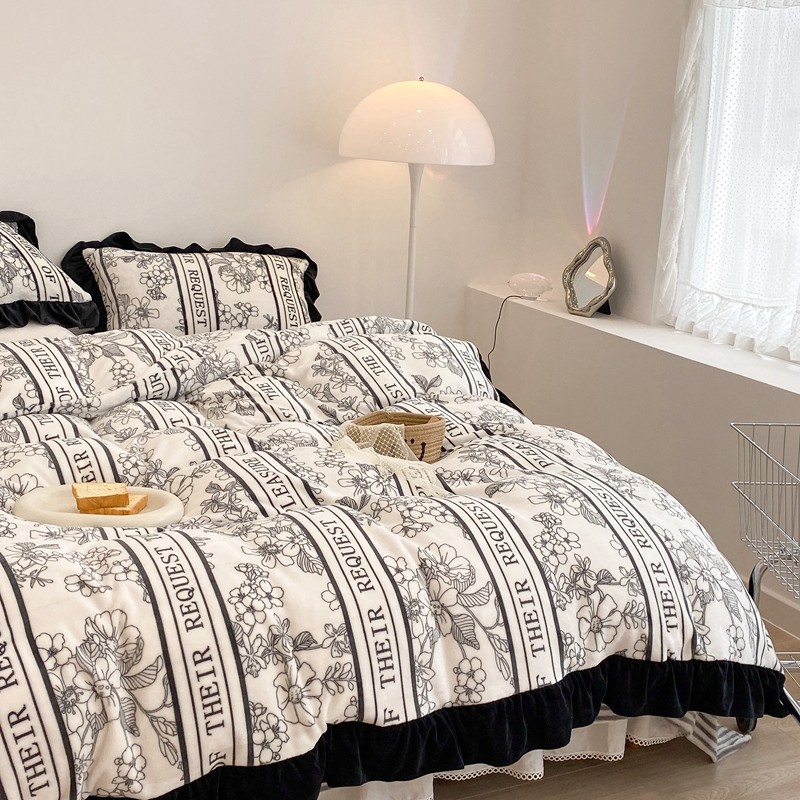 商品名称:昔可家纺 2021新款黑色花边牛奶绒四件套 优雅生活