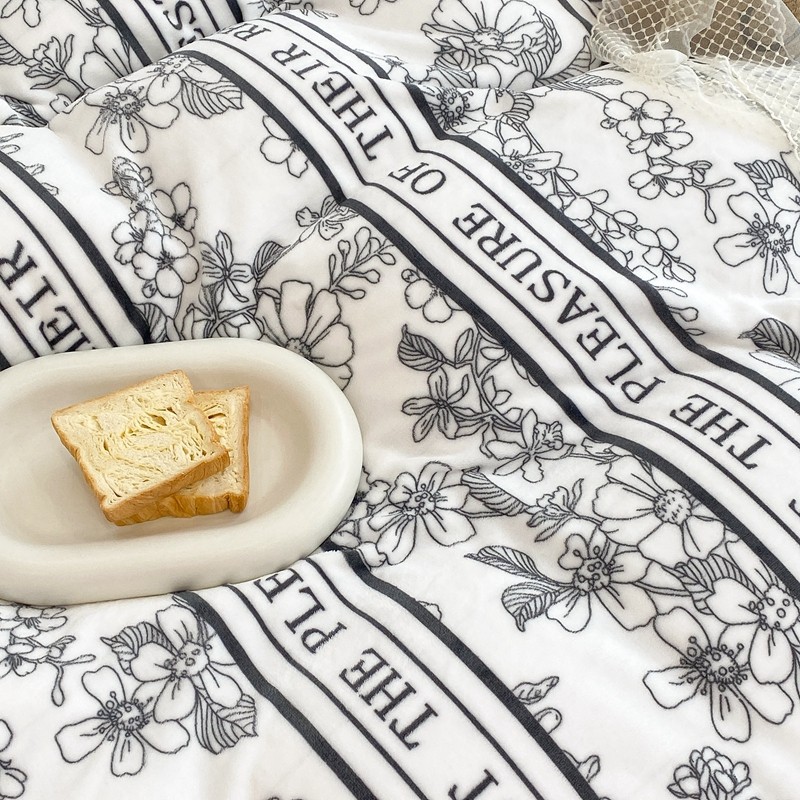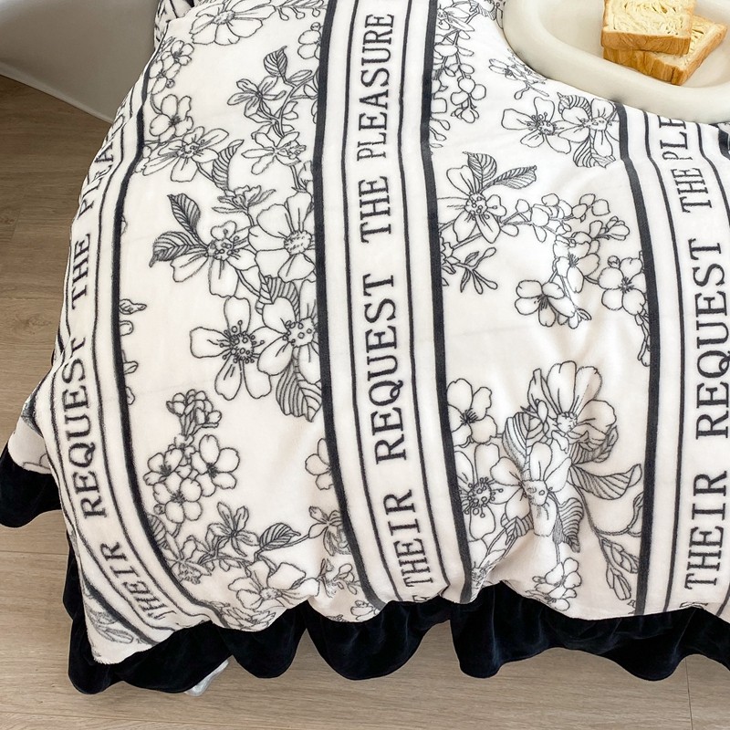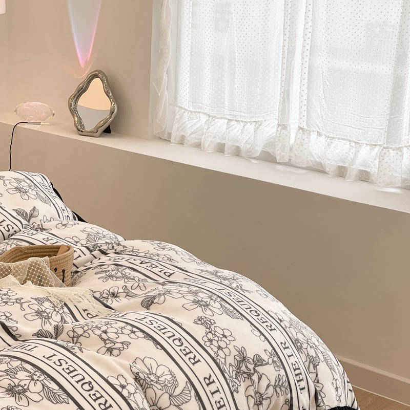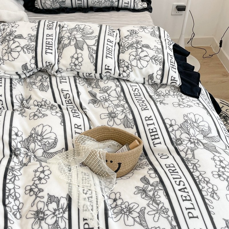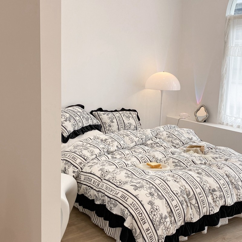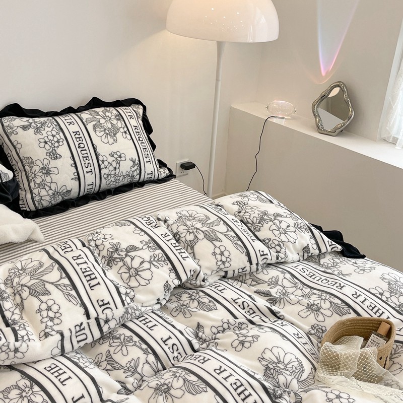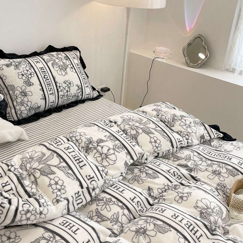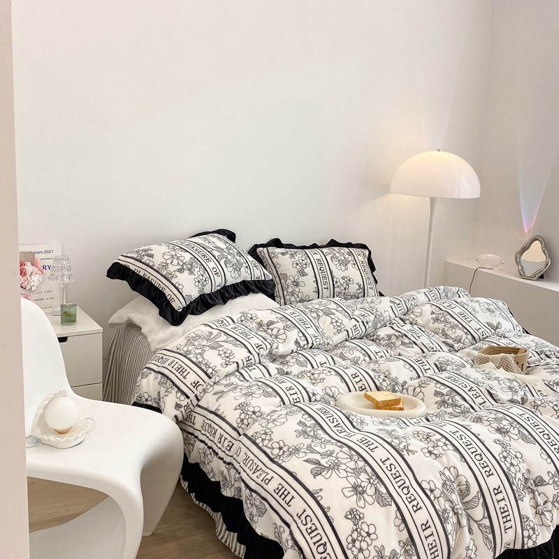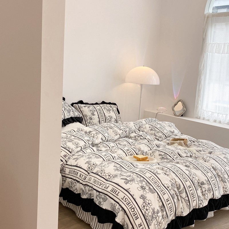 昔可家纺 2021新款黑色花边牛奶绒四件套 优雅生活