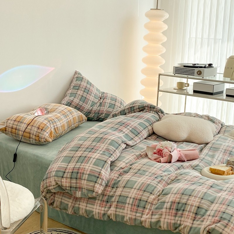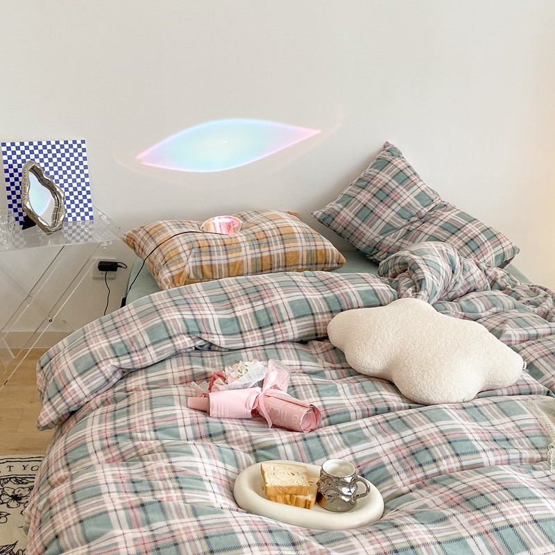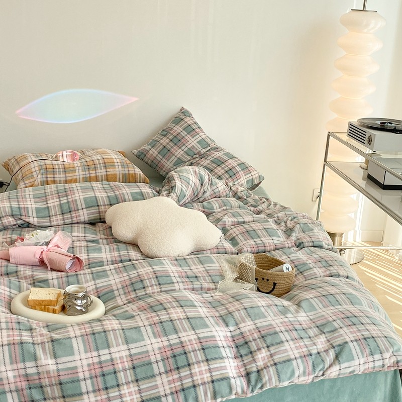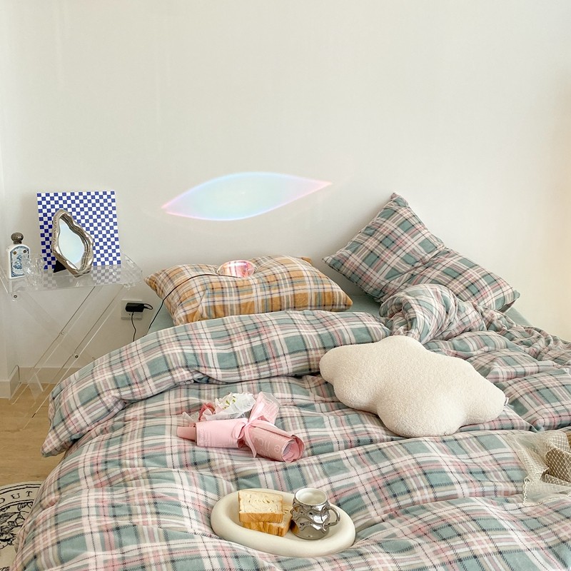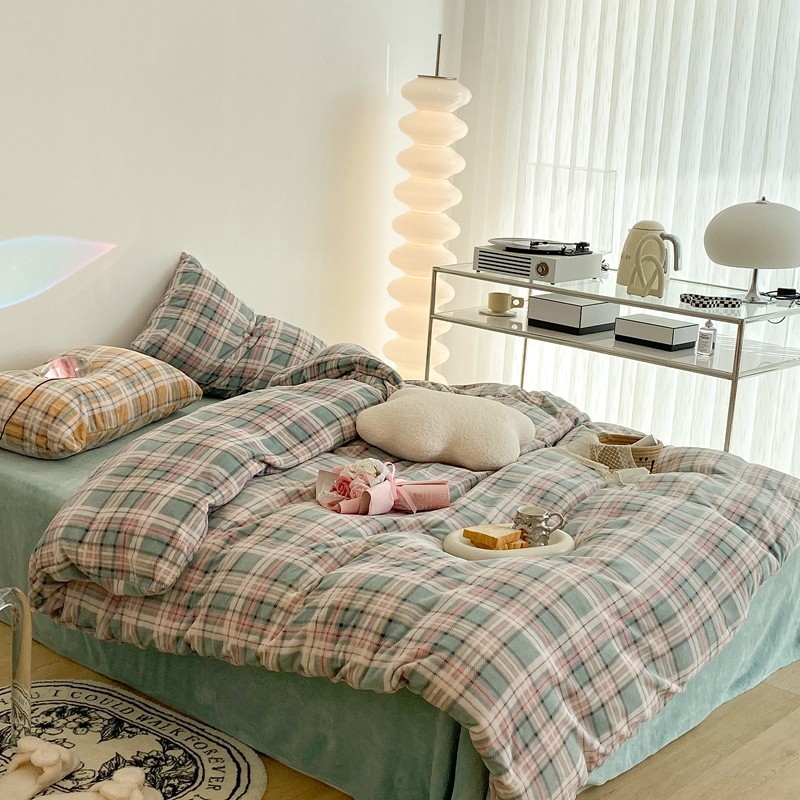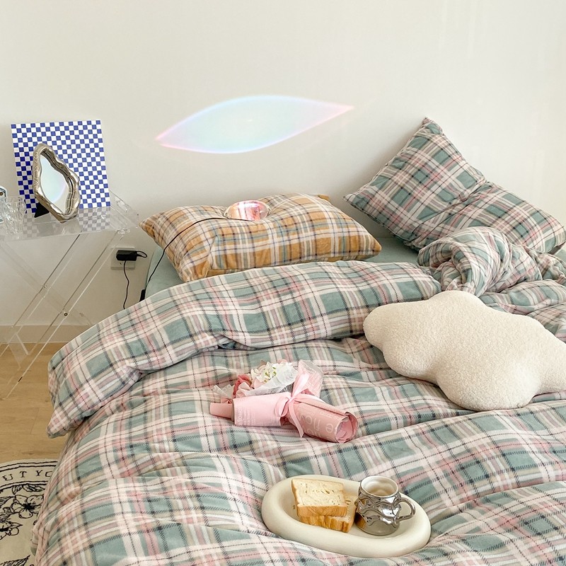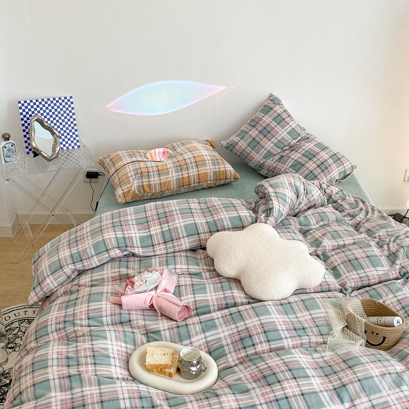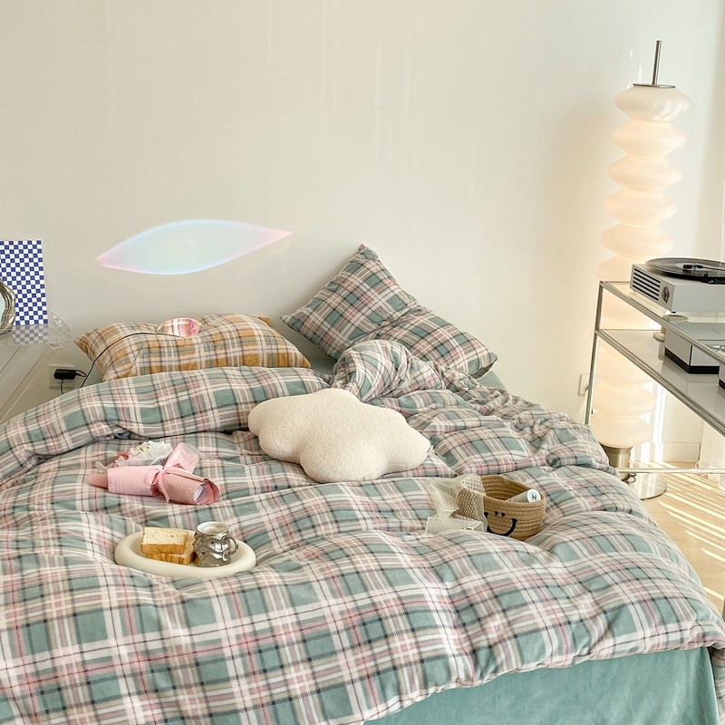 (总)昔可 2023新款全棉ins格子混搭系列四件套,ins简约绿格,粉蓝格,开心果格,学院格纹,粉绿格,海盐兰格,黄绿格,夏日蓝条,芝士黄条,紫芋泥芝士格