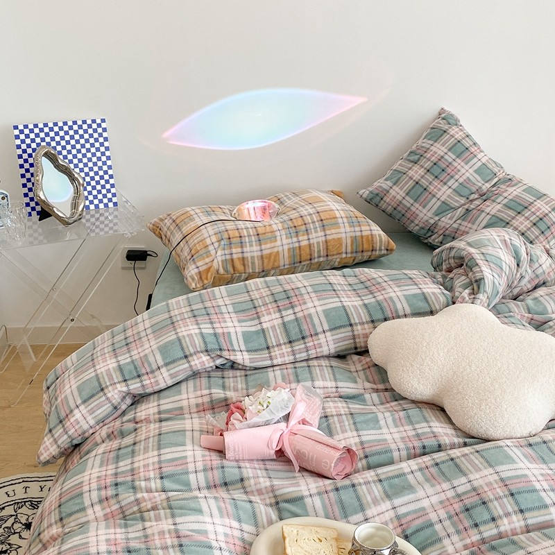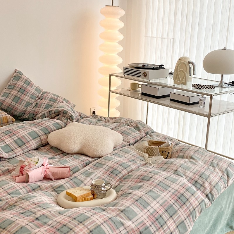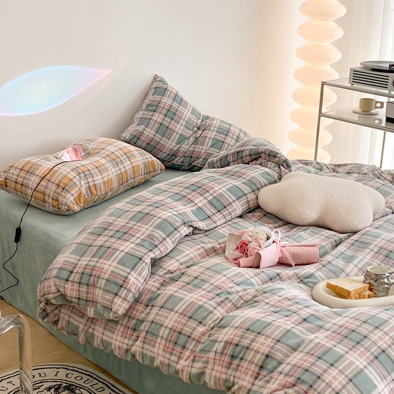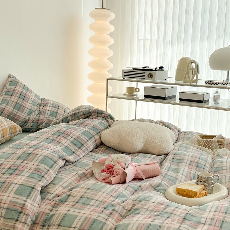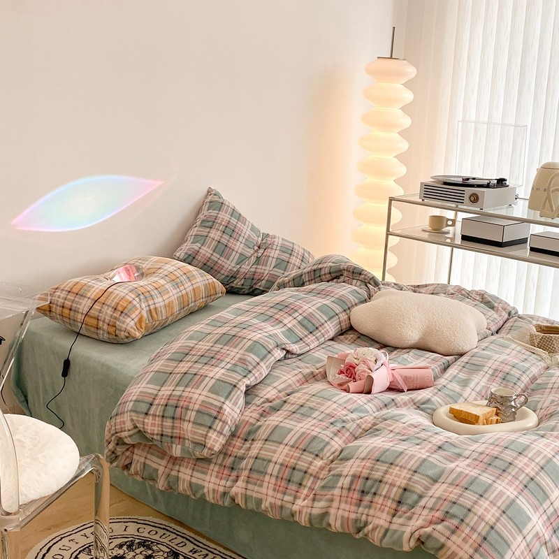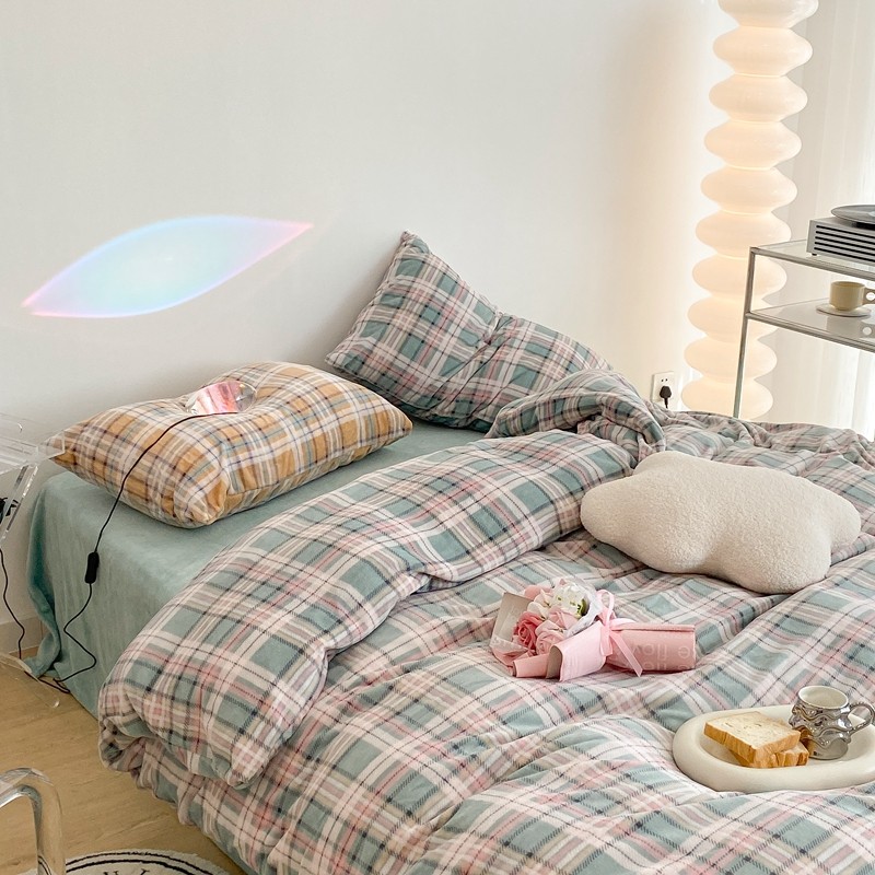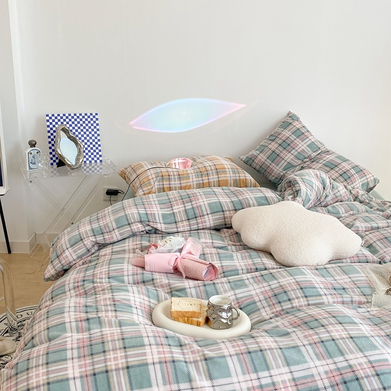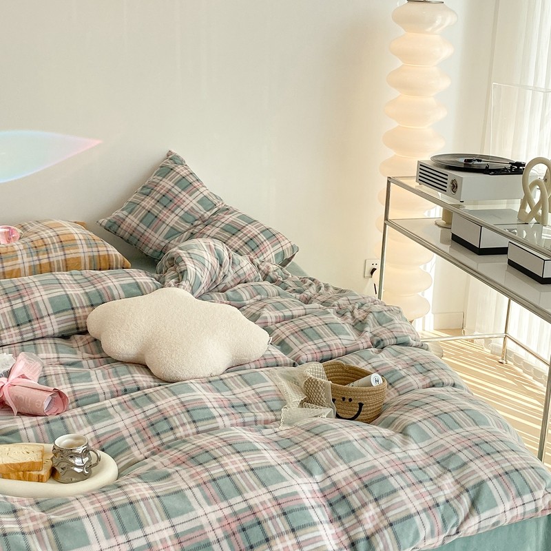 (总)昔可 2023新款全棉ins格子混搭系列四件套,ins简约绿格,粉蓝格,开心果格,学院格纹,粉绿格,海盐兰格,黄绿格,夏日蓝条,芝士黄条,紫芋泥芝士格