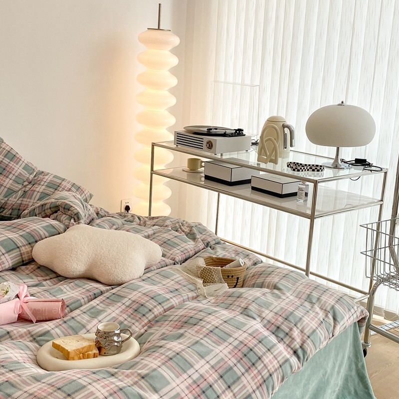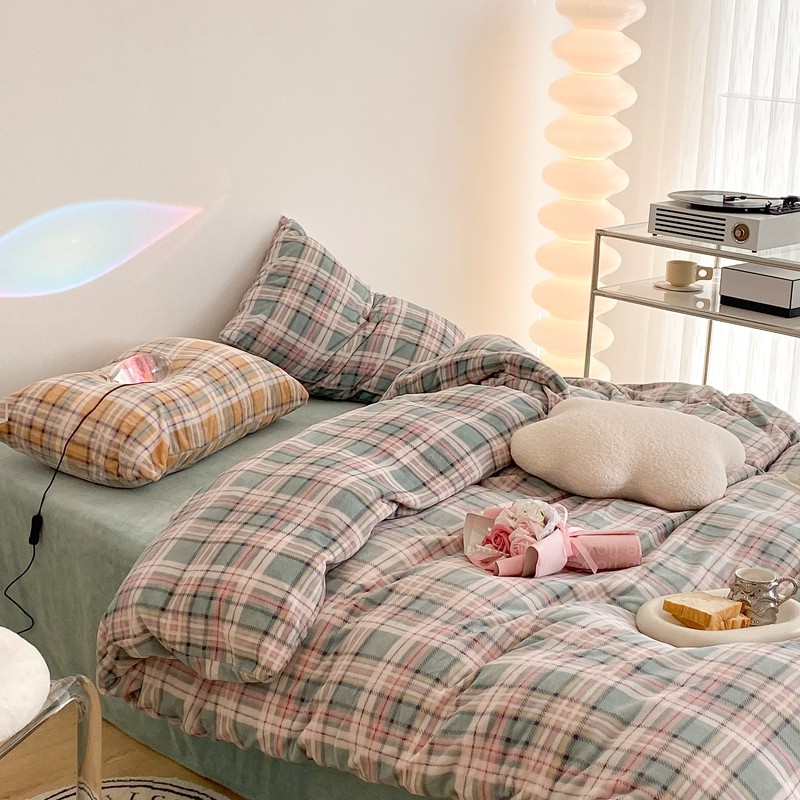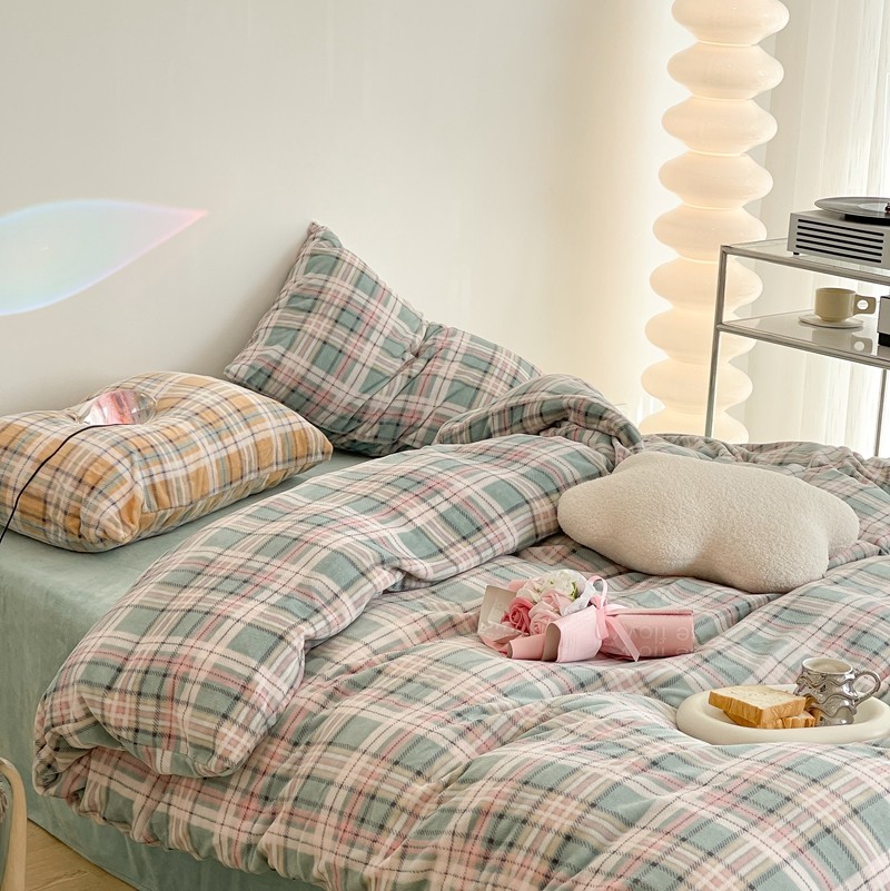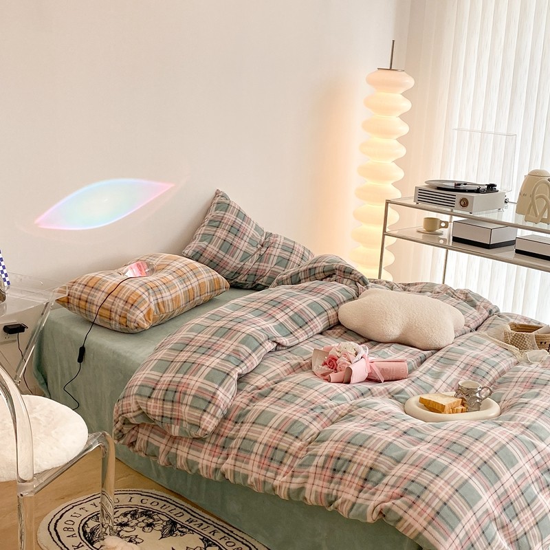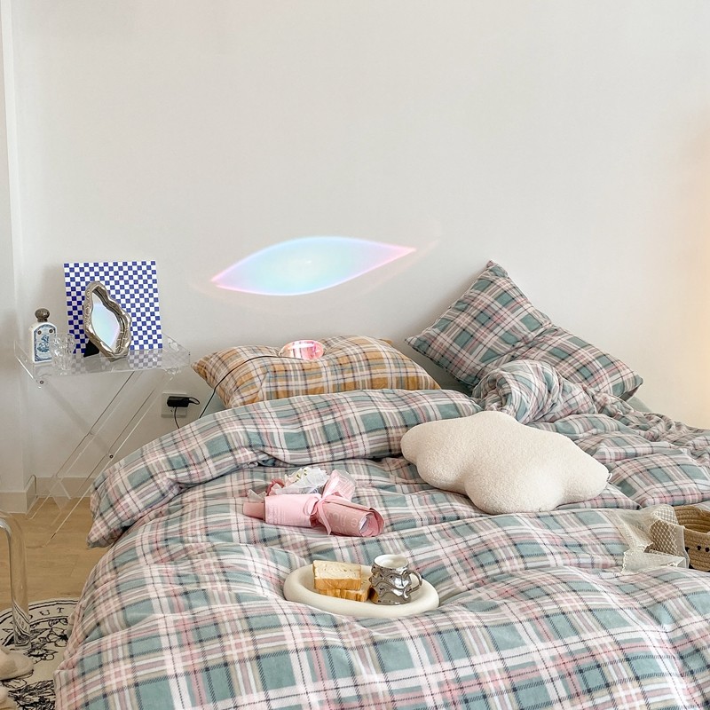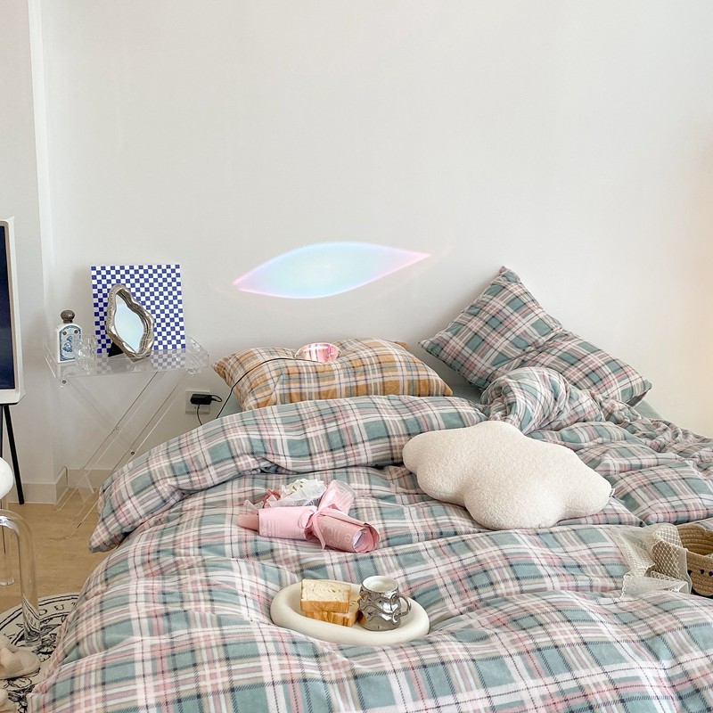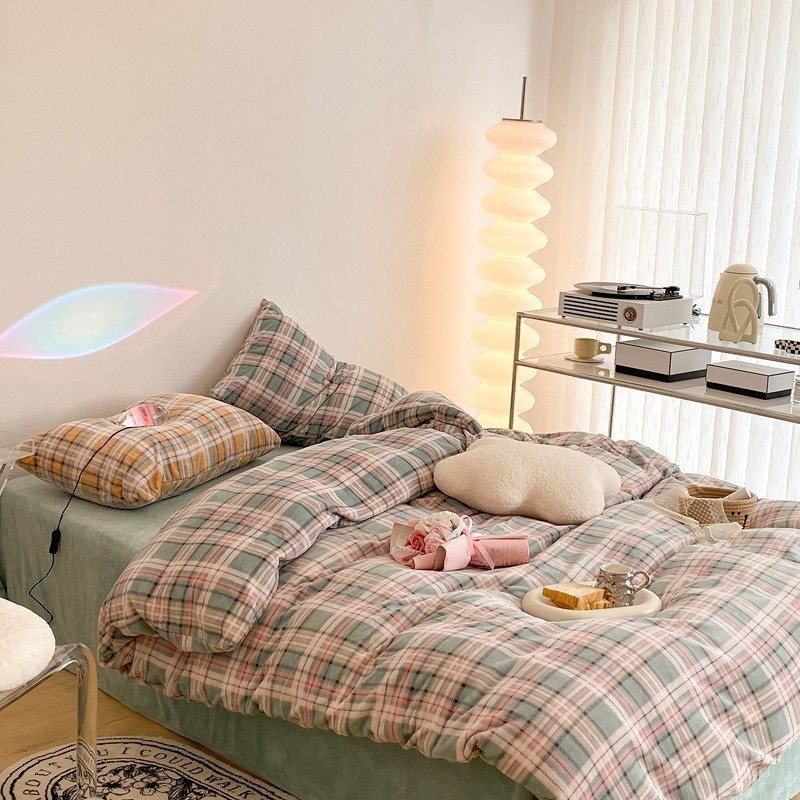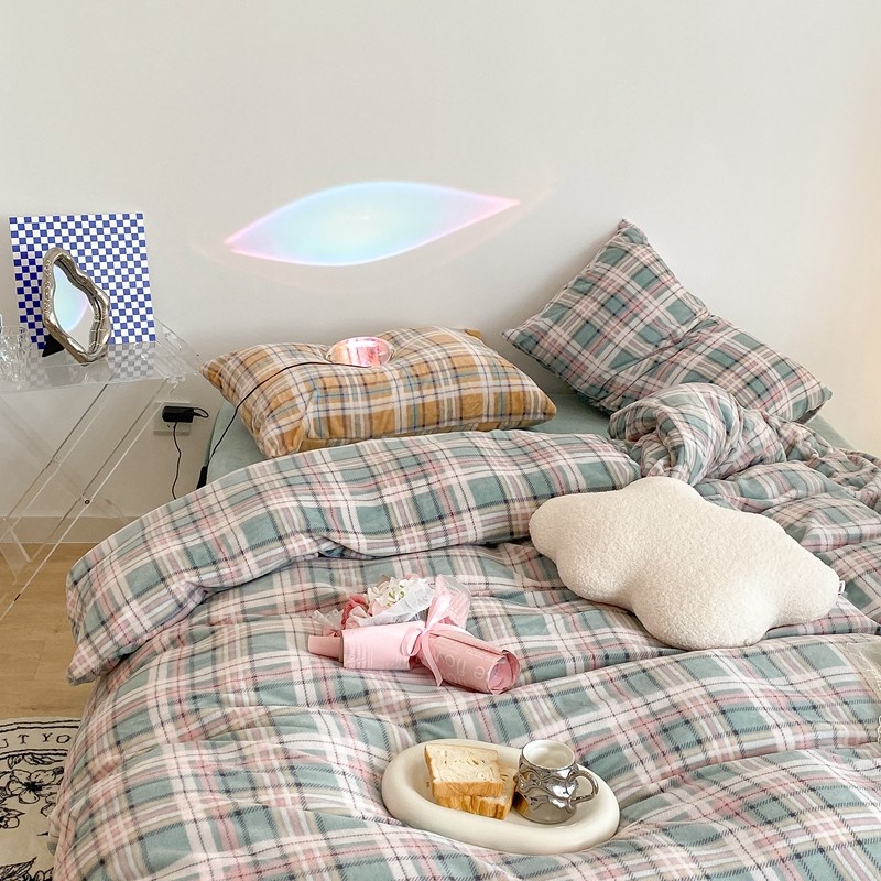 (总)昔可 2023新款全棉ins格子混搭系列四件套,ins简约绿格,粉蓝格,开心果格,学院格纹,粉绿格,海盐兰格,黄绿格,夏日蓝条,芝士黄条,紫芋泥芝士格