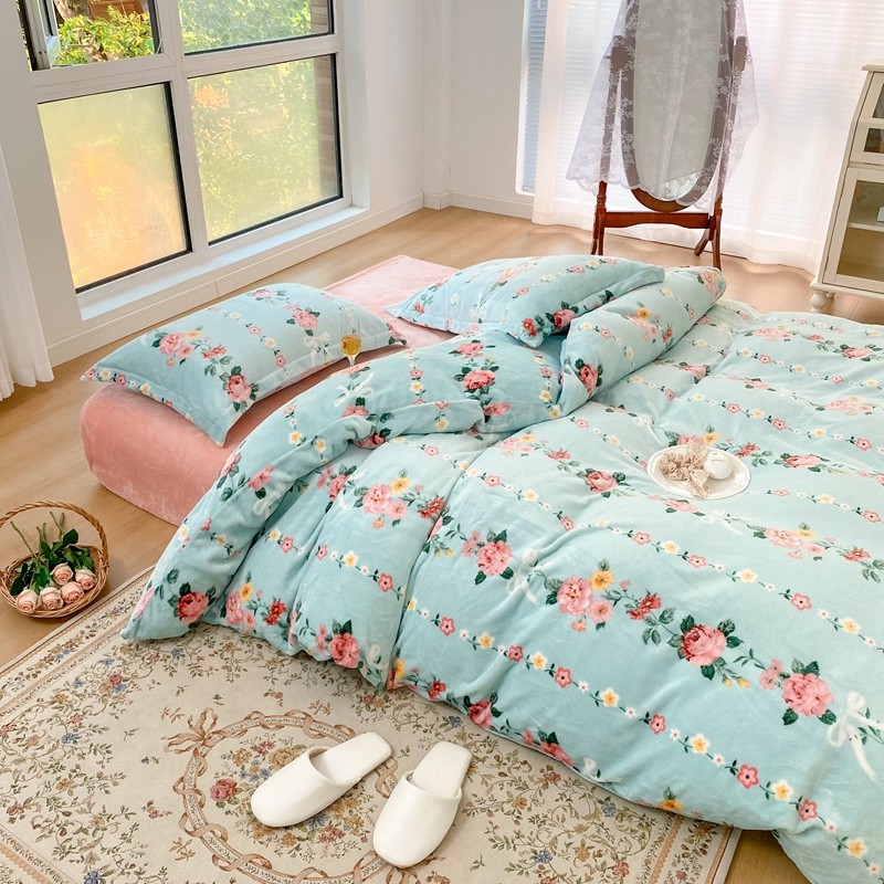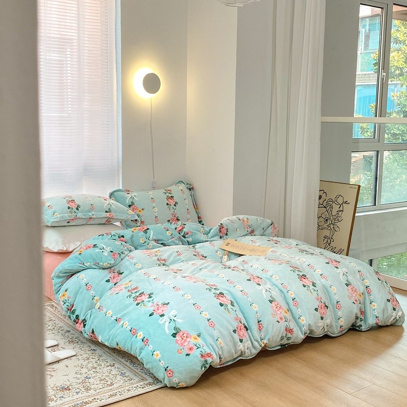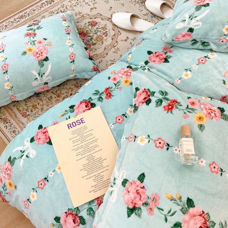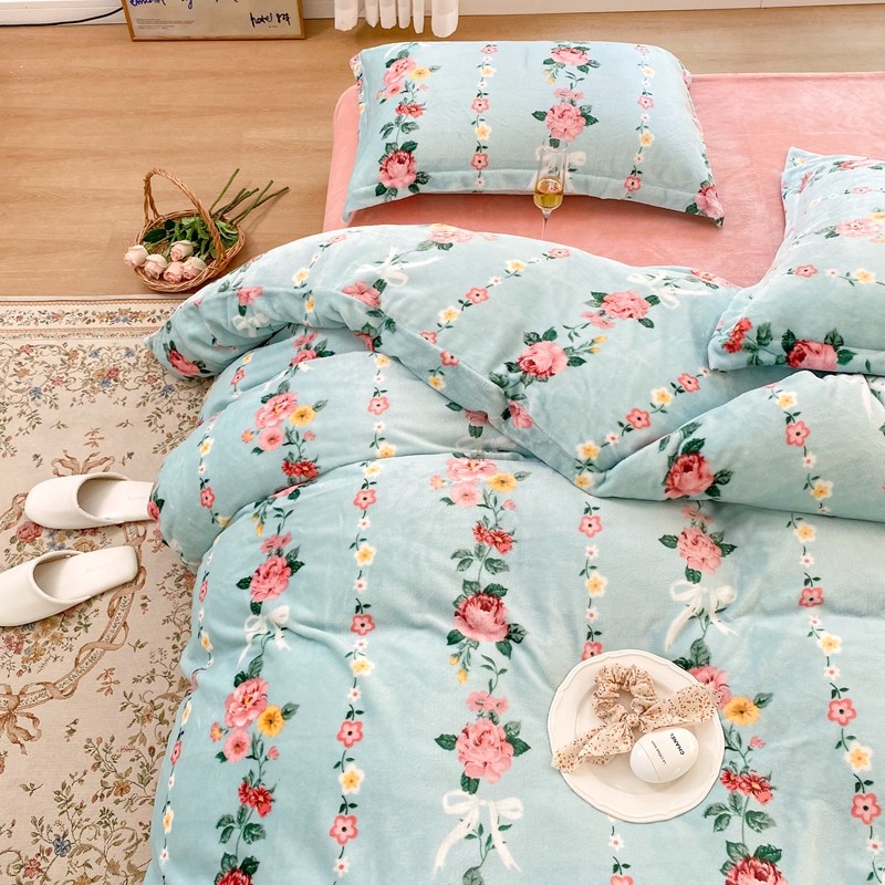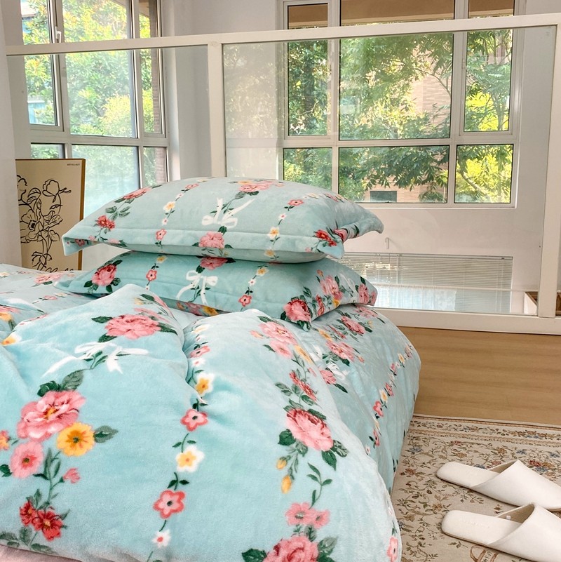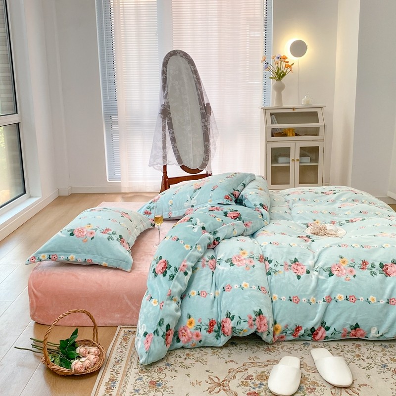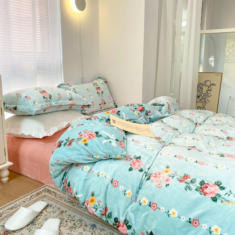 昔可家纺 2021新款牛奶绒四件套第二组图 蓝色初恋花