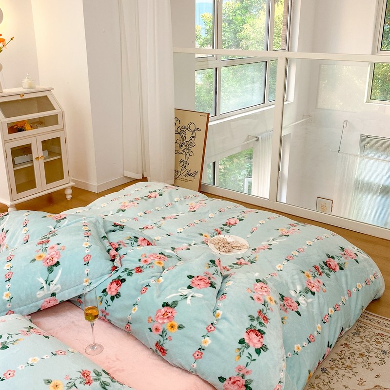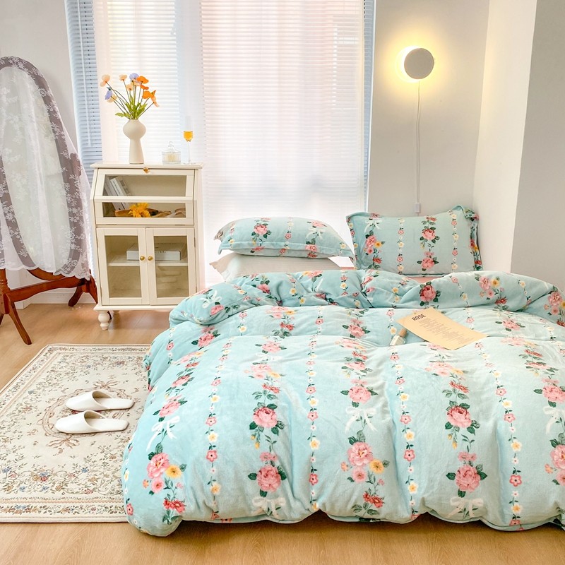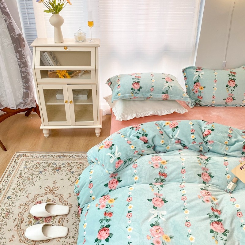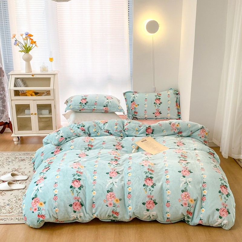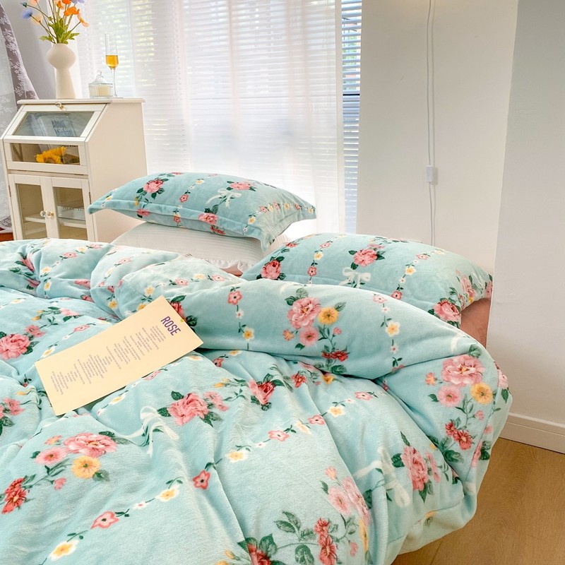 商品名称:昔可家纺 2021新款牛奶绒四件套第二组图 蓝色初恋花