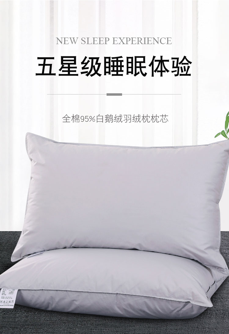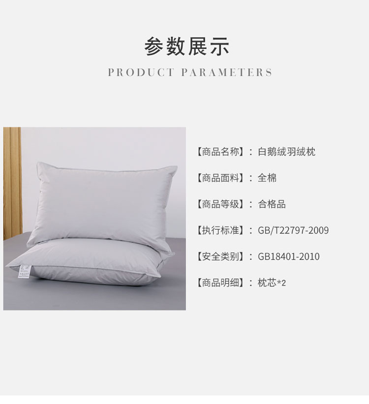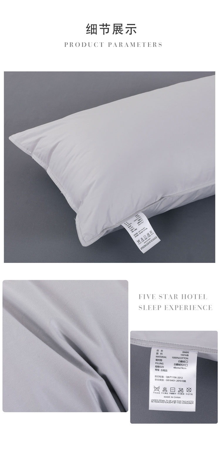 商品名称:羽仙子2023新品爆款 全棉双针工艺羽绒枕 鹅绒枕头枕芯灰色