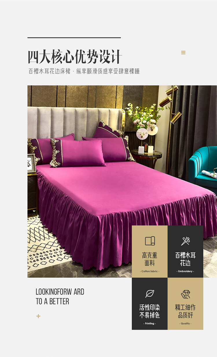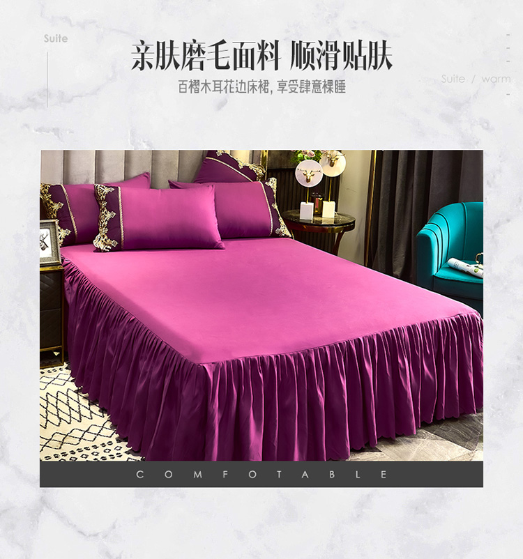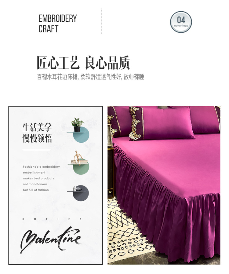 商品名称:莉莉安家纺 2025新款莫娜百褶木耳花边单床裙 莫娜-烟薰紫