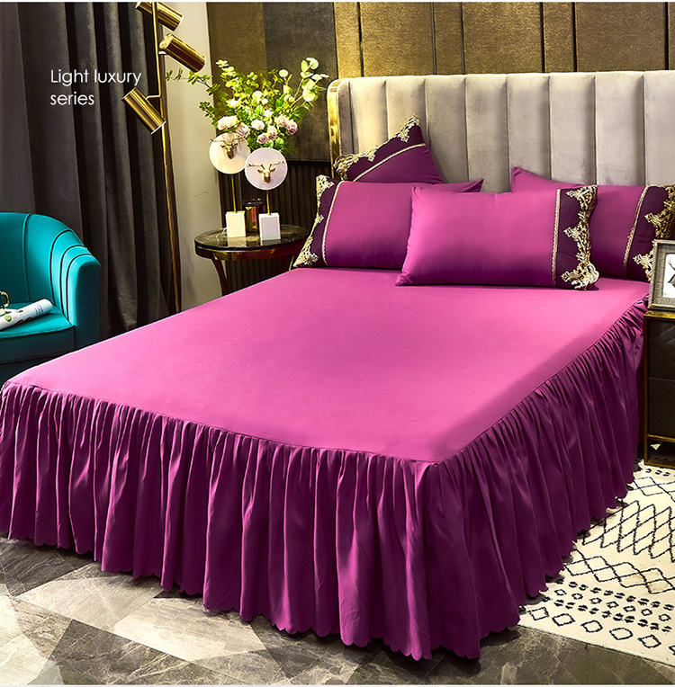 莉莉安家纺 2025新款莫娜百褶木耳花边单床裙 莫娜-烟薰紫
