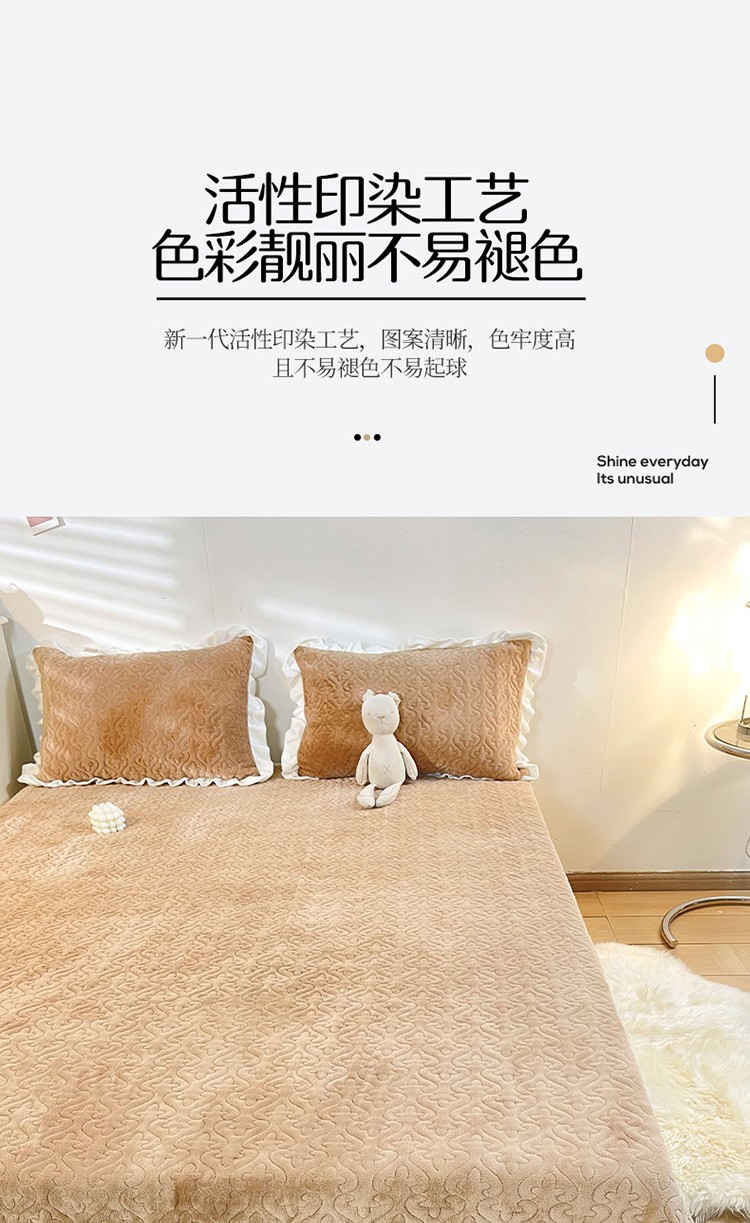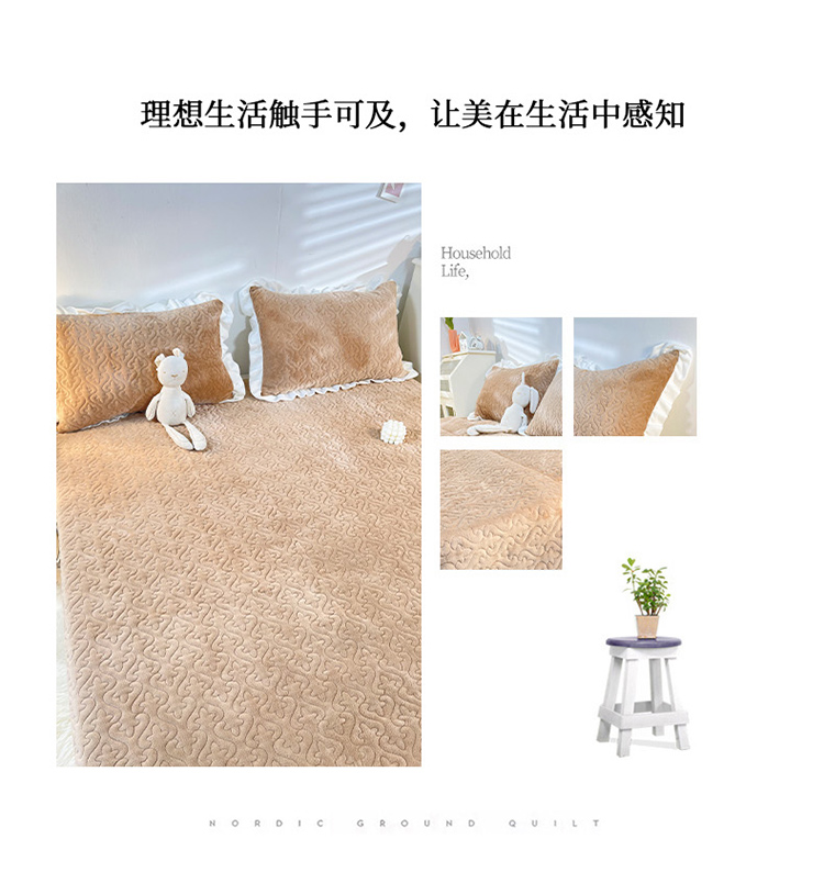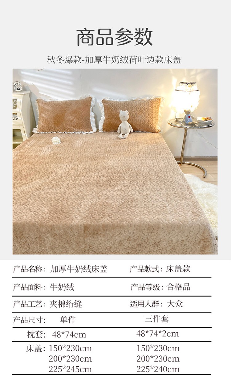 • 91家纺网 家纺一手货源 找家纺 沐辰2021新款加厚牛奶绒荷叶边款床盖 淡卡其