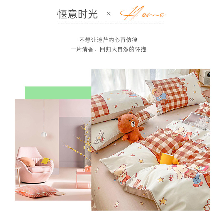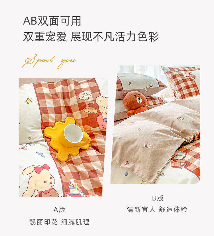 (总)感遇家纺 2022新款全棉印花四件套,格子草莓,花晓,滑板小熊,萌宠,时光,兔宝宝,熊先生