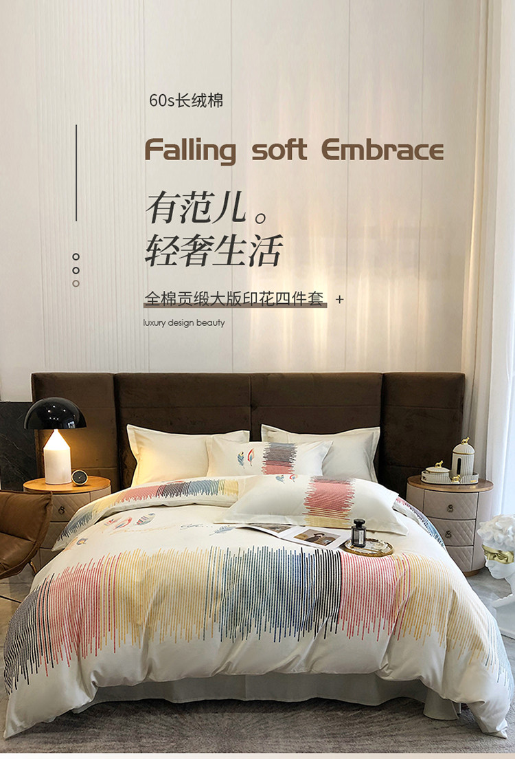 商品名称:卡巴伦家纺 2023新款长绒棉数码印花轻奢款四件套 火舞