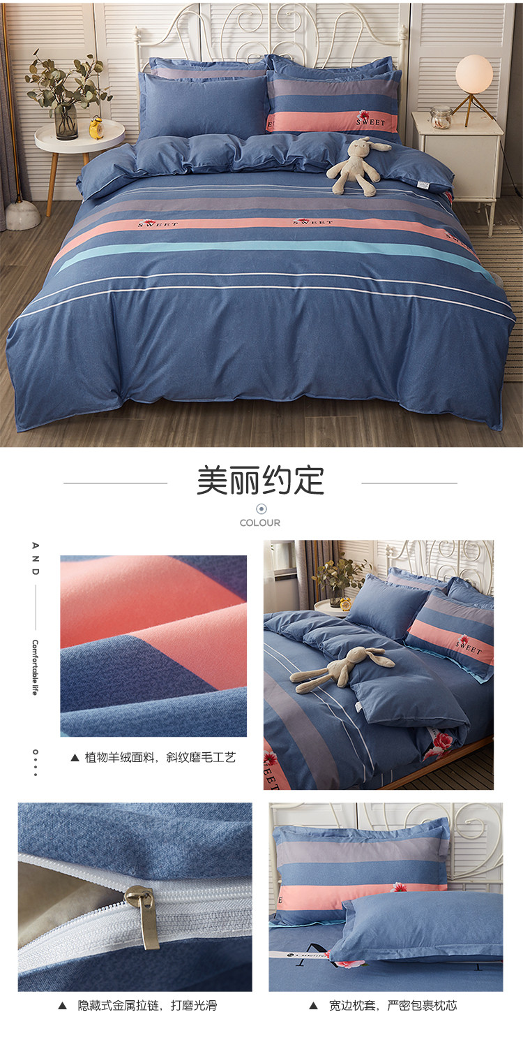 当前位置: 91家纺网 > 商品网购 > 床品套件 > 四件套 > 化纤普通四件套 > 优家居 2023新款植物羊绒四件套 美丽约定