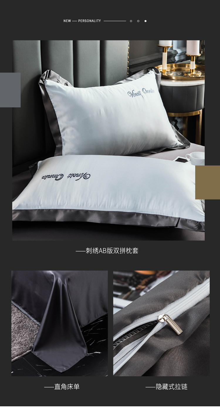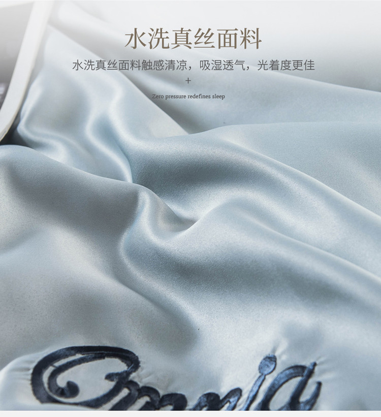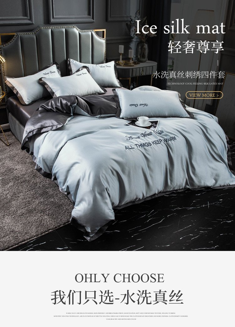 商品名称:欧冠 2022新款水洗真丝盛夏系列四件套 浅灰+深灰