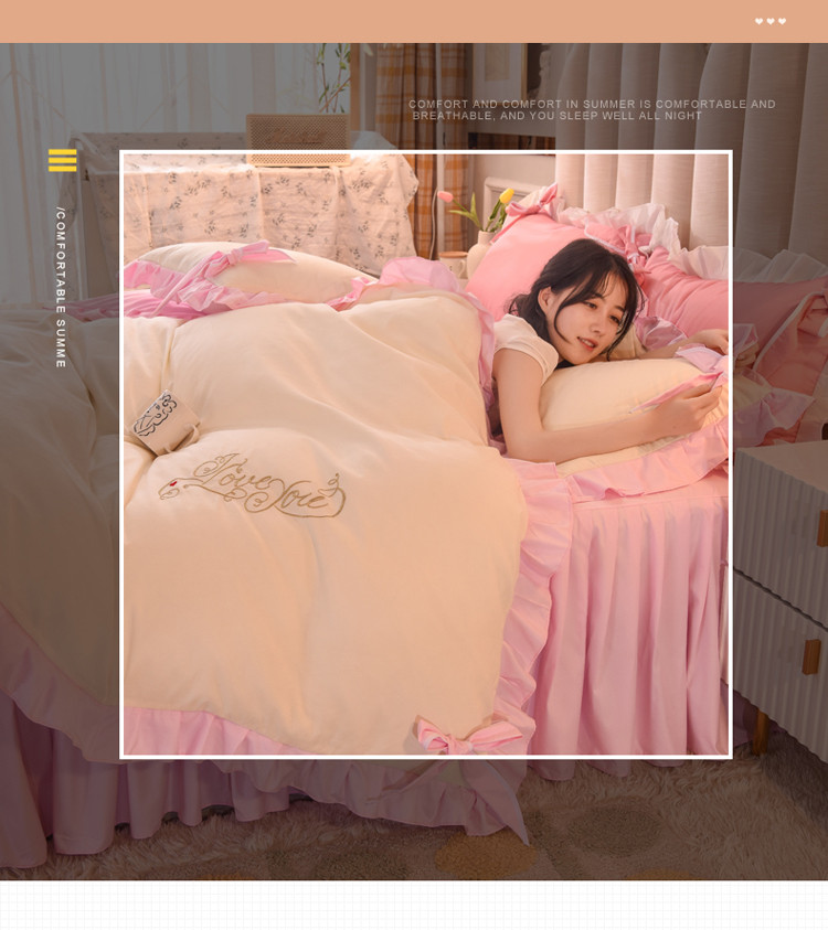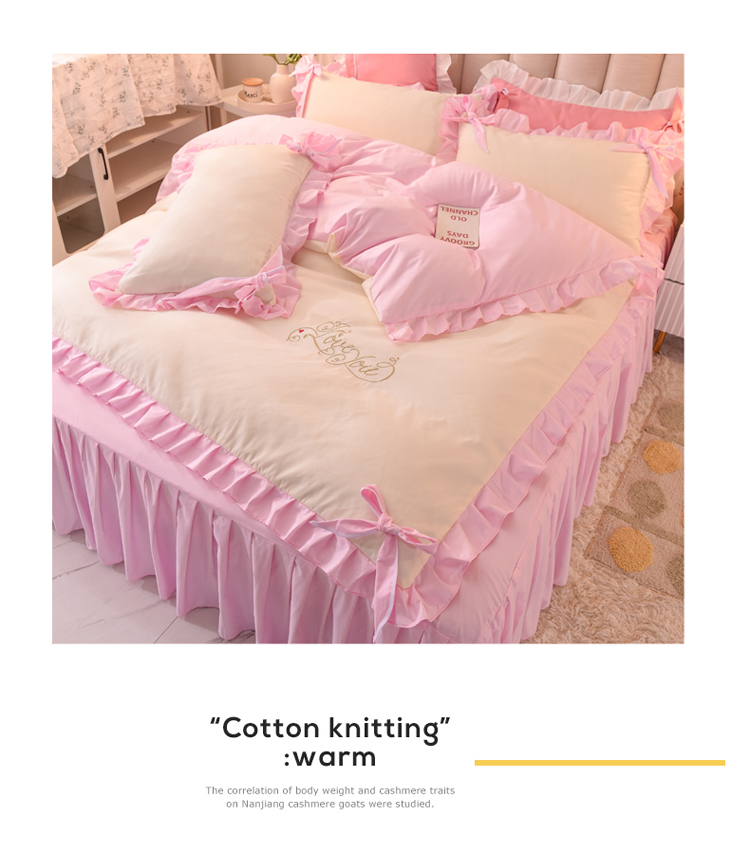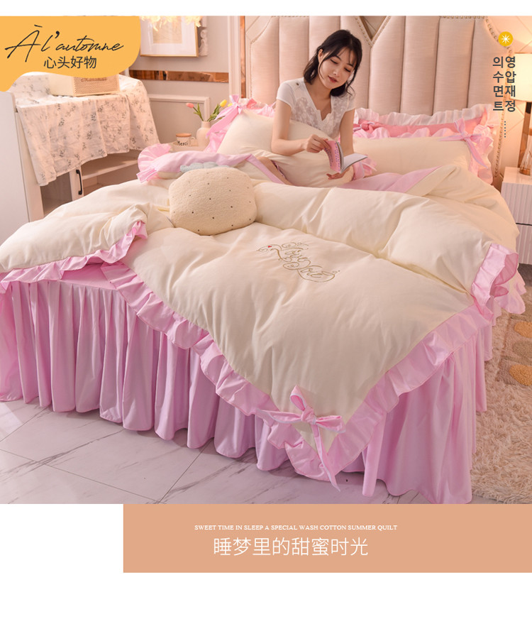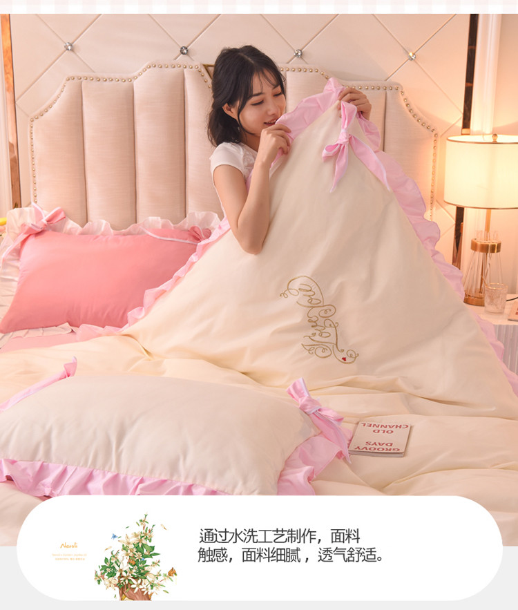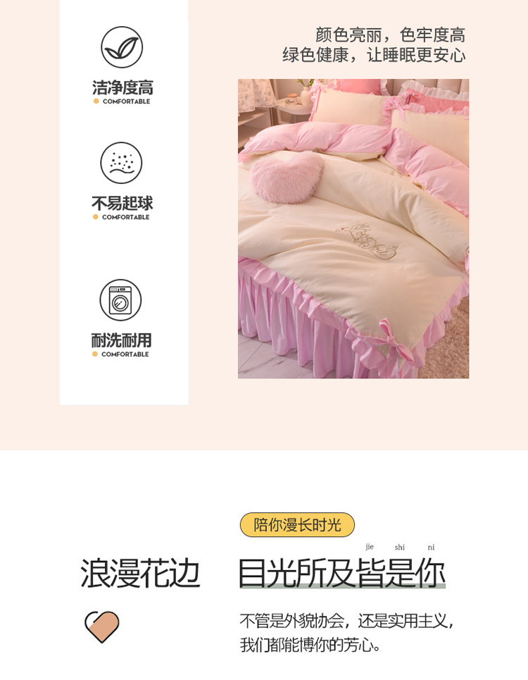当前位置: 91家纺网 > 商品网购 > 床品套件 > 四件套 > 水洗棉四件套 > 欧冠 2022新款潮系列爱巢款床裙款刺绣四件套 粉白