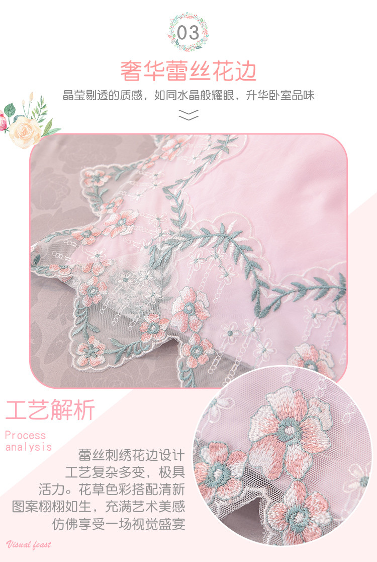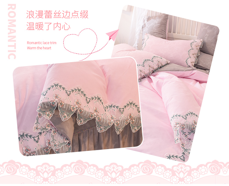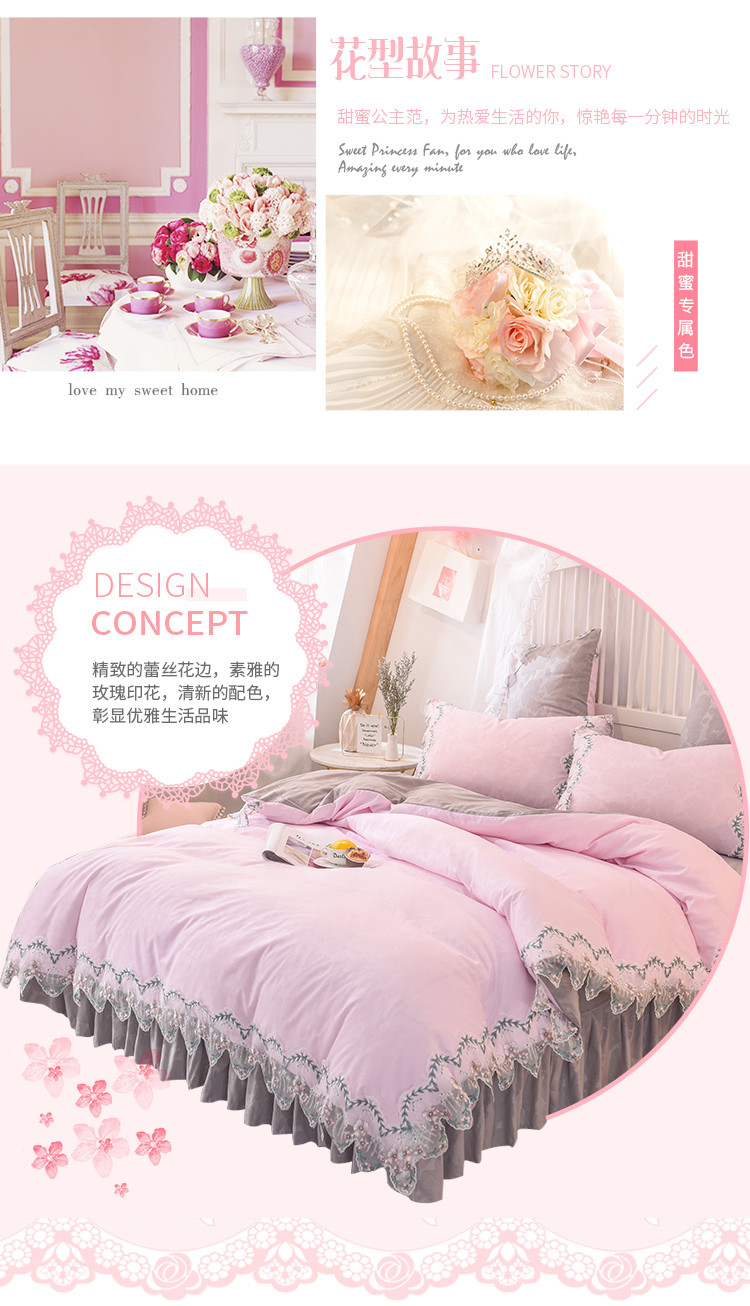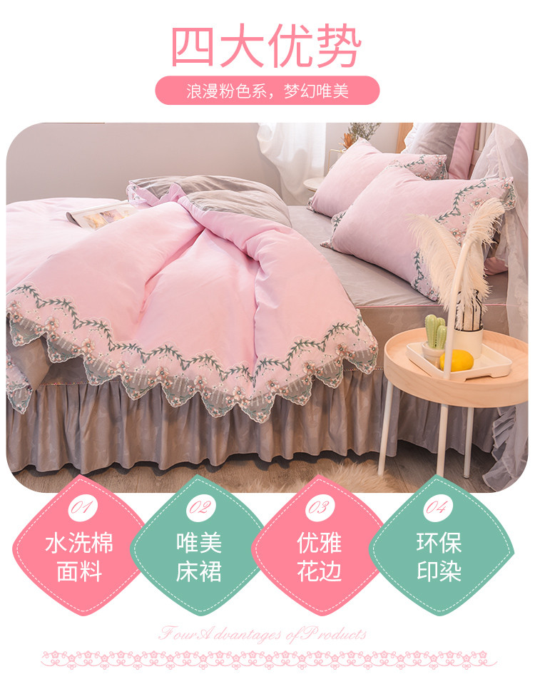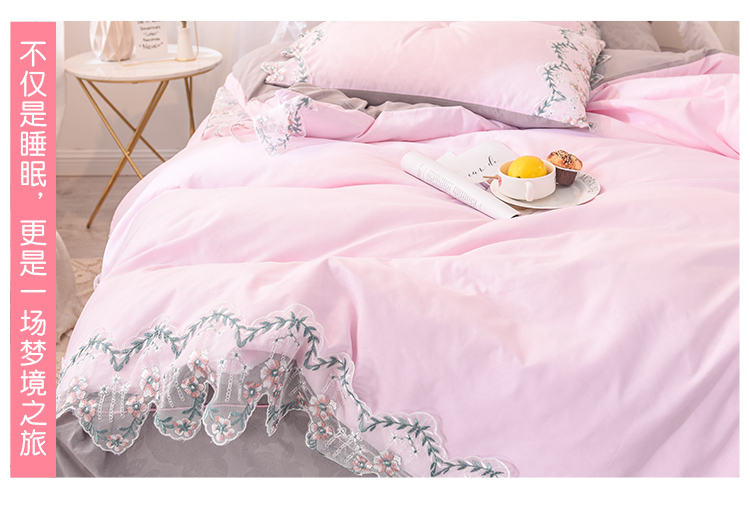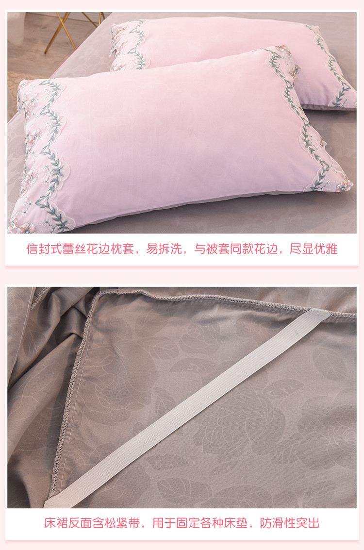 当前位置: 91家纺网 > 商品网购 > 床品套件 > 四件套 > 水洗棉四件套 > 欧冠 2022新款韩版水洗棉蕾丝玫瑰秘密系列四件套 玫瑰秘密-粉灰