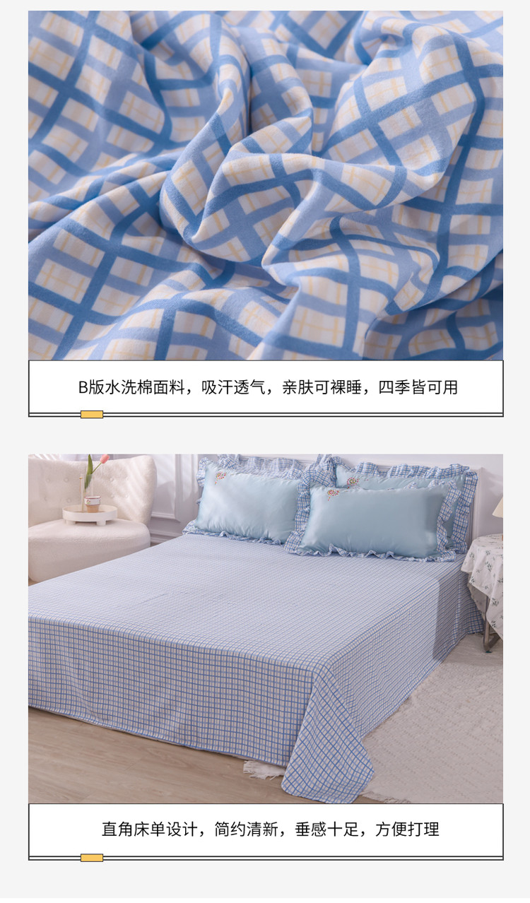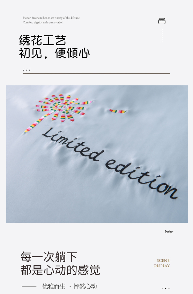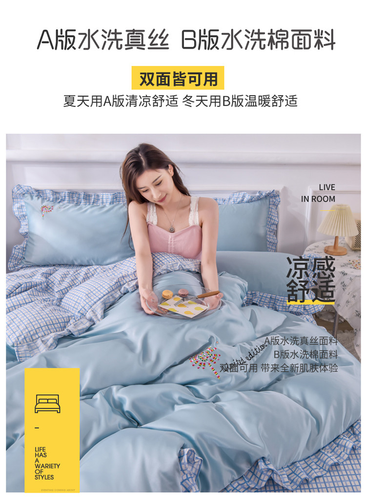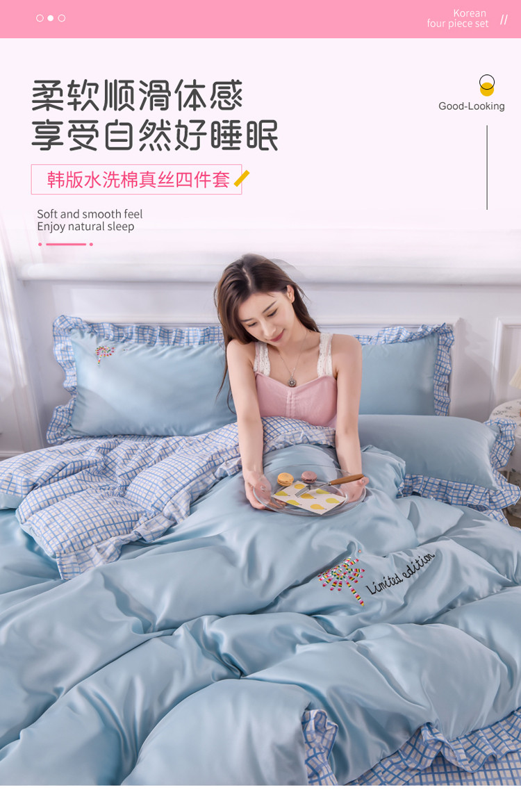 商品名称:欧冠 2022新款水洗真丝加水洗棉刺绣幸福花系列四件套 幸福花-冰蓝