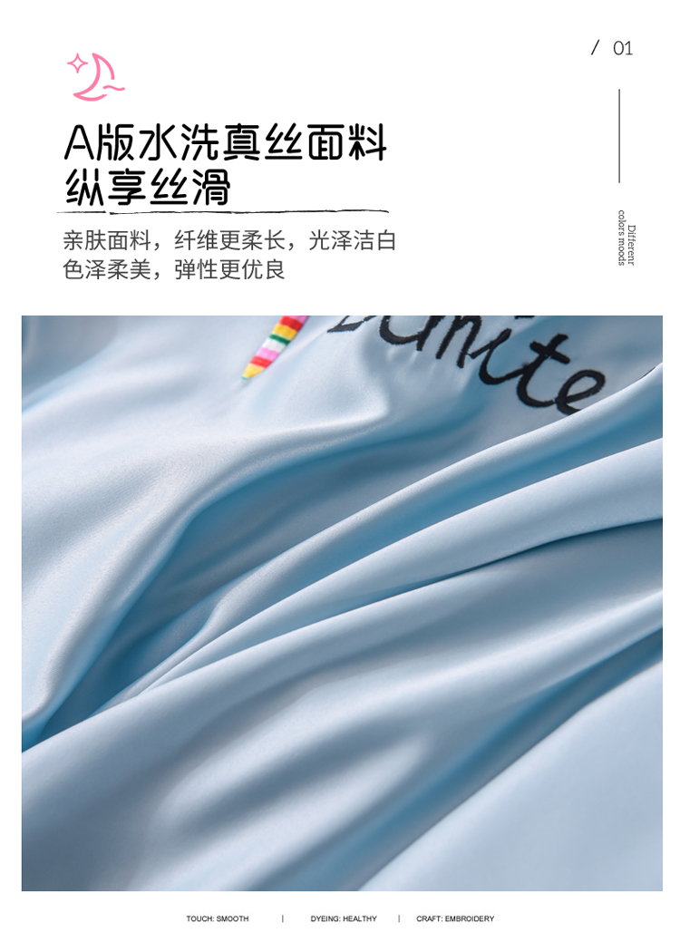 欧冠 2022新款水洗真丝加水洗棉刺绣幸福花系列四件套 幸福花-冰蓝