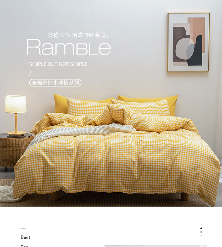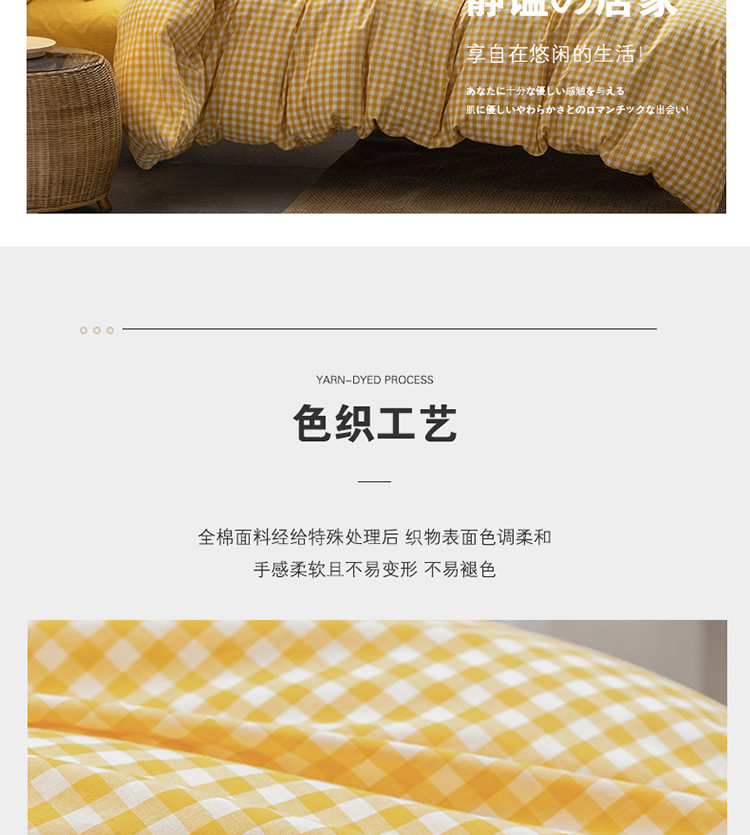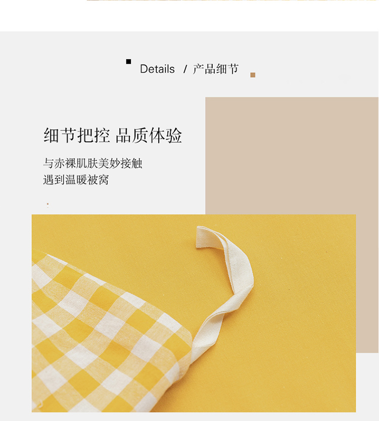 当前位置: 91家纺网 > 商品网购 > 床品套件 > 四件套 > 全棉活性四件套 > 棉邦 2022新款全棉色织水洗棉四件套 黄小格