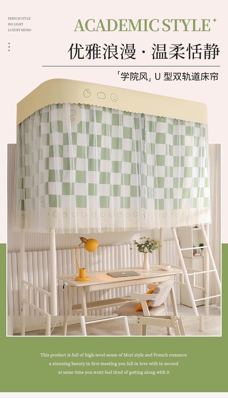 (总)卓尔居 2025新款浪漫学生宿舍雪尼尔交织工艺蕾丝幔纱U型导轨蚊帐-远莺,远莺-粉,远莺-奶黄