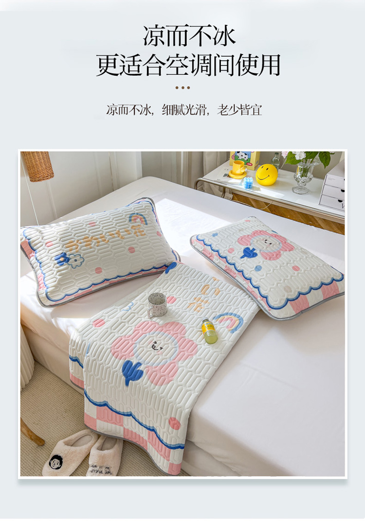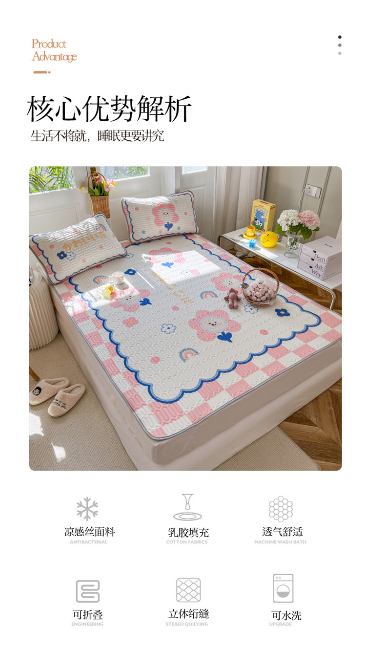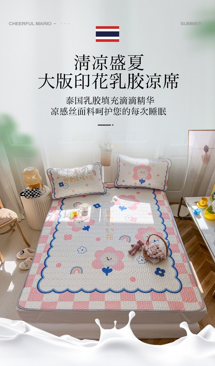 寐居 2022新款凉感丝0.5乳胶大版乳胶凉席三件套美好心情