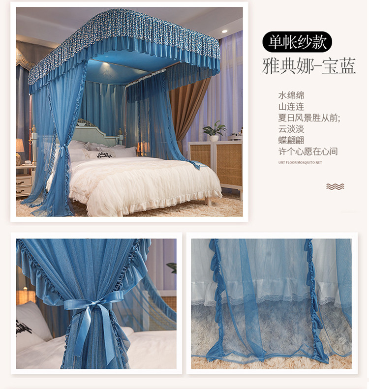 梦尔佳 2022新款防蚊落地U型蚊帐纱-雅典娜-宝蓝