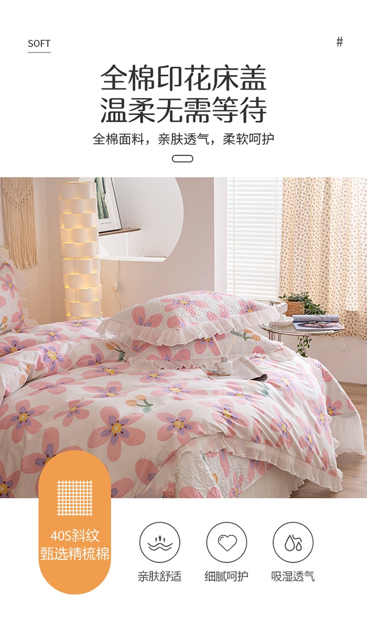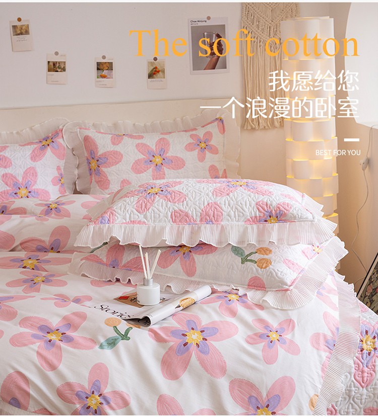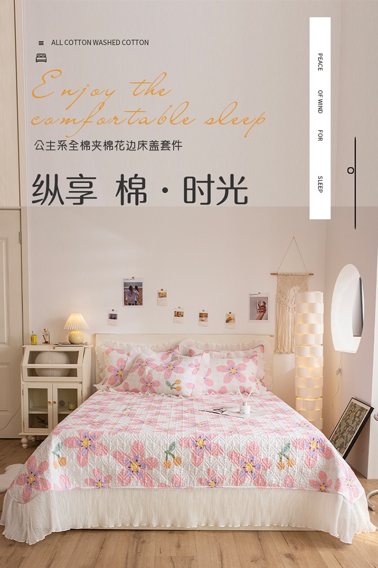 (总)添越 2024花边纯棉夹棉床盖三件套全棉,玫瑰花园粉,安娜花园,初恋,波点白,华美夺艳,黄波点,心动,梦境,多彩爱心,心心相印,太阳花米白,元气桃桃
