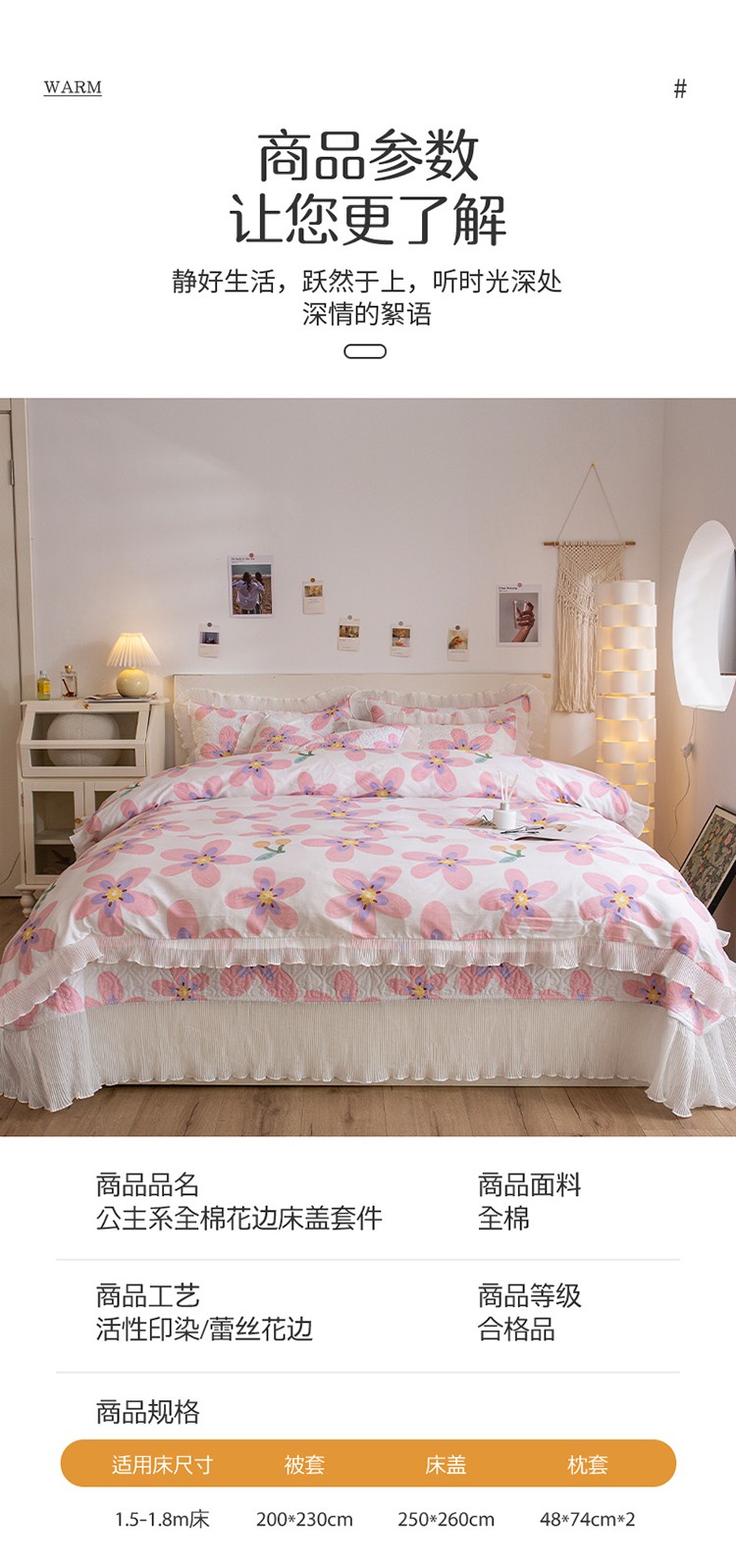 商品名称:添越 2024花边纯棉夹棉床盖三件套全棉 梦境