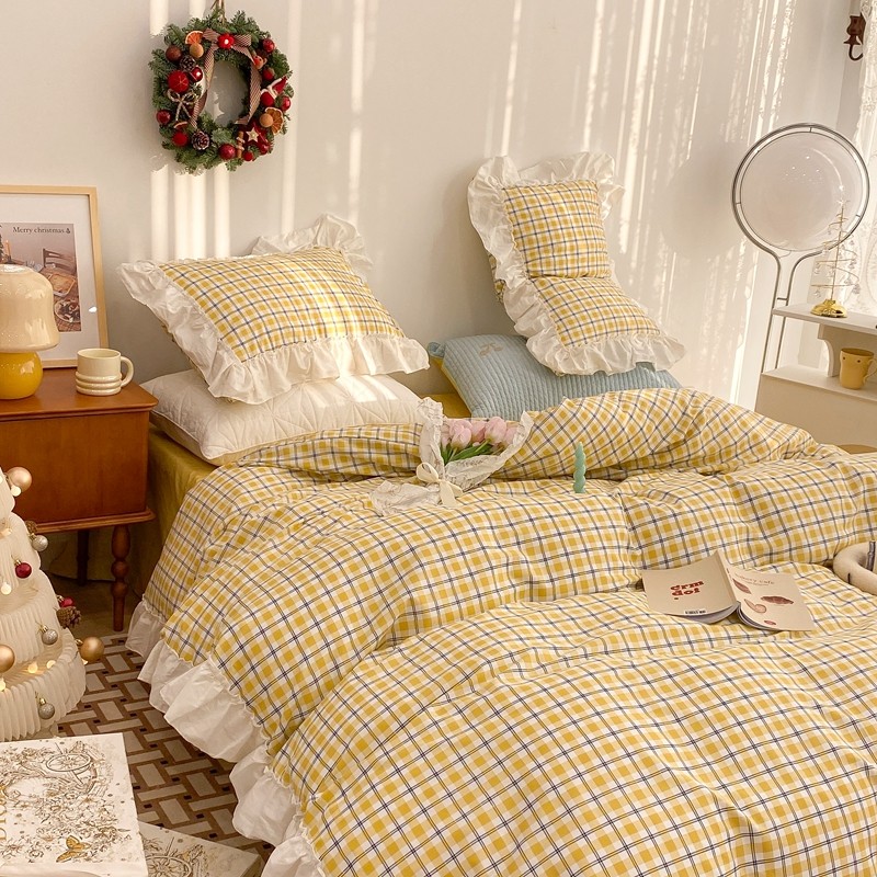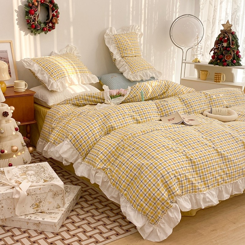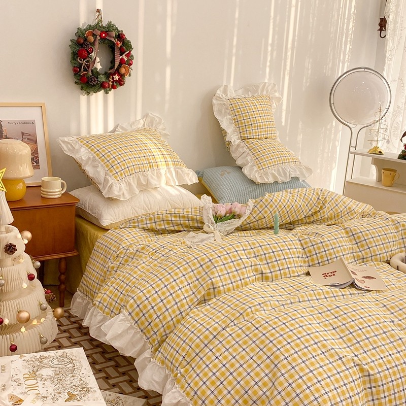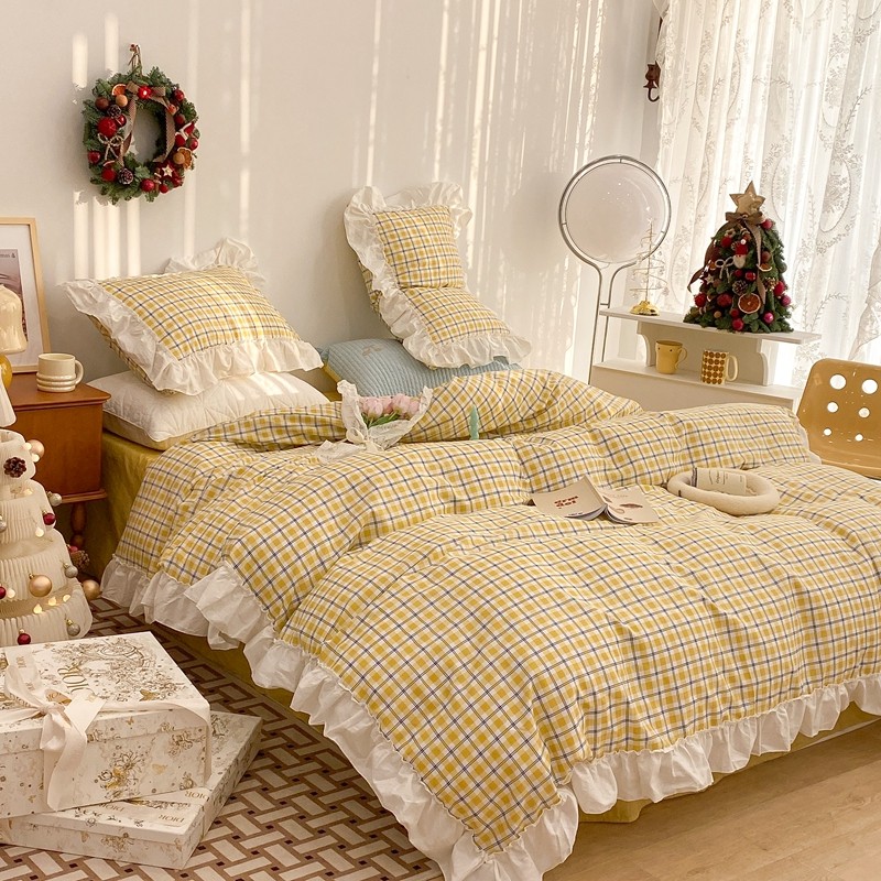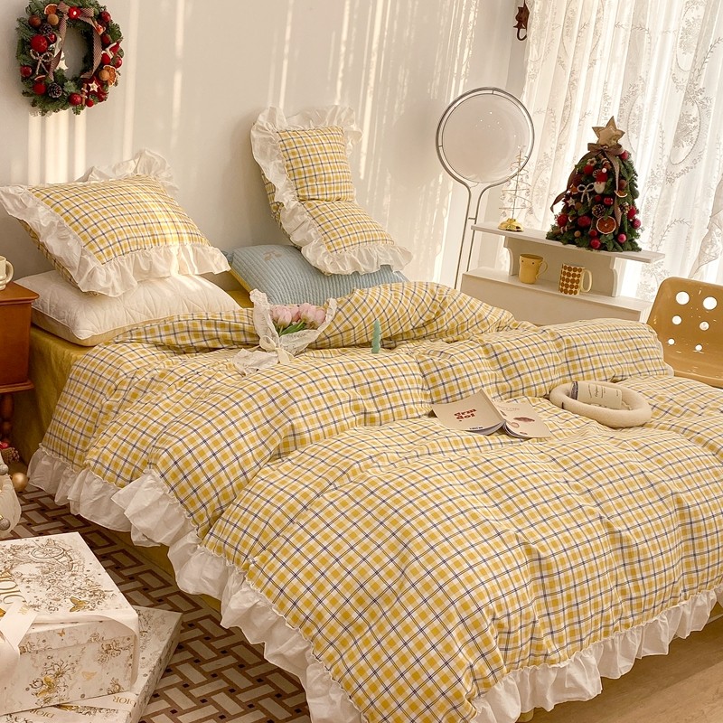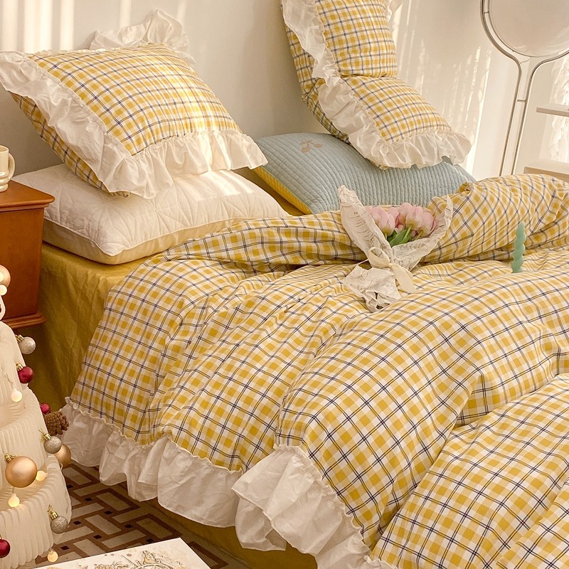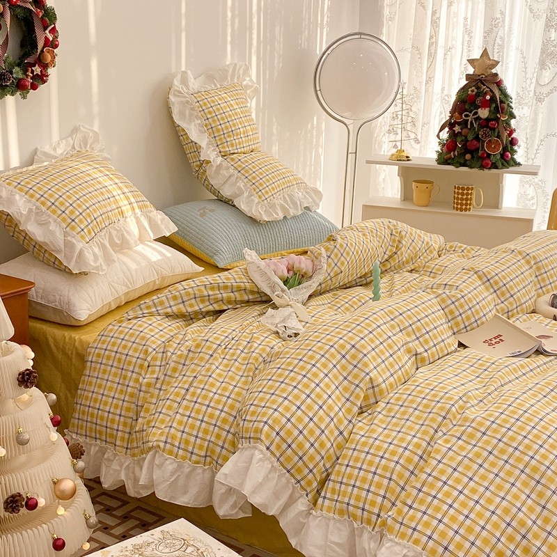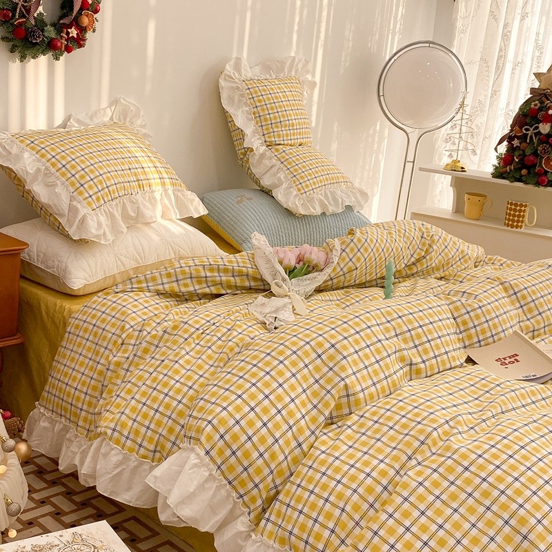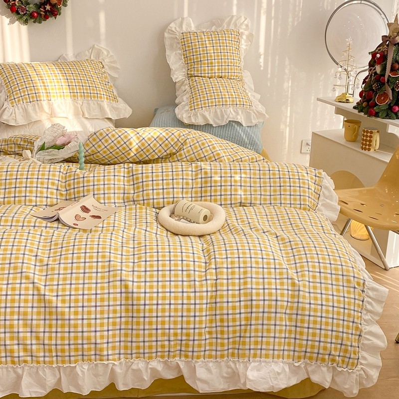 商品名称:昔可2022新款花边格子系列四件套 日落黄格