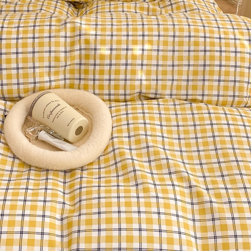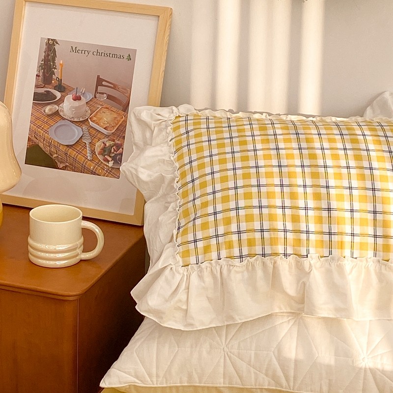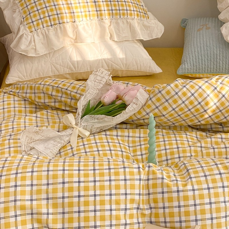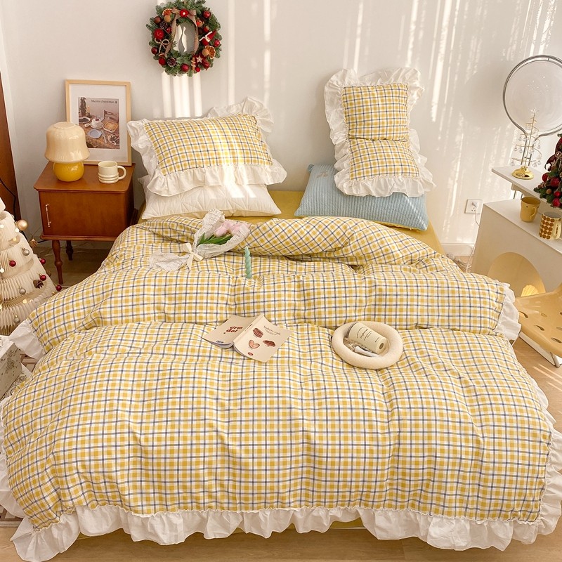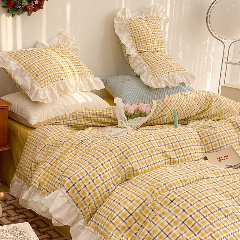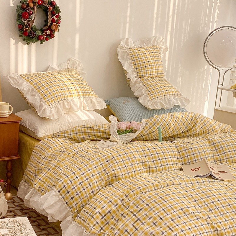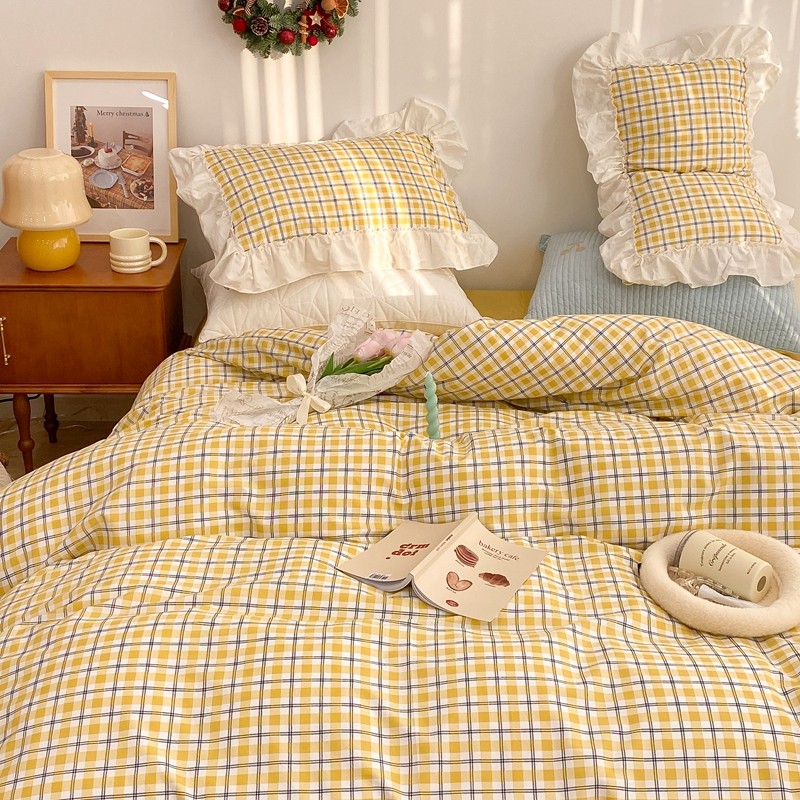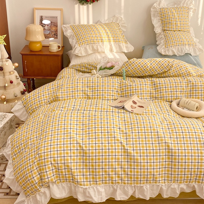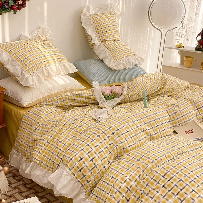 商品名称:昔可2022新款花边格子系列四件套 日落黄格