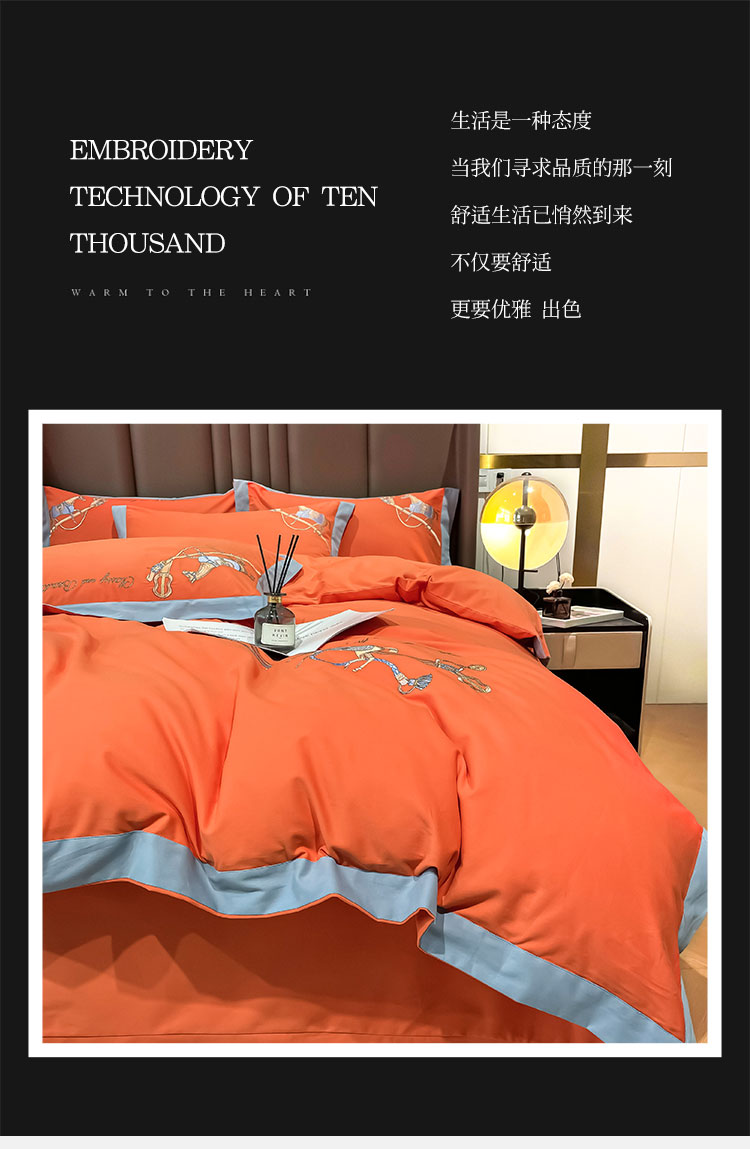 (总)雲归梦 2021新款全棉生态磨毛刺绣四件套,慕思-橙色,慕思-粉紫,慕思-灰,慕思-米黄,慕思-青绿,慕思-天蓝