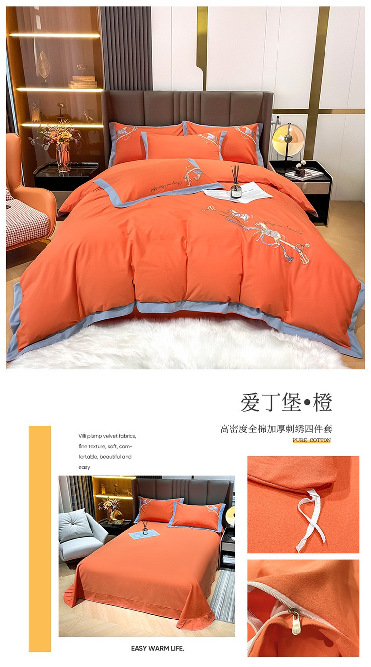 商品名称:雲归梦 2022生态磨毛绣花加厚四件套(直播爆款)爱丁堡-橙