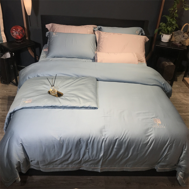 (总)玖玖爱家纺 2023新款120支贡缎长绒棉刺绣梦柔系列四件套,梦柔-香槟金,梦柔-香橙桔,梦柔-高级灰,梦柔-水蓝,梦柔-芙蓉玉