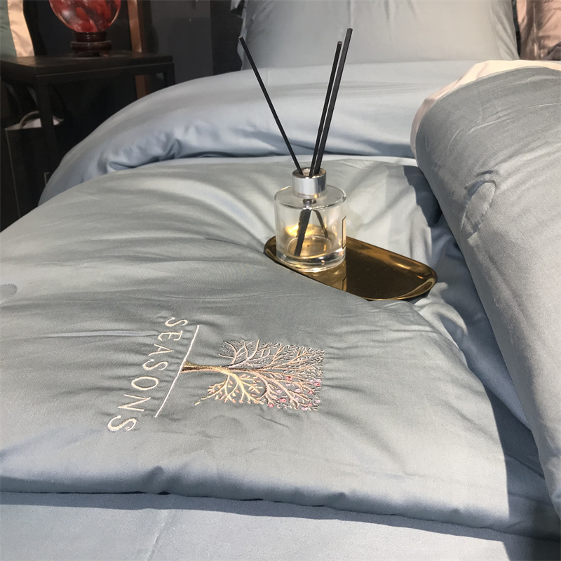 总玖玖爱家纺 纯棉100支贡缎长绒棉刺绣被套三件套四件套加大四件套,白色,高级灰,卡其,蓝灰,绿色,浅桔,深蓝,紫豆沙