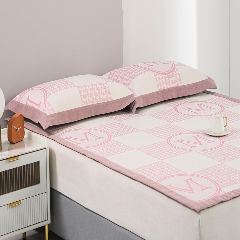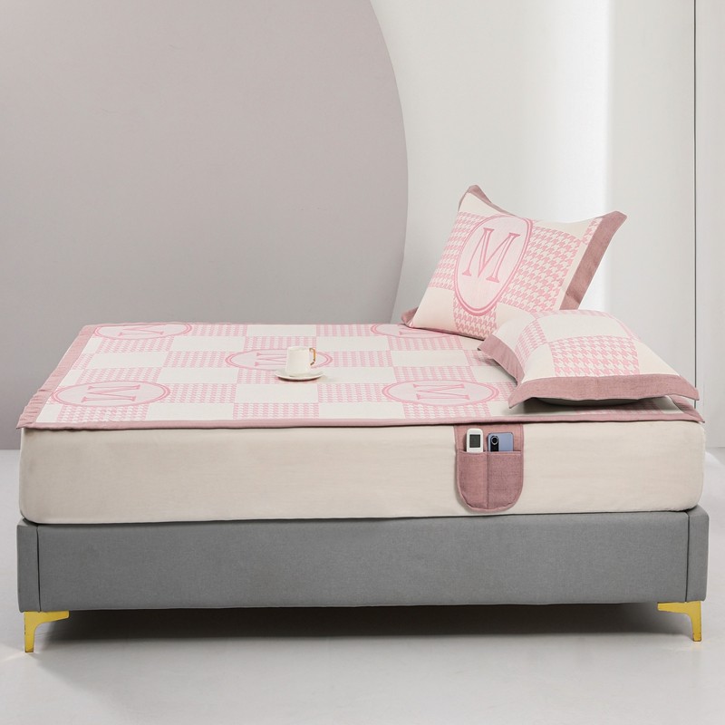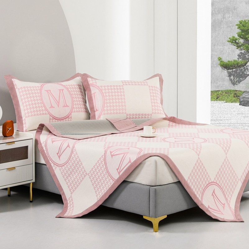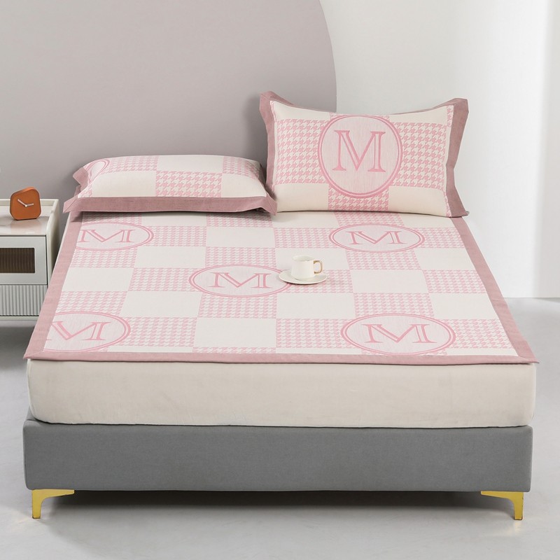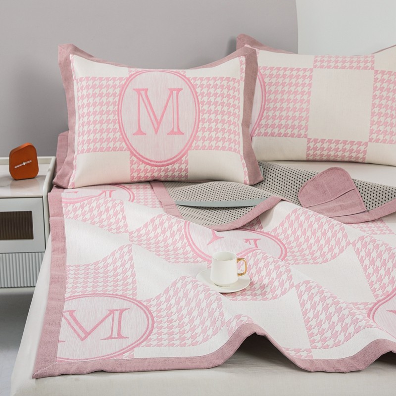 馨蕊 2022新款高端可水洗抗菌冰感席四件套 M千鸟格-粉