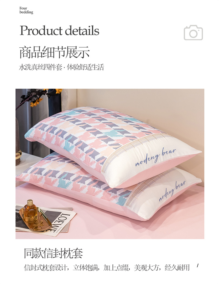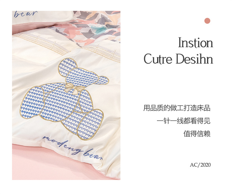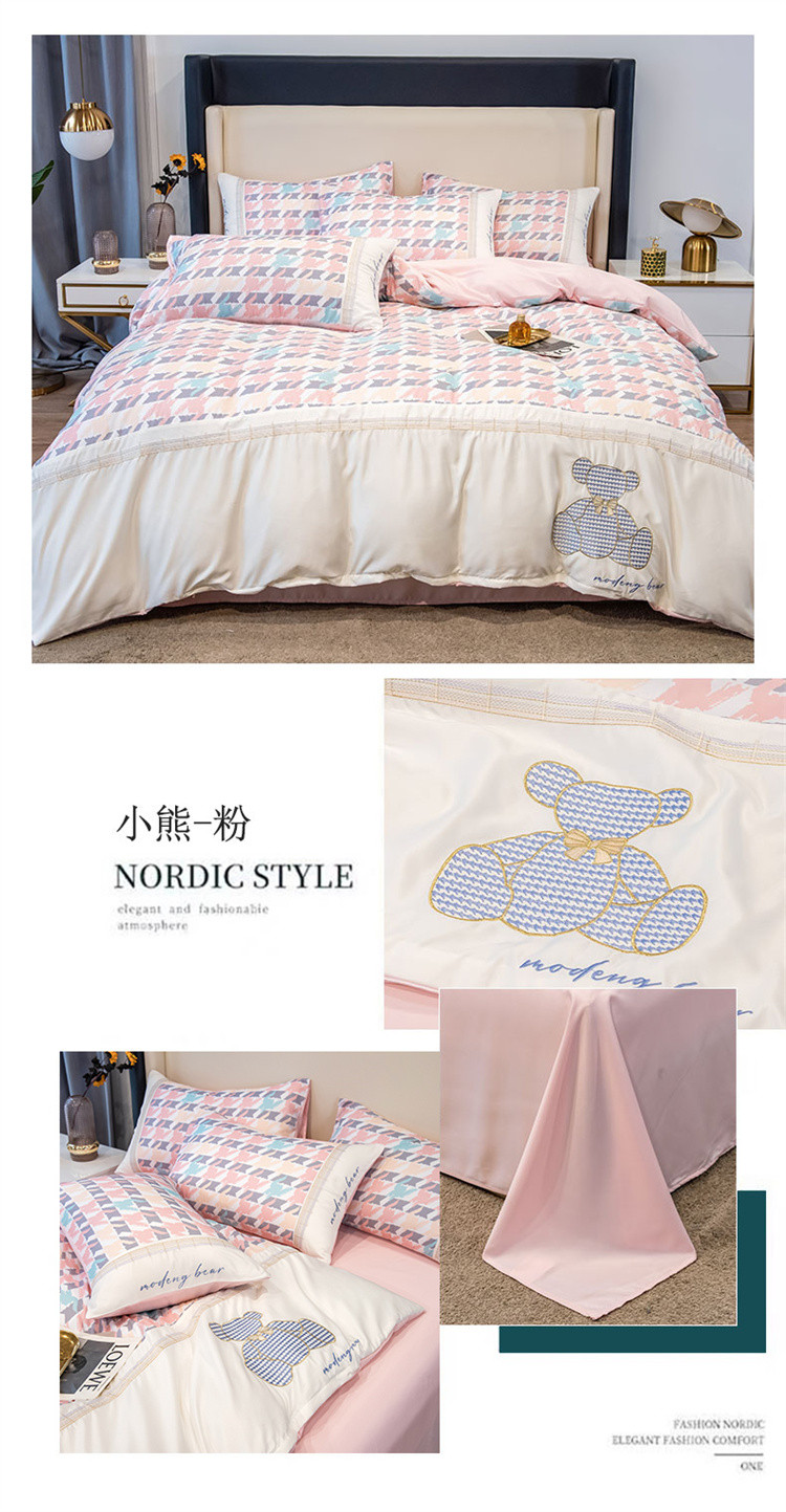 商品名称:芃成家纺 2022新款水洗真丝四件套-刺绣熊 熊出没-粉