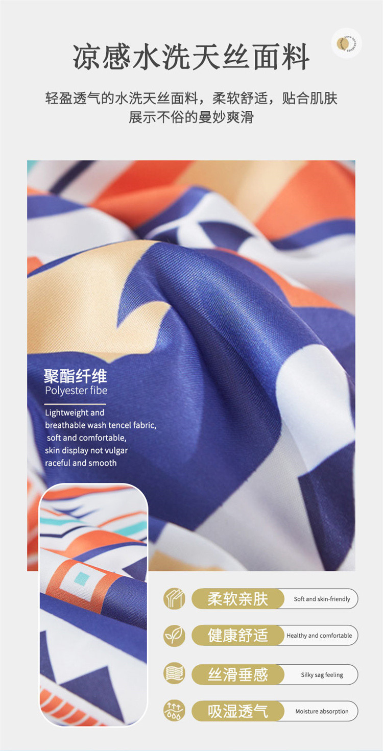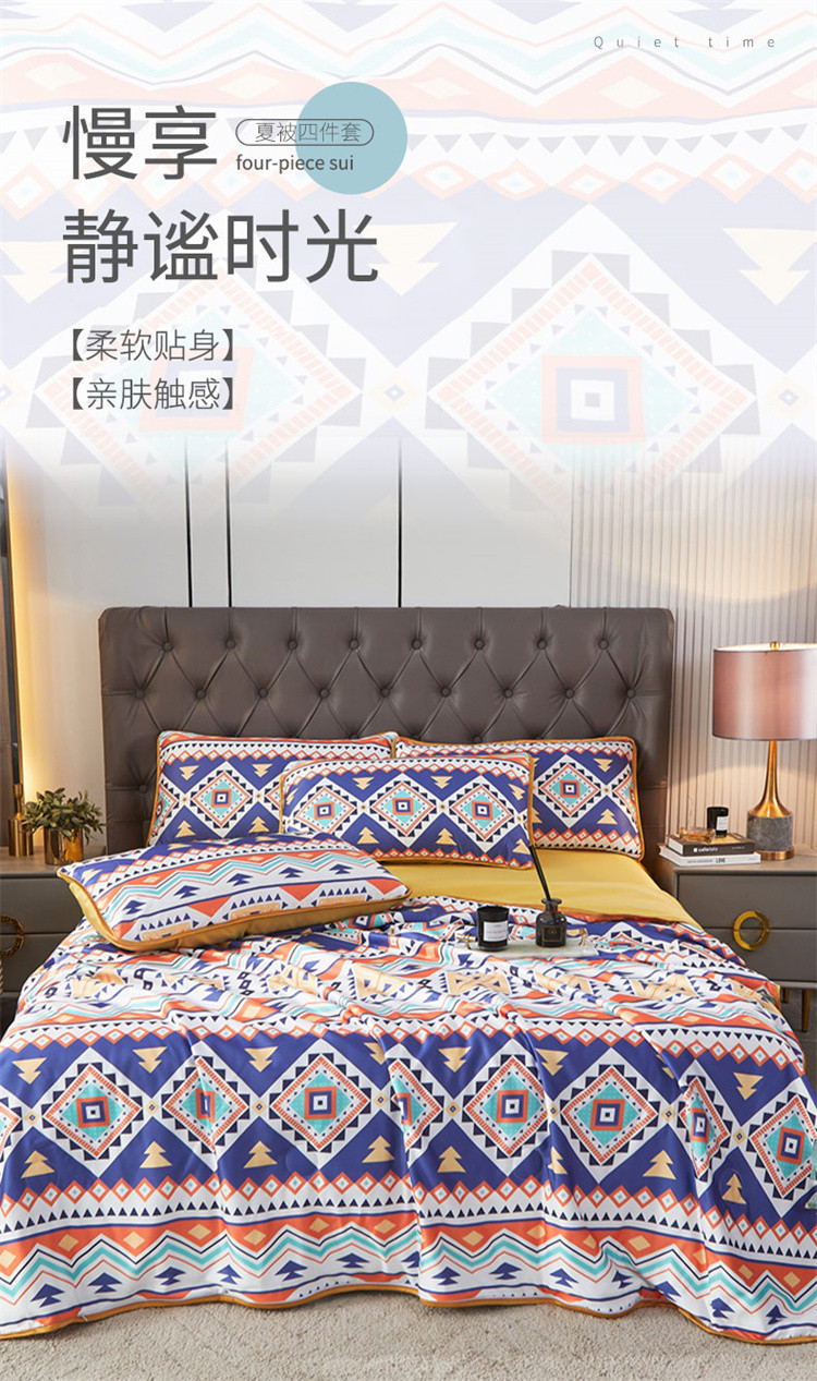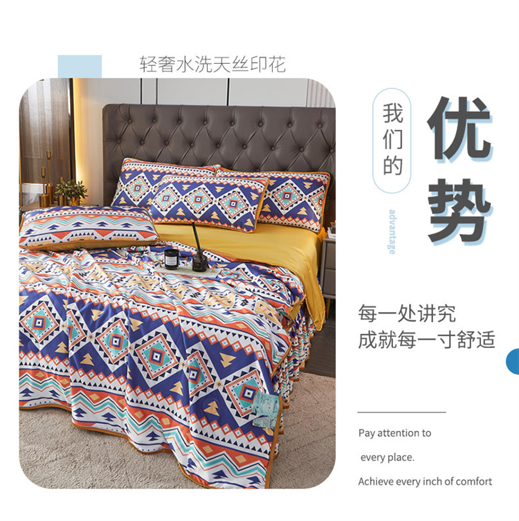 • 91家纺网 家纺一手货源 找家纺 铠畅 2022新款天丝夏被四件套床裙 俏皮几何