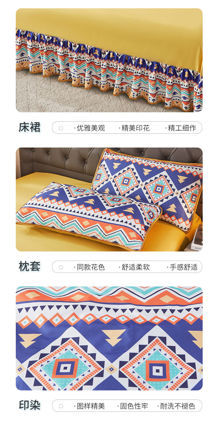 铠畅 2022新款天丝夏被四件套床裙 俏皮几何