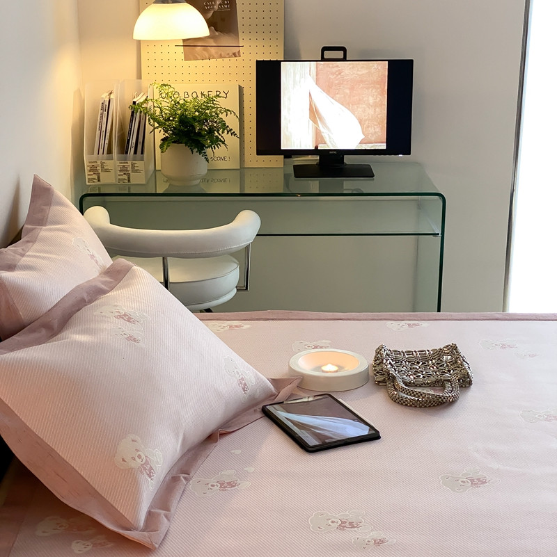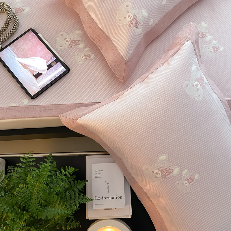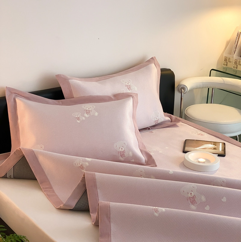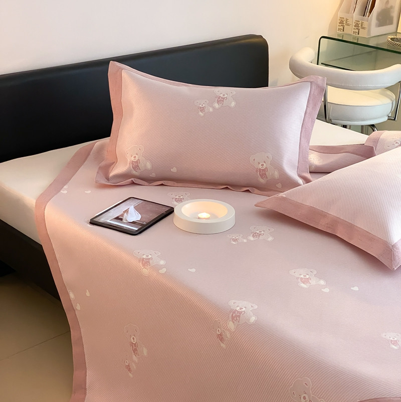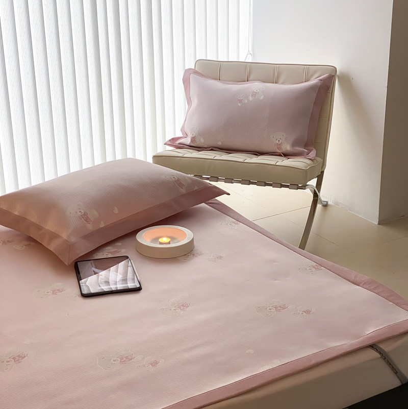 商品名称:本希 2022新款高端床席款水洗冰丝席-简约款 小熊-淡雅粉床席款