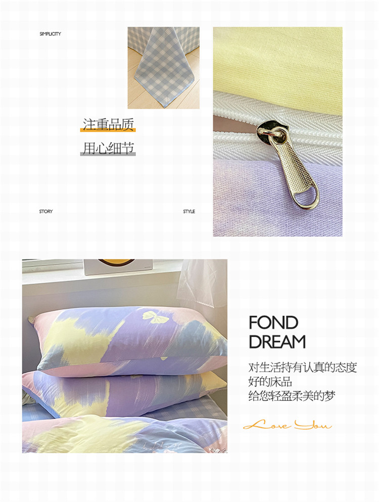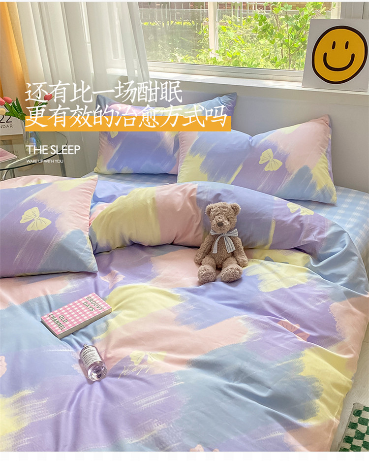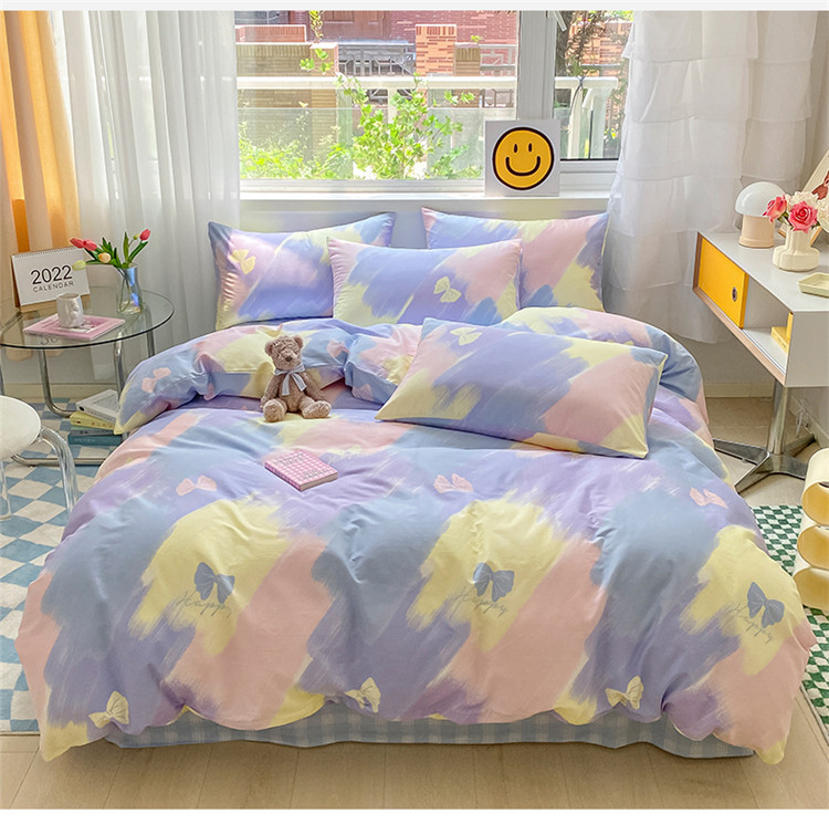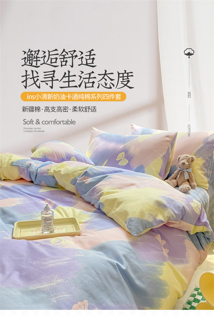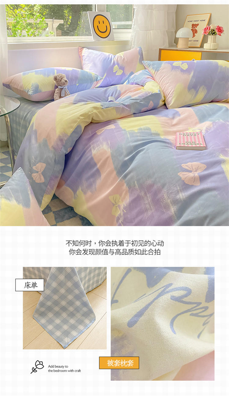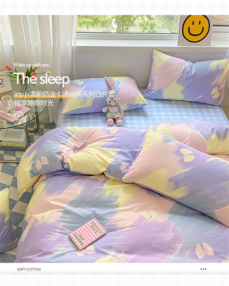 桃子家居 2022新款ins小清新奶油卡通纯棉系列四件套 紫奶油蝴蝶结