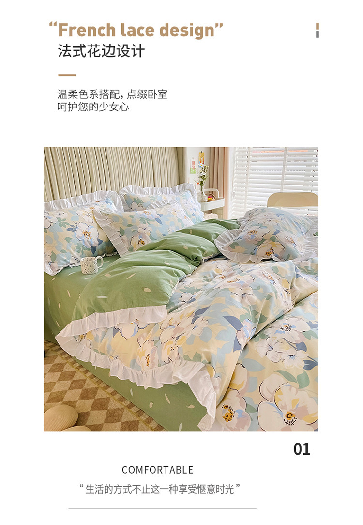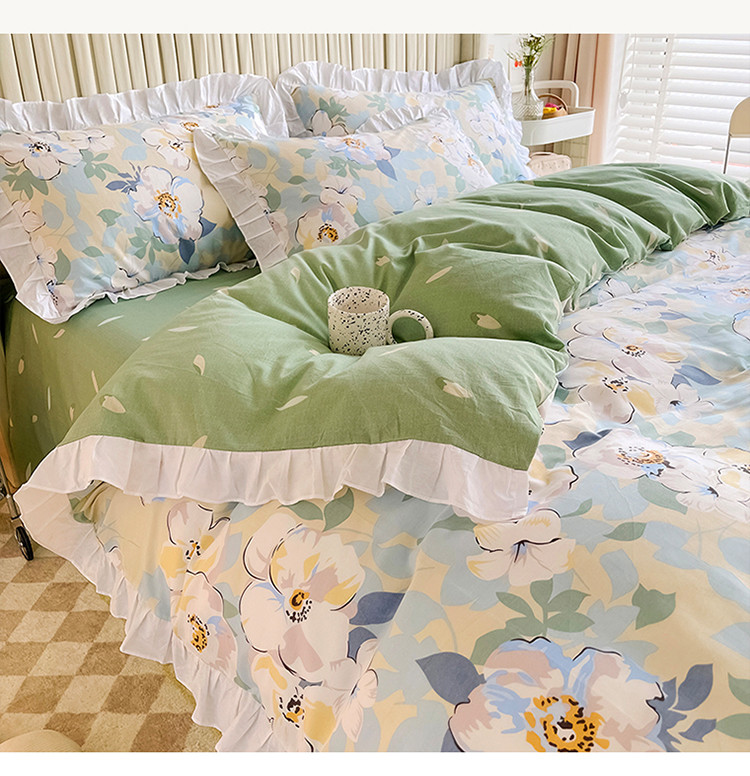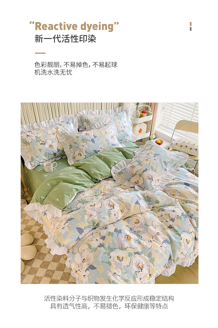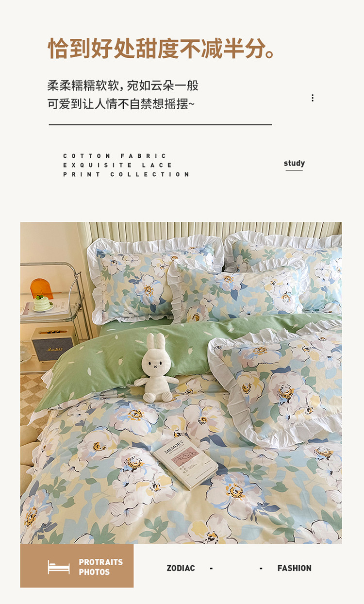 当前位置: 91家纺网 > 商品网购 > 床品套件 > 四件套 > 全棉普通四件套 > 卡普 直播供货全棉韩版荷叶花边四件套三件套学生床笠款茶艺