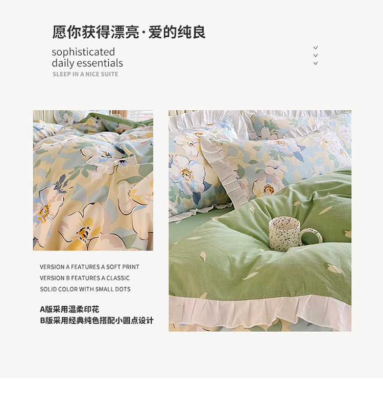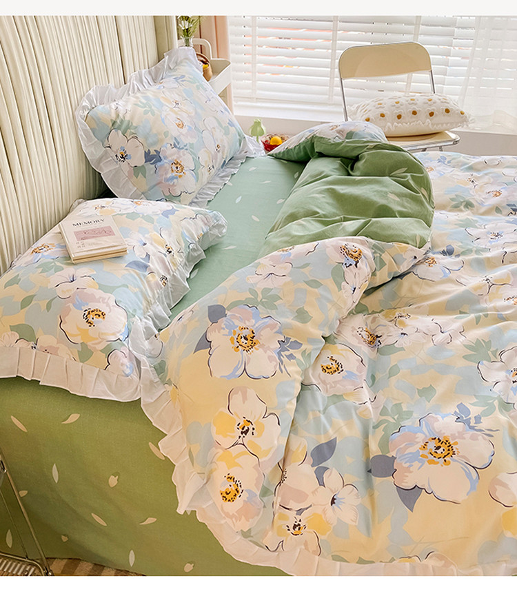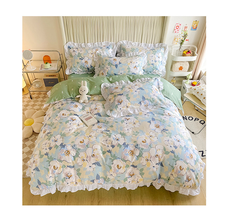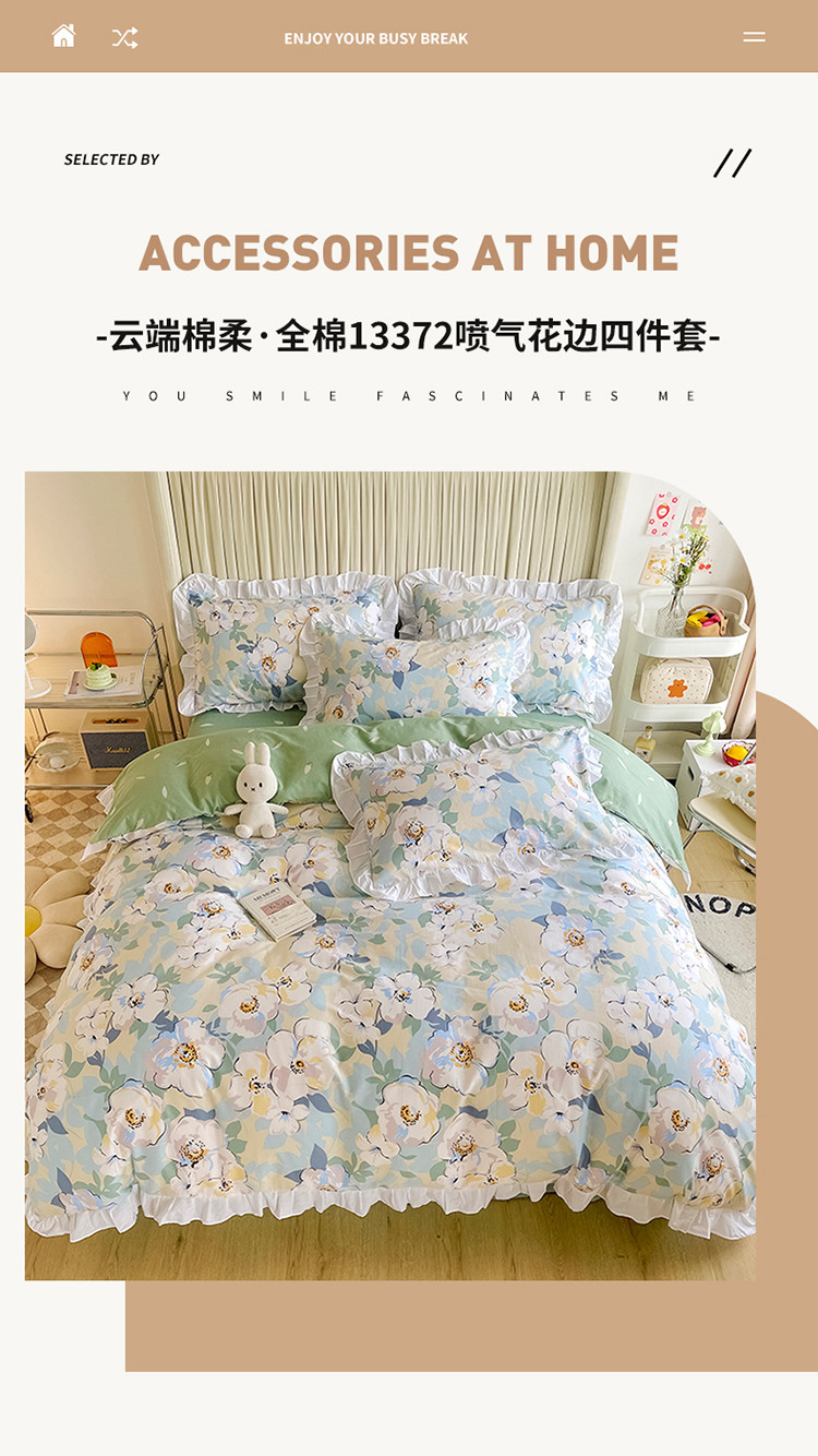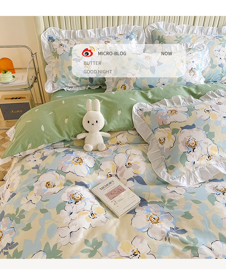 当前位置: 91家纺网 > 商品网购 > 床品套件 > 四件套 > 全棉普通四件套 > 卡普 直播供货全棉韩版荷叶花边四件套三件套学生床笠款茶艺