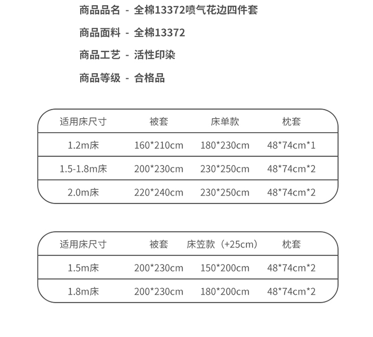 2.0m加大床笠款四件套(2.2x2.4m被套1.8x2.0m床笠) | ¥170.00 |
