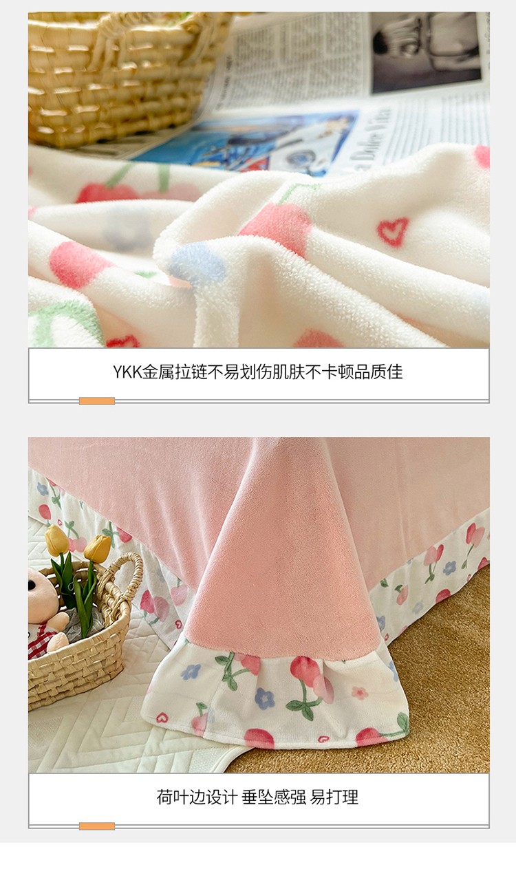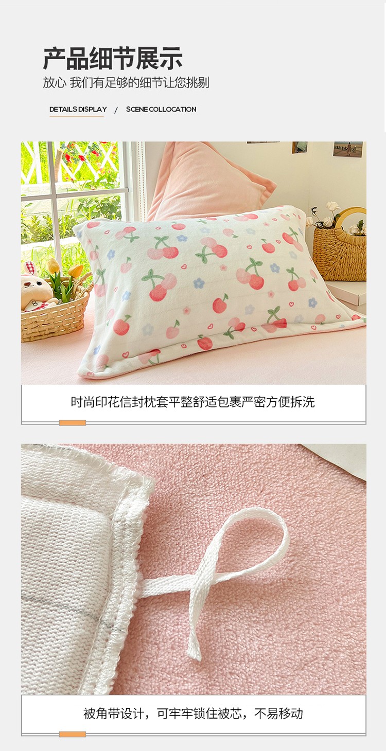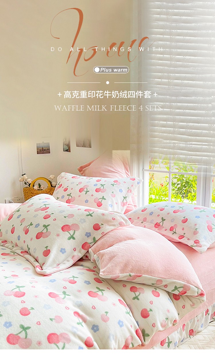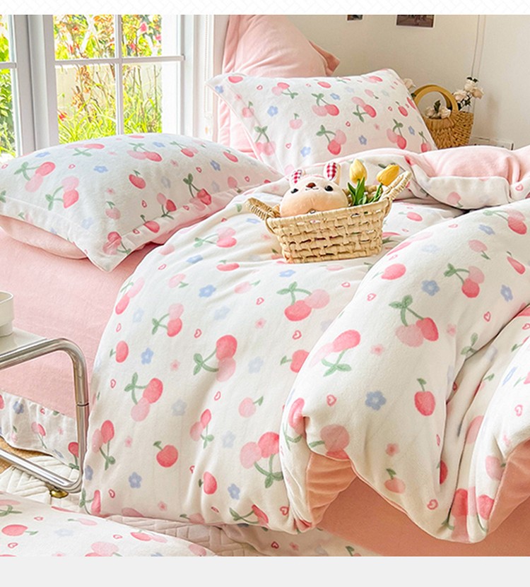 呗旺鹿 2022年印花小清新加厚保暖牛奶绒四件套直播元气桃桃